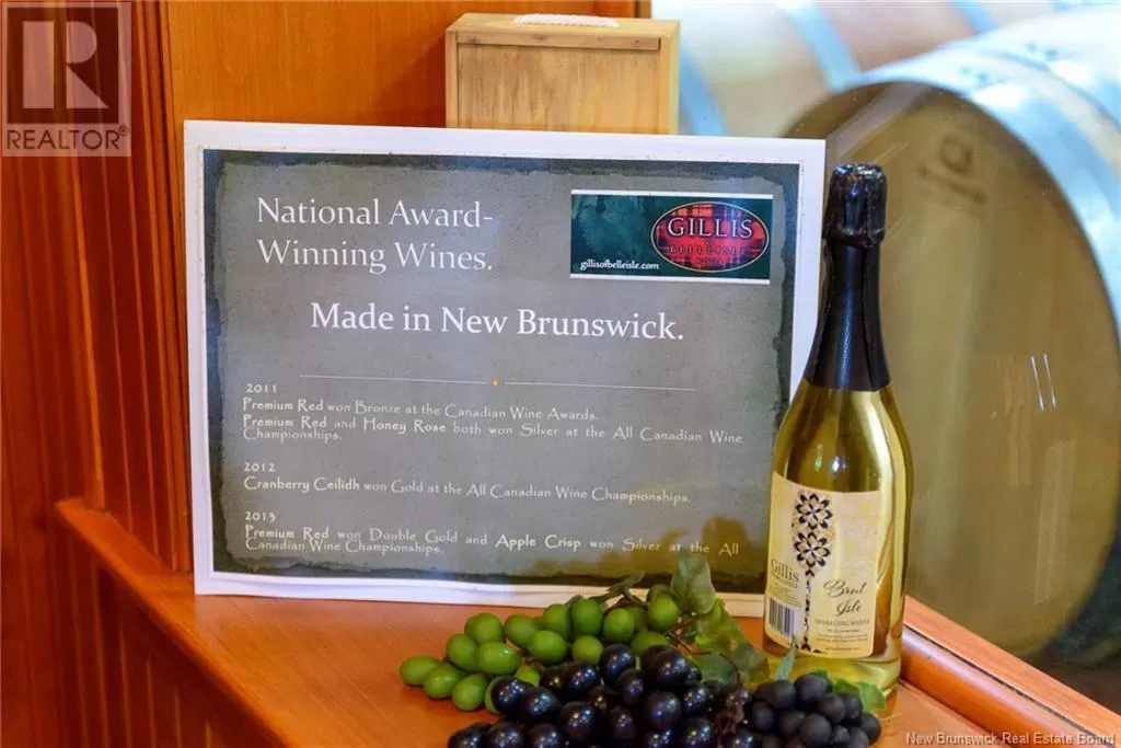 1500 meters from the Fire Station on Route 124, & nearby high school. Have you dreamed of owning a winery? Not just any winery but an established, attractive, extremely well-built enterprise complete w/ the highest quality Italian & Canadian S/S equipment, acres of mature vines, in a beautiful setting w/panoramic view? This is your rare chance! Gillis of Belleisle is an established hobby winery designed and built w/ nothing but the best! Designed by architect Tom Johnson to resemble a 1940's country store. Built to the highest standards by master-builder Reg Potter well-known as the best. This property has so much to offer; everything from a gentleman's hobby to profitable business, event planning to charming restaurant or private residence. Beautifully landscaped in a quiet private setting w/ welcoming hand-laid brick patio & covered veranda. 9.1 acres including pond, 2-acre meadow w/ spectacular view (perfect site for a new home) or winery transformed into a gracious home. Includes Italian (Pesce, Mencoarelli & Enoveneta) & Canadian (Criveller) S/S production equipment, 3300 sq' building plus 750 sq' storage loft, 600 amp 3-phase power, 10,000+ bottles of wine, 2400 empty bottles, labels, 8,000 litres of non-bottled wine, dry barn (for storage or horses) & license for 120,000 bottles per year max. Centrally located, walking distance to schools K1 -12, 1.8 km to swimming, boating, firehall, community center, across from Silver Maple Forest Walking Trails. Property is exempt from the Non-Canadians Act. USA & worldwide offers welcome. (id:27476)