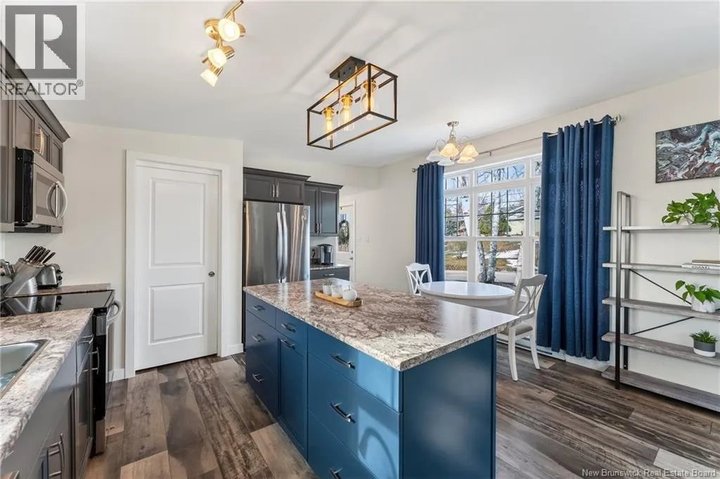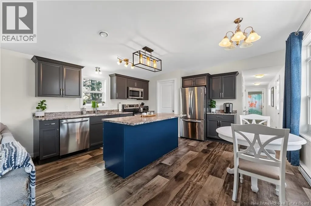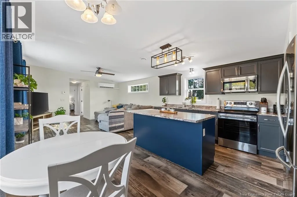 Take Campbell Hill Road or Portage Street to South Street Welcome to a bright and modern home in the heart of St George, offering clean design, quality finishes, and comfortable one level living. The main living space features a vaulted ceiling and an open concept layout that blends the kitchen, dining, and living areas into an inviting and functional setting. The kitchen is a standout with soft close drawers and cupboards, an oversized island, laminate countertops, stainless steel appliances, a walk in pantry, and a hidden garbage system that keeps everything tidy and efficient. Wide six inch plank laminate flooring adds warmth throughout the home. Comfort is provided by a heat pump along with electric baseboard heating, while the HRV system supports excellent air quality year round. The bedrooms offer peaceful spaces and the full bath is designed for everyday convenience. Outside, the yard provides manageable green space for gardening, relaxing, or play. Located close to town services, Lake Utopia, and all the amenities of Charlotte County, this property is ideal for buyers seeking a modern and affordable home in a friendly neighbourhood. Better call to book your private viewing today! (id:27476)