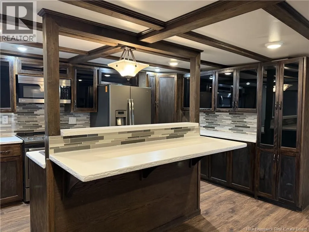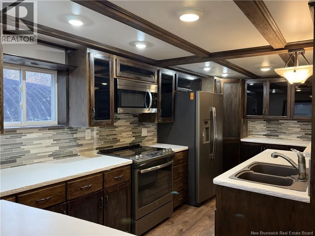 From King Street, proceed on Queen Street West. Turn right onto Elm Street. Home is on the left #56. This lovely 4 bedroom home is waiting for you! The .5 acre property is centrally located on a dead end street near the 60 acre Elm Street Nature Park. This large lot offers additional privacy with an enclosed deck, grand gazebo & above ground pool...ideal for entertaining or spending summers with your family outdoors! The property also has a large paved yard & Quanset Hut (33x24) with a 505 sq. ft. addition...perfect for a garage, workshop, storage or a home based business. Enter the sunporch, where the warmth from a pellet stove provides a warm welcome to the impressively renovated, eat-in kitchen! This is a room where you will relax & gather, while preparing delicious meals for family & friends! Two bars for seating, stainless steel appliances & gorgeous cabinets & countertops make this one of the most unique rooms of the home. Beautiful full bathroom offers custom built walk in shower, soaker jet tub & heated flooring. Washer & dryer are conveniently located in this room. Primary bedroom boasts a gigantic wall-to-wall closet, as well as nearby patio door access to the deck & pool. Two front rooms of the home offer decoratively painted floors, front entry, heat pump and built in desk under the stairs. Staircase with painted treads leads to three bedrooms and a full bathroom, with custom tub/shower. Propane stove in family room provides additional living space in the partially finished basement. Don't miss this opportunity to find your own piece of heaven on Elm Street! (id:27476)
