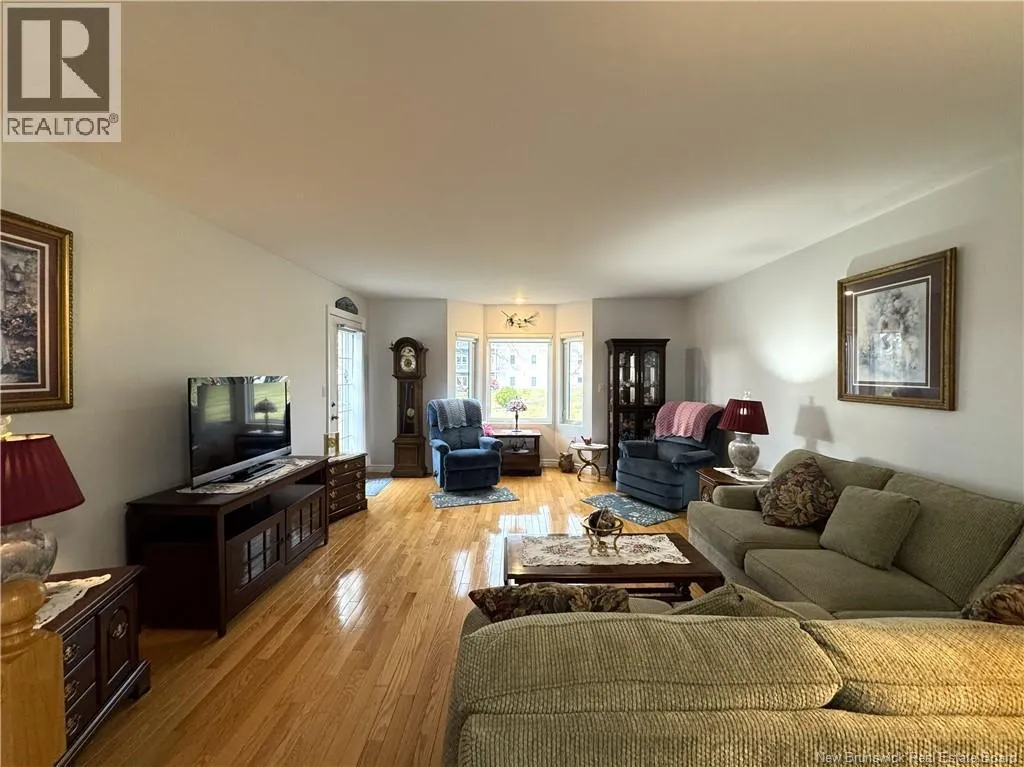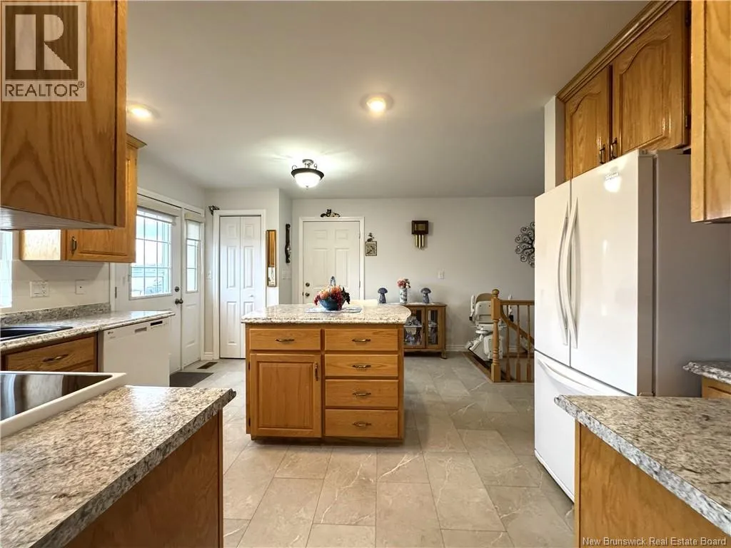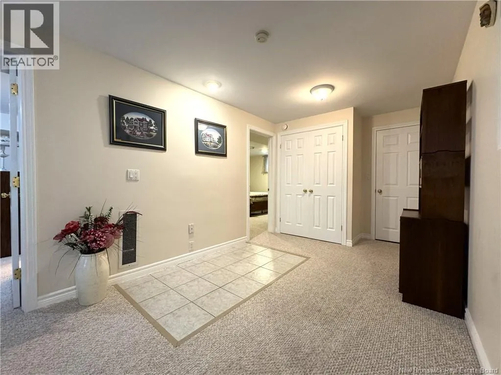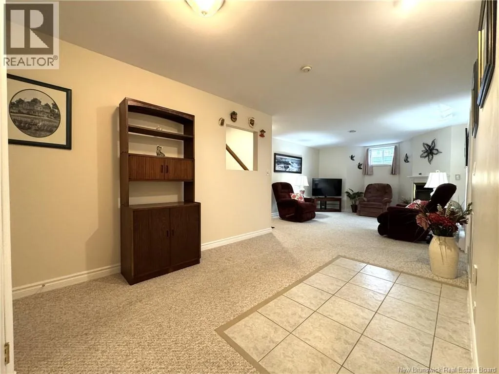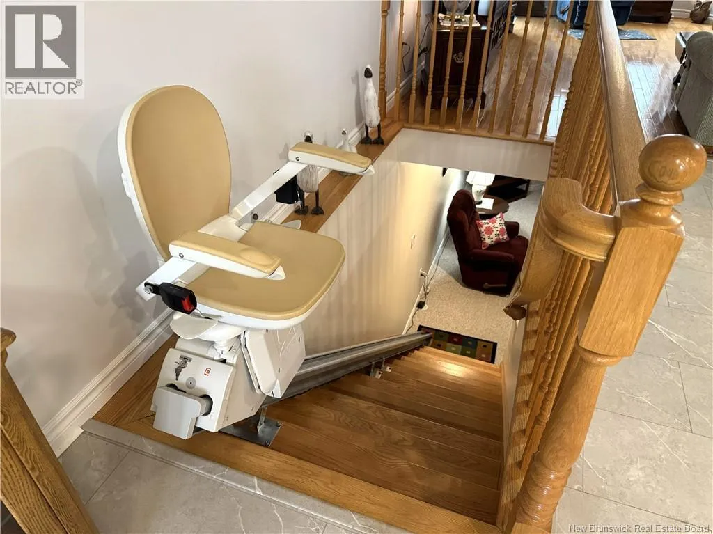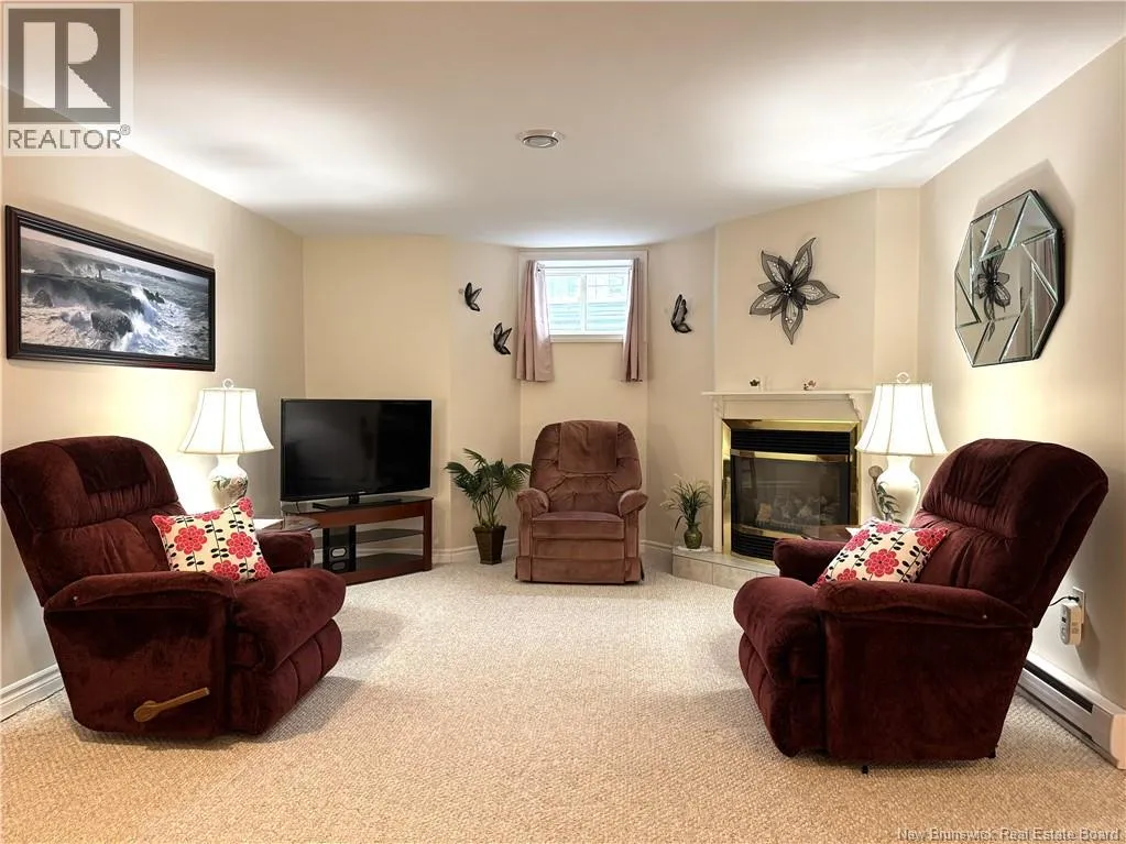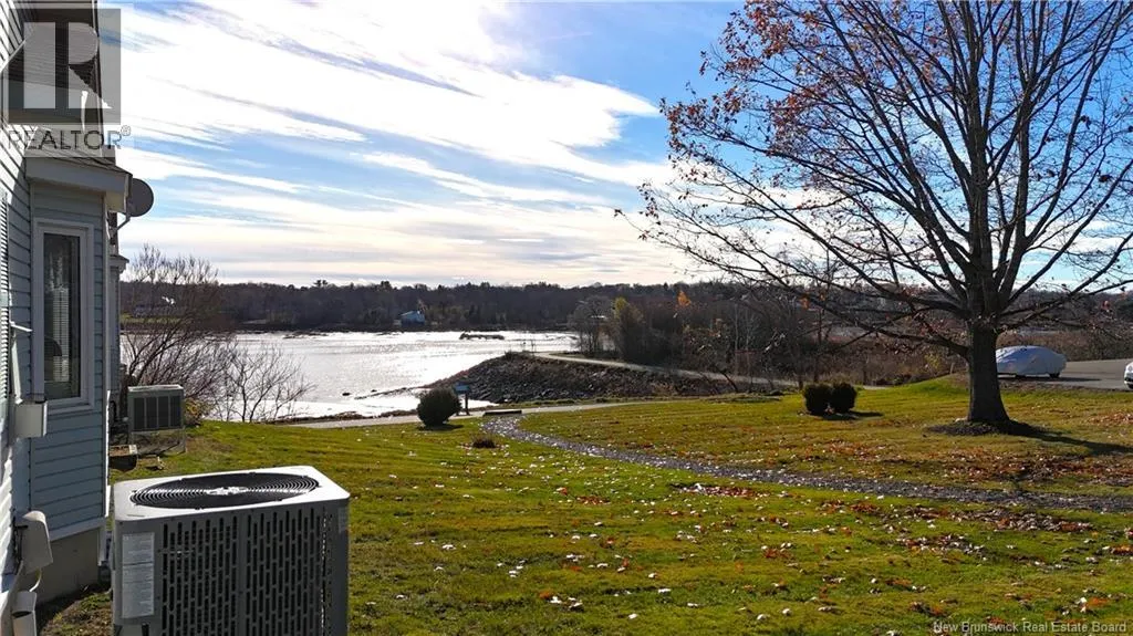 From King Street take Prince William Street, units on the right, look for sign. Welcome to 61 Prince William Street, Unit F, a meticulously maintained condominium located along the scenic banks of the St. Croix River, in a quiet, well managed 50+ community. This home has been lovingly cared for by the same family for approximately 15 years and shows as new. On the main level, accessed through the attached garage or the front door, is the spacious kitchen with built in appliances and island, dining room, living room with access to back yard, bedroom and full bath. Downstairs is the rec room with propane fireplace, 2 bedrooms (windows do not meet egress), one with an ensuite, massive storage room and utility room. A mechanical chair lift is in place to assist those in need travelling up or down the stairs. The home is equipped with a modern heat pump system that provides both heating and cooling, ensuring a comfortable indoor climate throughout the year. Residents benefit from a wide range of services providing a peace of mind which are included in the annual $4,000 condo fee. Half of the fees go towards the Contingency Fund covering exterior maintenance/insurance, lawn mowing, snow removal & gutter cleaning while the remaining half goes to the Reserve Fund for roof, siding, pavement, and other major projects. The location is excellent, with water views from the rear patio and front deck and being near the walking trail, rec center and downtown. This property needs nothing and shows extremely well. Call today to schedule a private viewing. (id:27476)
