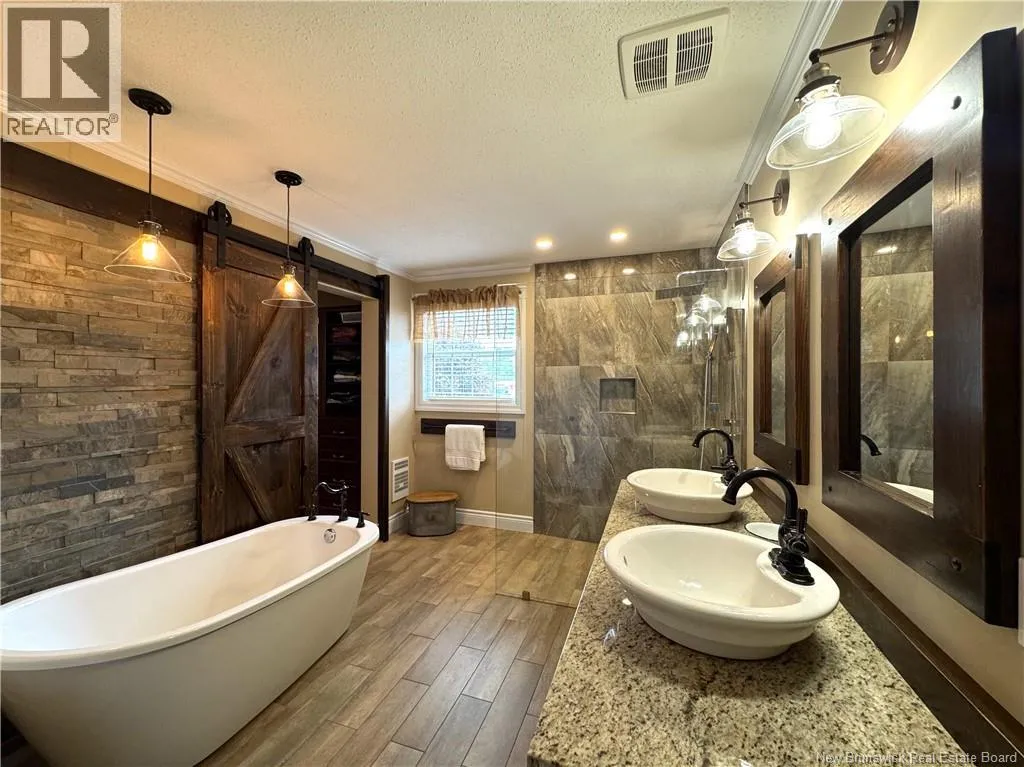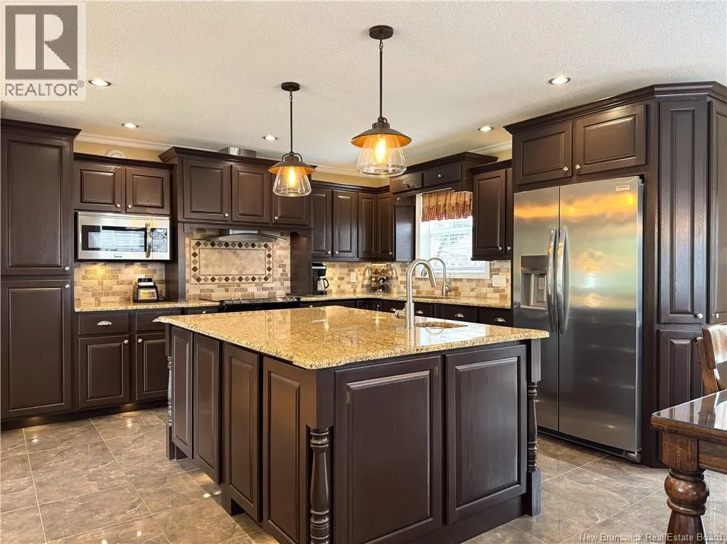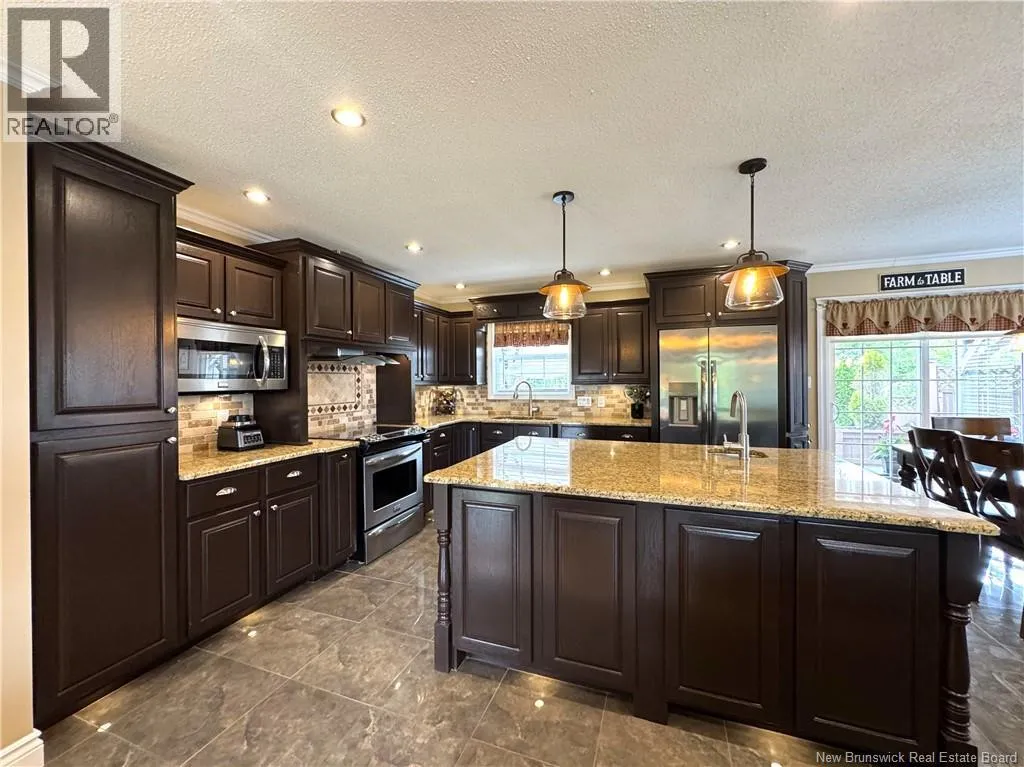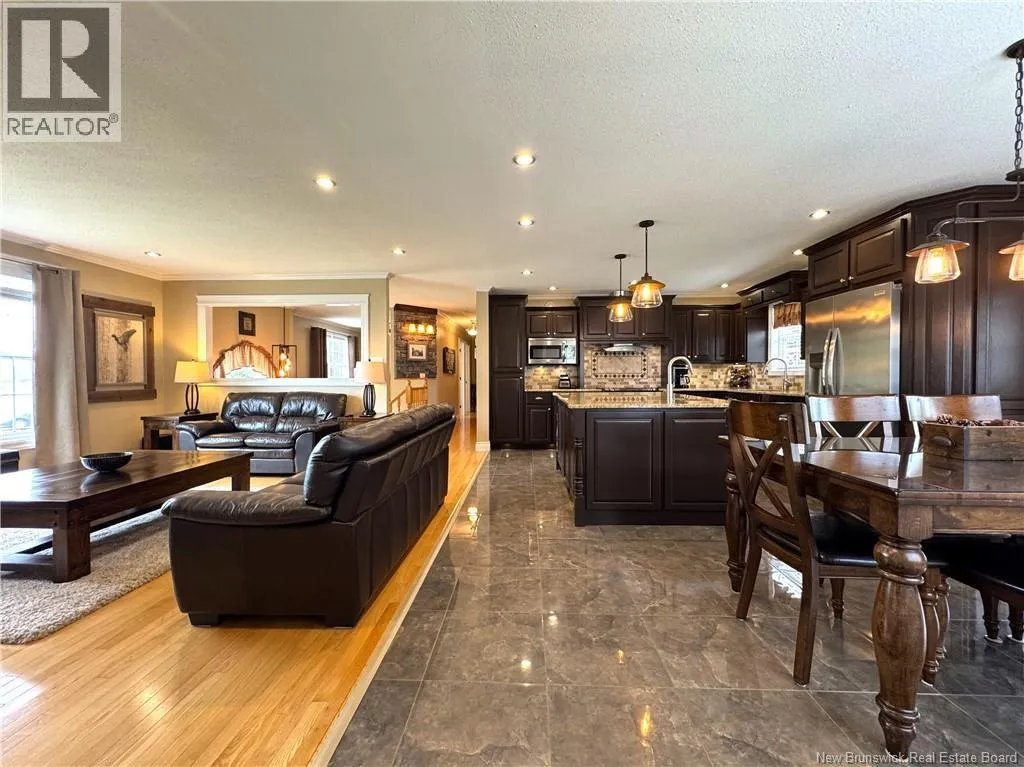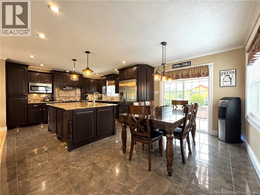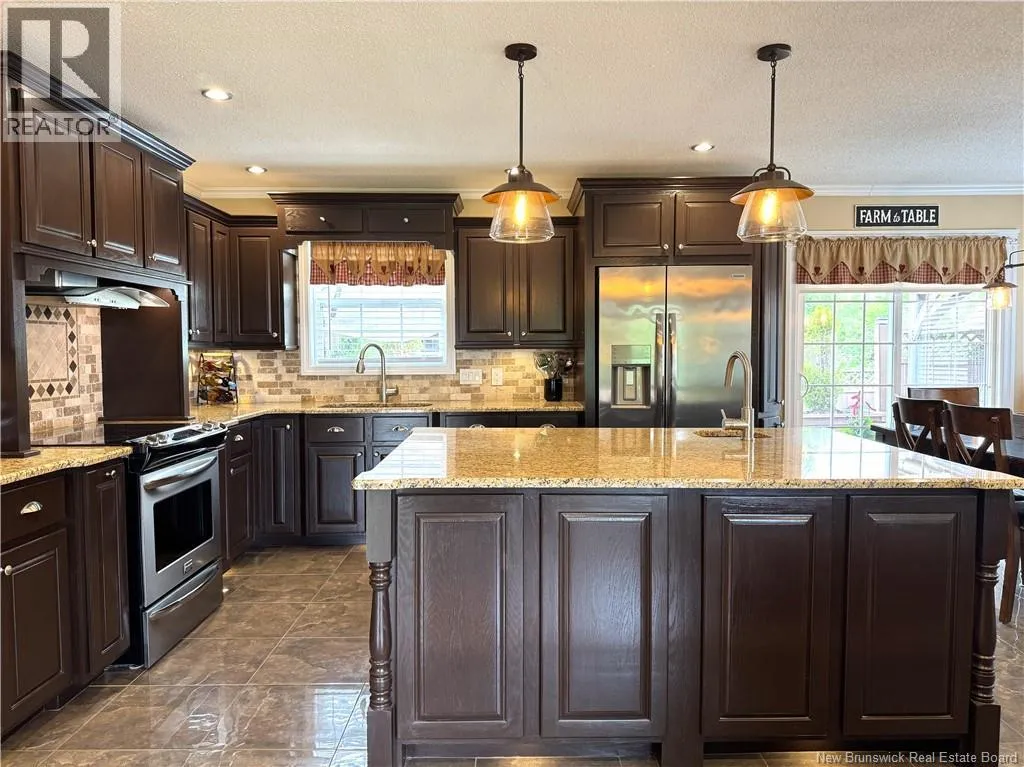 Take Route 3 towards Fredericton. Property is on left side past McDonalds. This pristine, one owner home, in St. Stephen has been fully updated offering modern comforts while showing exceptional care throughout. Built in 1998, this home has been thoughtfully refreshed, including the roof being replaced seven years ago. A welcoming mudroom with heated flooring anchors the rear entrance. The open concept kitchen and dining area features heated tile floors, while a large granite topped island and granite countertops compliment the kitchen. Patio doors from the dining area lead to an expansive deckperfect for outdoor living and entertaining. Hardwood floors add warmth across the main level, which also includes the living room, two bedrooms, an office area and a full bath with heated flooring. The primary bedroom offers a private entrance to the bathroom through a generous walk in closet, as well as access to a private deck which currently features a hot tub. The finished basement provides impressive additional living space with two bedrooms (windows do not meet egress), a rec room, family room, laundry room and utility room. Outside, the property is fully landscaped and beautifully maintained, complete with a paved driveway, detached garden shed, and a heated, insulated double garage with a loft workshop. The location is ideal being minutes from the USA border and 25 minutes to St. Andrews. Move in ready and meticulously cared for, this home delivers comfort, style, and exceptional value. Call today for more information or to book your private viewing. (id:27476)