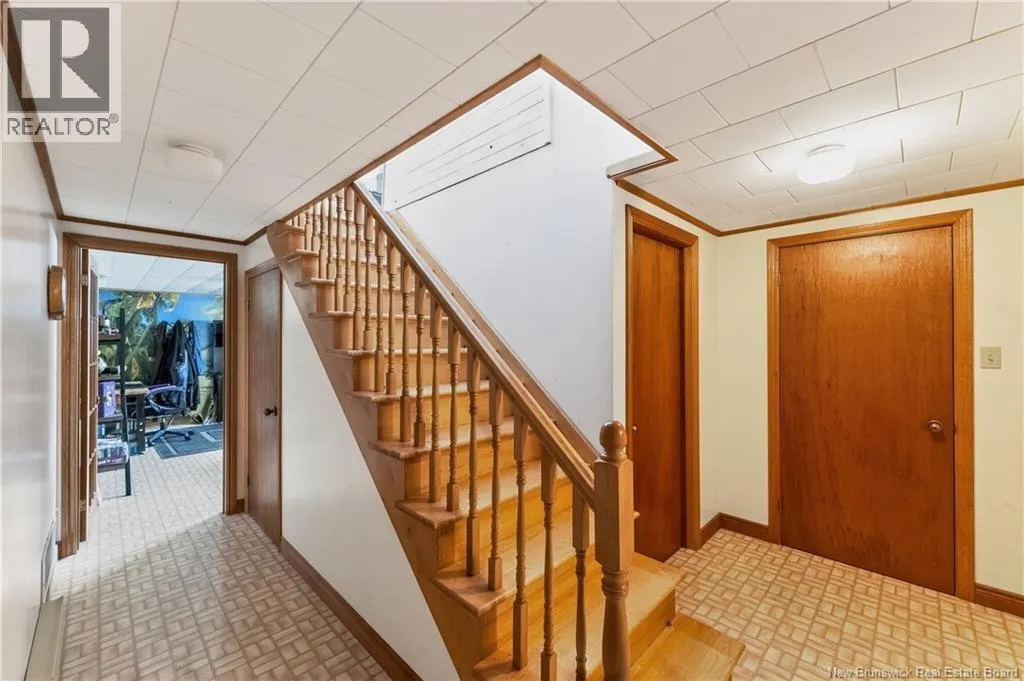 Use google maps. King Street to Queen, then Abbott is on the right side. Built in 1989, this well-maintained bungalow is located on a quiet cul-de-sac in a desirable St. Stephen subdivision. The main level features a welcoming front entry with a large closet, a bright living room, and a kitchen overlooking the sun porch with access to the fully fenced backyard on a spacious double lot. Two bedrooms, a full bathroom, and convenient main-level laundry complete this floor. The lower level offers a bedroom, additional flexible living space suitable for a family room or den, multiple storage closets, and an unfinished utility room with exterior walkout. A ducted heat pump provides efficient heating and cooling. Close to schools, the hospital, shopping. (id:27476)