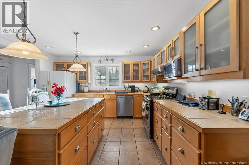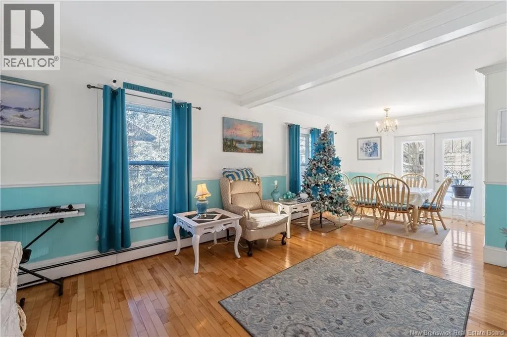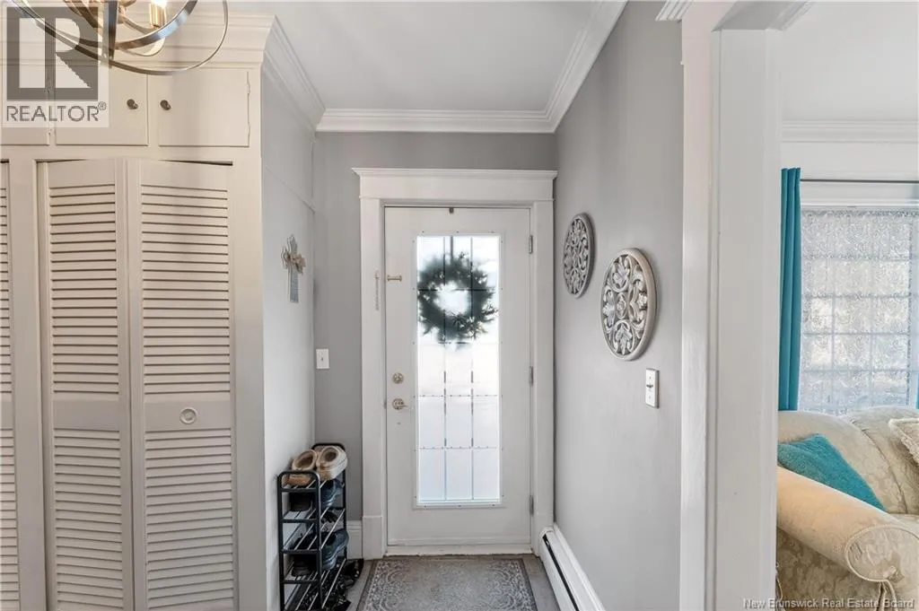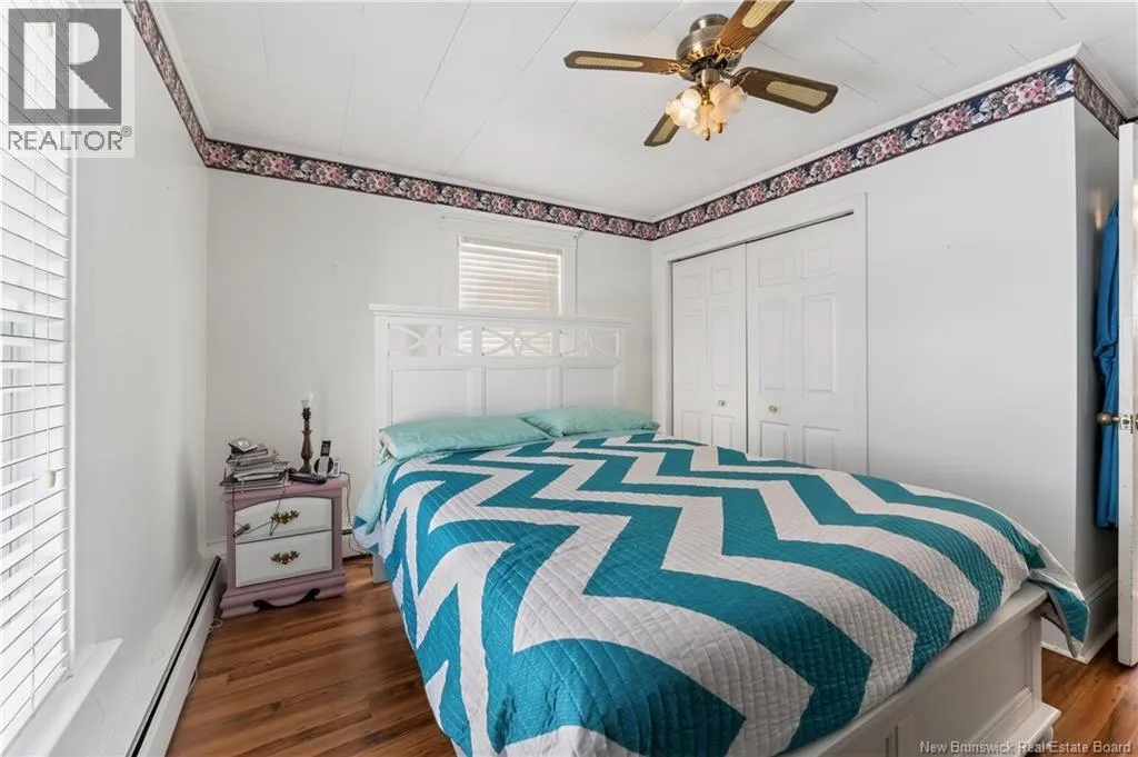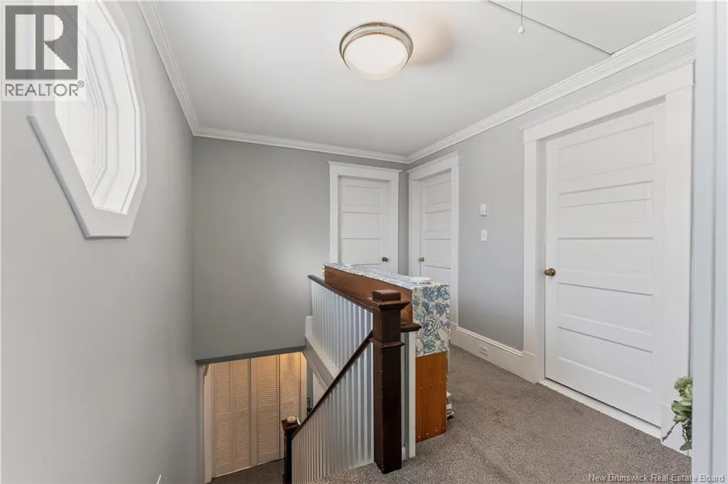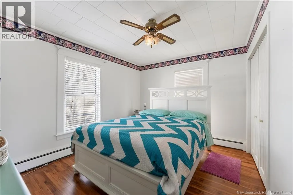 drive down king st, towards st croix river. Turn left at Tim Hortons onto Queen St E. #15 on right-side. Welcome to this well maintained 3 bedroom, 1.5 bathroom home located in the centre of town. Set on a large double lot totaling approximately 0.25 acres, the property features a spacious fully fenced yard perfect for children, pets, or outdoor entertaining. A covered front porch welcomes you in and offers the perfect place to relax and enjoy a front-porch evening with a good book. Inside, the layout is both functional and inviting. To the right of the entry is one of two comfortable family rooms, open to the kitchen and warmed by a cozy wood stove. The spacious kitchen offers an oversized counter, ideal for cooking, gathering, and everyday living. A hallway leads to convenient main floor laundry tucked behind closet doors, a powder room, and a back entrance that functions as a practical mudroom. On the left side of the home, a bright open-concept living and dining area is filled with natural light from large windows. The dining space includes built-in shelving and patio doors that open onto the back deck overlooking the large fenced yard. Upstairs youll find a spacious bathroom with a large L shaped vanity, two good sized bedrooms, and a third bedroom at the front of the home that would make a perfect nursery, home office, or additional storage space. Additional features include natural gas forced-air heating and a convenient location just minutes from the CanadaU.S. border, Garcelon Civic Centre, hospital, shopping, schools, and other local amenities. (id:27476)