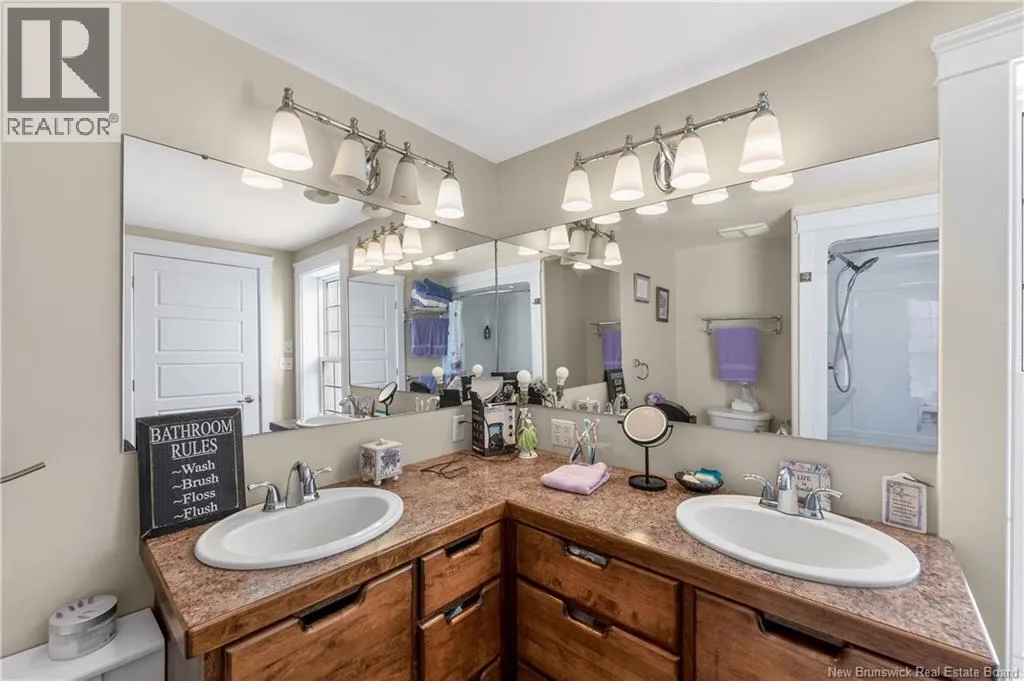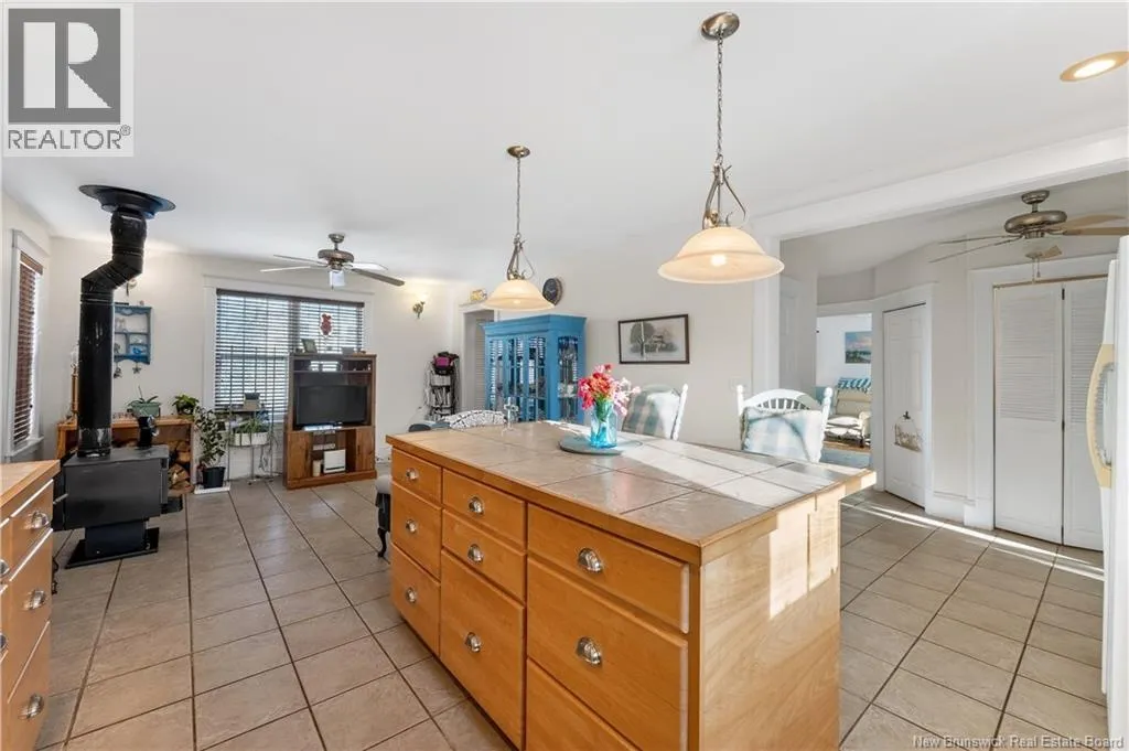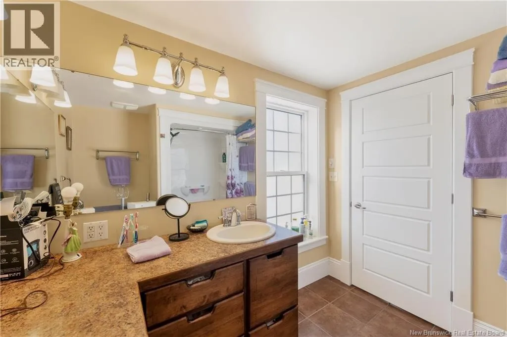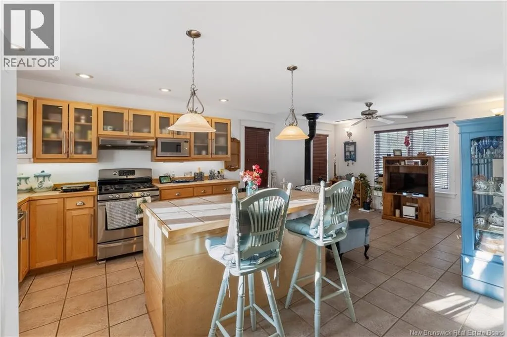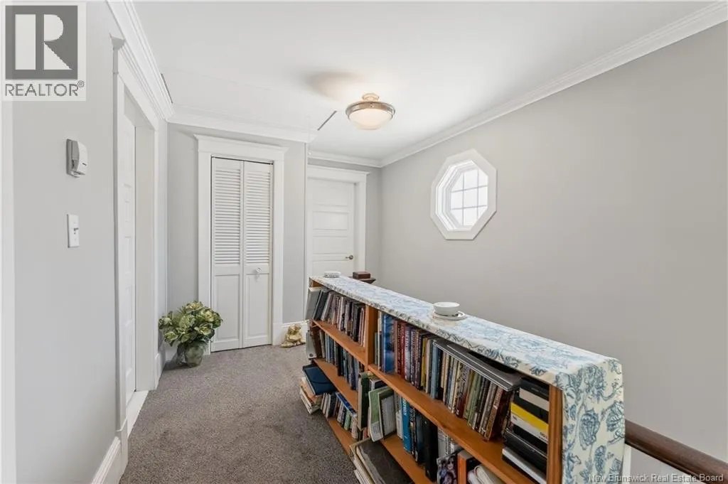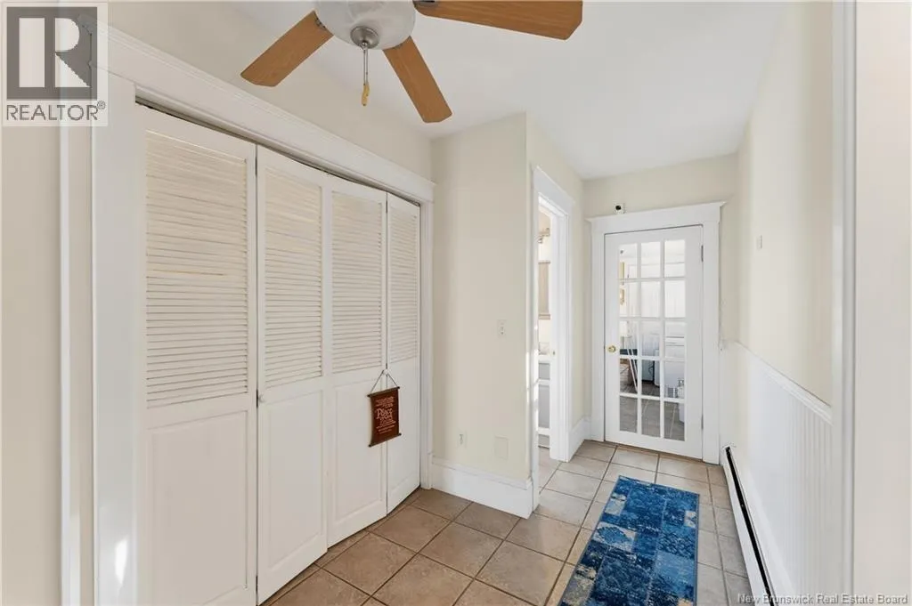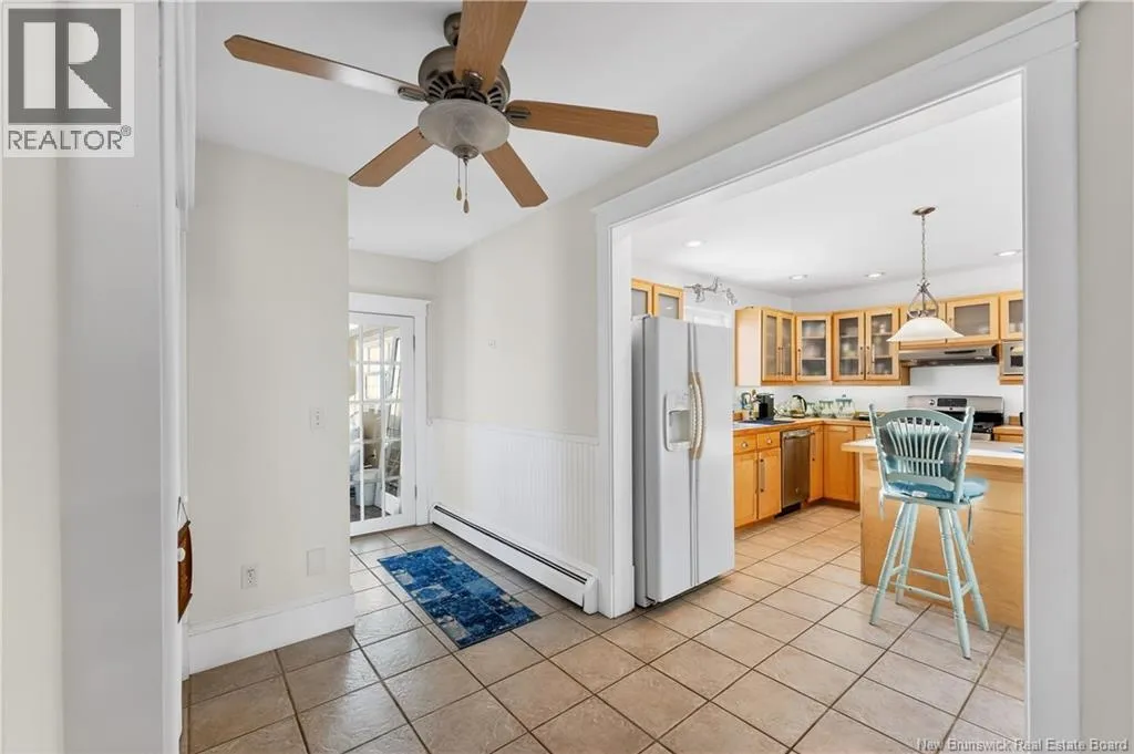drive down king st, towards st croix river. Turn left at Tim Hortons onto Queen St E. #15 on right-side. Welcome to this well maintained 3 bedroom, 1.5 bathroom home located in the centre of town. Set on a large double lot totaling approximately 0.25 acres, the property features a spacious fully fenced yard perfect for children, pets, or outdoor entertaining. A covered front porch welcomes you in and offers the perfect place to relax and enjoy a front-porch evening with a good book. Inside, the layout is both functional and inviting. To the right of the entry is one of two comfortable family rooms, open to the kitchen and warmed by a cozy wood stove. The spacious kitchen offers an oversized counter, ideal for cooking, gathering, and everyday living. A hallway leads to convenient main floor laundry tucked behind closet doors, a powder room, and a back entrance that functions as a practical mudroom. On the left side of the home, a bright open-concept living and dining area is filled with natural light from large windows. The dining space includes built-in shelving and patio doors that open onto the back deck overlooking the large fenced yard. Upstairs youll find a spacious bathroom with a large L shaped vanity, two good sized bedrooms, and a third bedroom at the front of the home that would make a perfect nursery, home office, or additional storage space. Additional features include natural gas forced-air heating and a convenient location just minutes from the CanadaU.S. border, Garcelon Civic Centre, hospital, shopping, schools, and other local amenities. (id:27476)