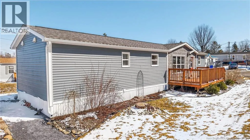 Take Route 127 west, continue onto Route 170 (King Street) into St. Stephen, turn right onto Milltown Boulevard, then turn left onto Wildwood Street and follow it to #2. Union Mills Park. Tucked away on a quiet street in charming St. Stephen, 2 Wildwood Street welcomes you with a bright, airy feel and a one level living layout that just makes sense. Built in 2021, this thoughtfully designed home offers modern comfort paired with an easy, relaxed flow. Step inside and you are greeted by beautiful floors that carry throughout the home, complemented by an abundance of windows that fill the space with natural light. Every corner feels fresh, clean, and inviting, ready for you to settle in and make it your own. The layout is both functional and appealing, with the primary bedroom privately situated and featuring its own ensuite bath, your own quiet retreat at the end of the day. A second bedroom is thoughtfully placed on the opposite end of the home, offering flexibility for guests, family, or a home office setup. With two full bathrooms and a design that balances openness with privacy, this home is ideal for comfortable everyday living or effortless entertaining. Whether you are enjoying a quiet morning with sunlight streaming in or hosting friends in this bright, welcoming space, you will appreciate how naturally this home fits your lifestyle. Clean, modern, and move in ready, 2 Wildwood Street is a place you will be proud to call home. Lot fees: 295$ per month. (id:27476)