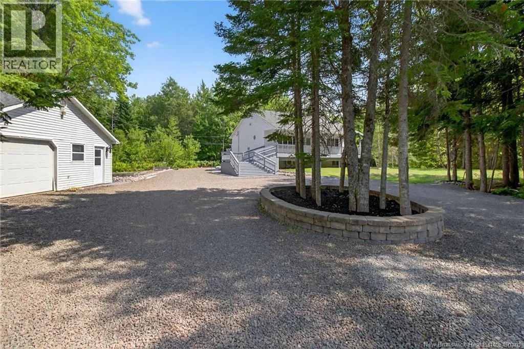 By Salisbury Irving. When Viewing This Property On Realtor.ca Please Click On The Multimedia or Virtual Tour Link For More Property Info. This well-maintained ranch-style home sits on a picturesque 2-acre property just 15 minutes from Moncton, offering rural tranquility with city convenience. With 2,240 sq. ft. of living space, it features a landscaped lot, circular driveway, and 24 x 30 detached garage. The main level offers an open-concept layout, an 8 x 40 covered deck with a striking 16 x 19 stairwell, spacious living room with propane fireplace, and bright kitchen with custom cabinetry. The primary bedroom includes a full ensuite, walk-in closet, and space for a nursery or office. Comfort is ensured with a 32,000 BTU mini-split (2022), electric baseboards, and propane fireplace. The lower level has two bedrooms, a full bath with shower, laundry with rear entrance, large rec room with built-in bookcase, two storage rooms, and matching heating systems including a propane stove with wood-burning charm. Hardwood and ceramic tile floors dominate, with minimal vinyl and no carpet. Exterior highlights include a back deck, tool shed, rock patio with outdoor wood stove, and decorative stonework. Recent upgrades include new roofs on the home and garage (2024). Surrounded by nature, this property blends quality craftsmanship, privacy, and thoughtful design. (id:27476)