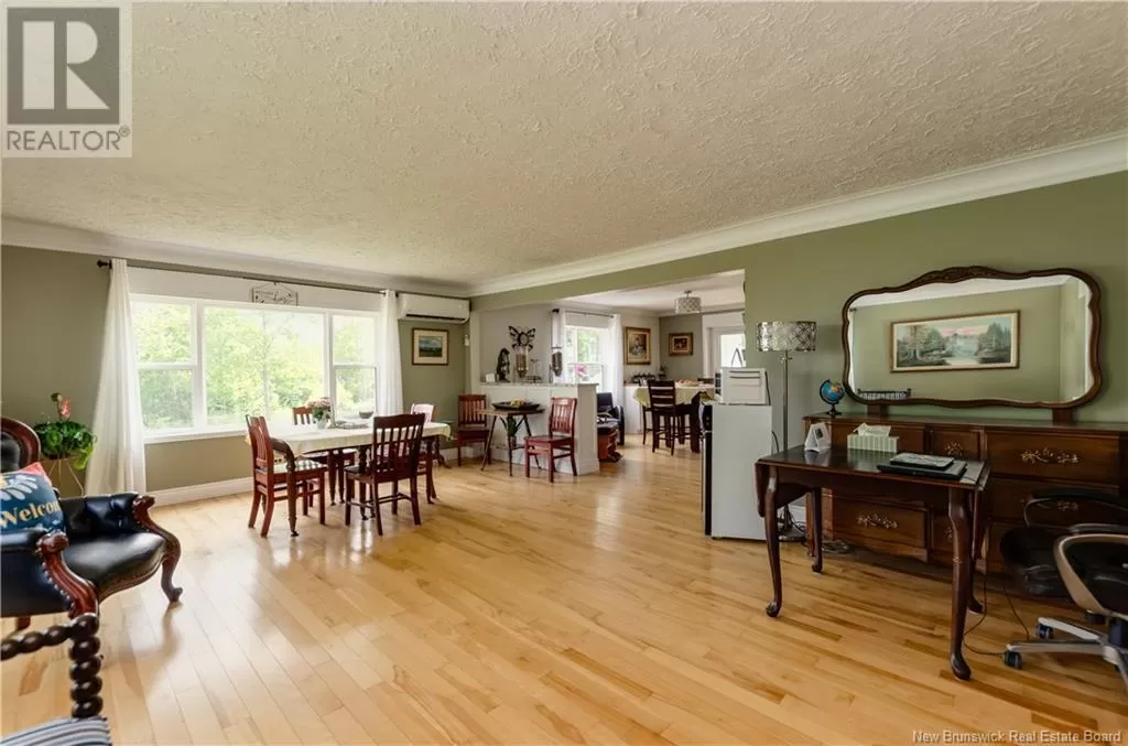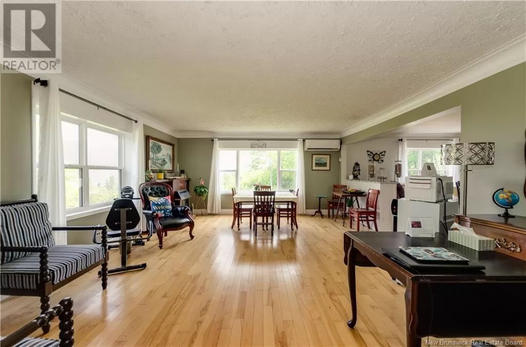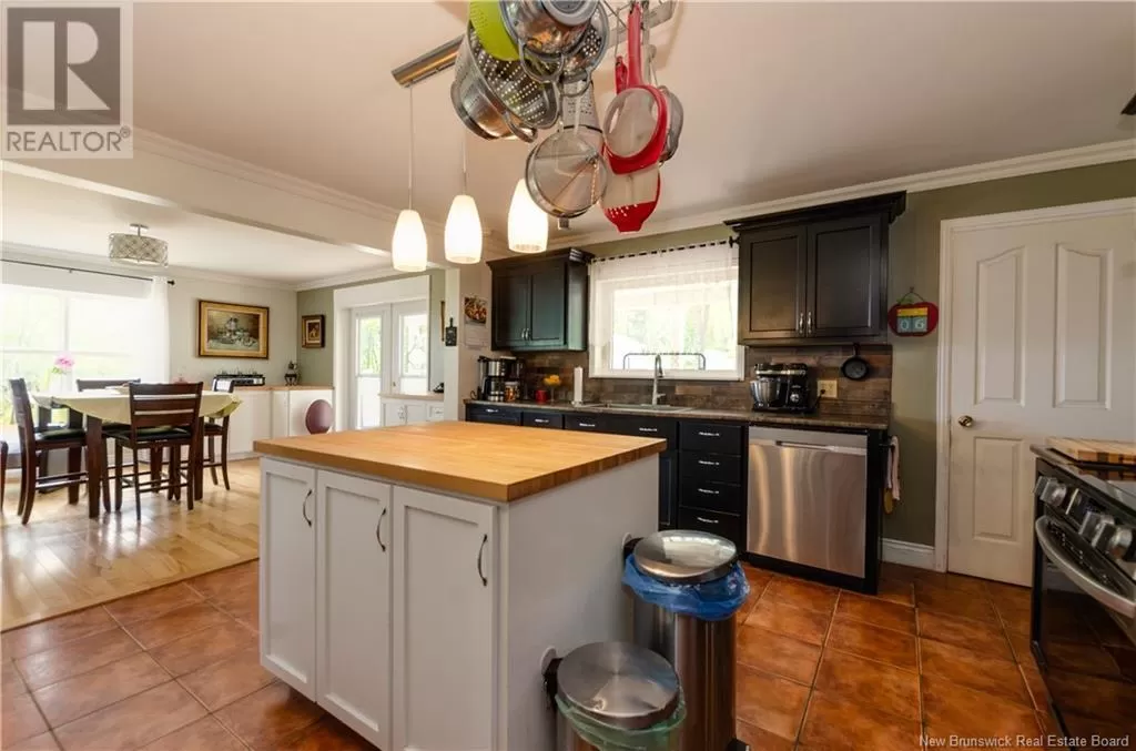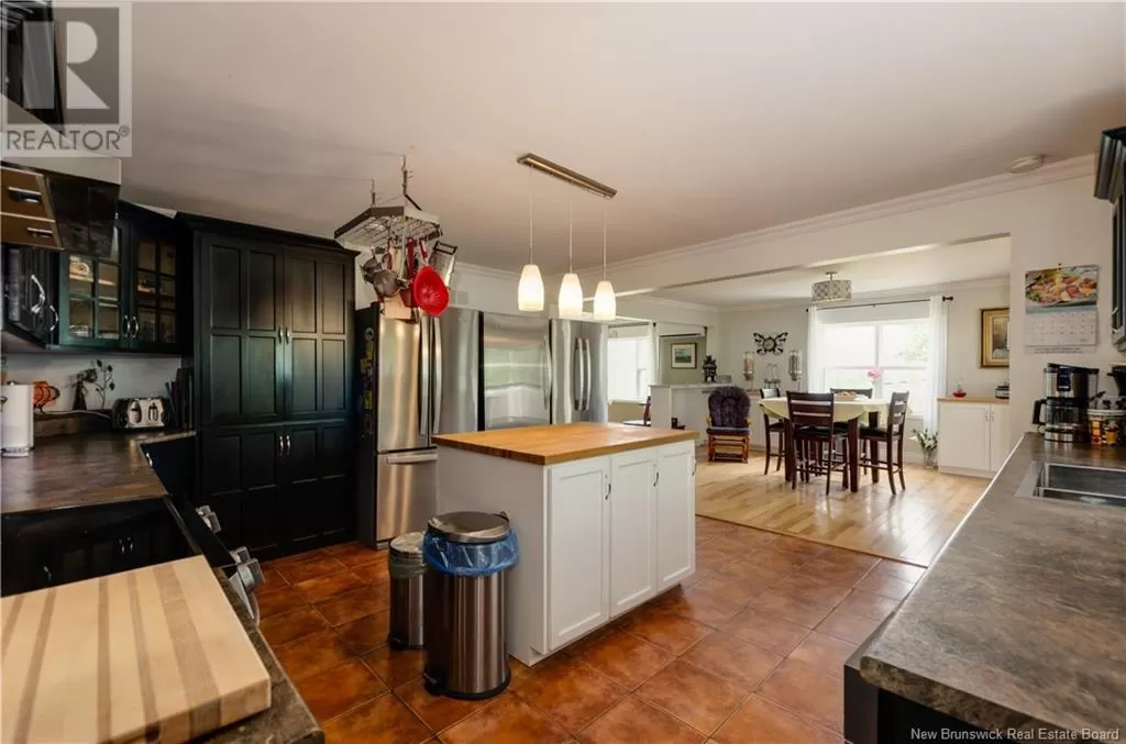 Large rural family home with detached car garage & several outbuildings. Welcome to 1750 RTE 114, this home has plenty to offer, main level living with additional space in the basement. Custom black kitchen cabinets, butcher block island & patio doors off the dining room leading to a 16x16 deck with a view of the river. Home is heated by mini splits and wood furnace, has oversized windows allowing for natural sunlight. Hardwood, laminate and ceramic floors throughout the home. Featuring 2 bedrooms both with their own mini splits, 4 bathrooms, dining room, kitchen, living room, family room, and laundry area. This home has tons of sq footage & is wired for generator back up, 200AMP panel and 2 hot water tanks. Outside there is 3 baby barns( generator shed, 10x16 storage shed, garden shed) a greenhouse, 2 guest houses( 16x24, 12x16) a dog kennel and 42x40 garage with 10ft ceilings. The garage is well insulated and wired with a workshop space. This would make a great family home, rental or air BnB. Located in Stoney Creek, only 12 minutes to Riverview or 10 to Hillsborough, rural living minutes away from amenities. Contact your REALTOR® today to book a showing. (id:27476)