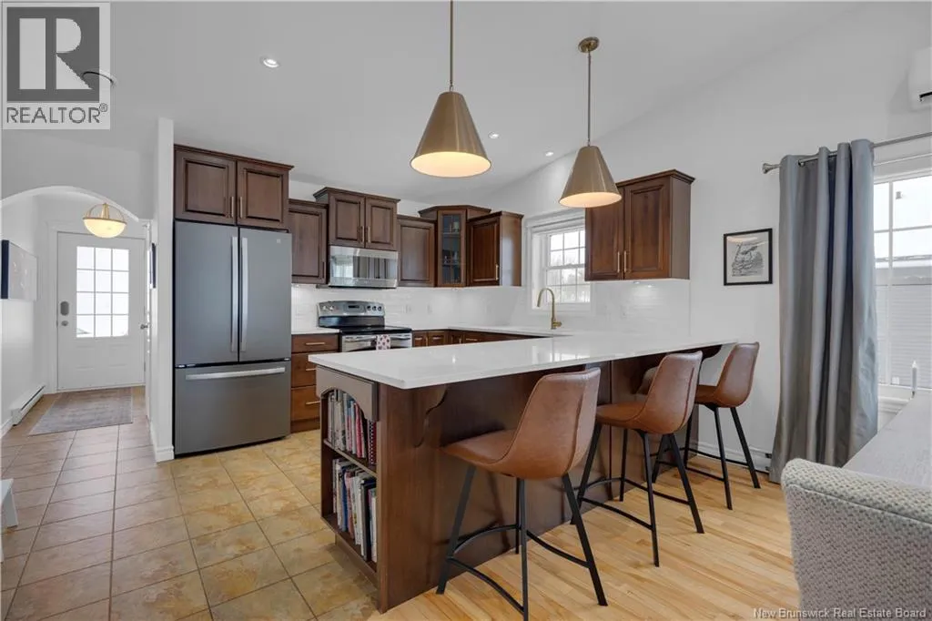 Magnolia, turn onto Malone st, which turns into Malone way. Drive past 65 and swing around back, which is a private lane to access the front door. This delightful, executive, 2-level, semi-detached single-family home offers a perfect blend of comfort, style, and convenience. Step inside to find a spacious layout with modern features. The main floor includes a convenient primary bedroom with a large updated ensuite bathroom with a custom tile shower and beautifully styled double vanity, making everyday living smooth and efficient. His and her closets, finish this amazing retreat. Finishing off the main level is a second bedroom, full 3/4 bath, open concept living space, with upgraded quartz counter tops and subway tile backsplash, heat pump, cathedral ceilings, built in electric fireplace and laundry. All your living requirements are on the main level of this home. Downstairs offers a bright, walk-out basement, a second heat pump, 3rd, large, full bath with jet tub. Spacious family room, generous and practical storage options here as well. The other half of the lower level is set up as a bedroom, directly across from the full bath. This could easily be made into to make a large, official 3 bedroom with the addition of wall. This space could also make a very comfortable granny quite sweet! Outdoors, entertain or relax on newly updated composite covered balcony and added deck, enjoying privacy, peace and spectacular views of the valley and Poley mountain. All this in a new, sought after subdivision, minutes to all amenities and conveniences the town of Sussex has to offer. Call today for your private showing. (id:27476)