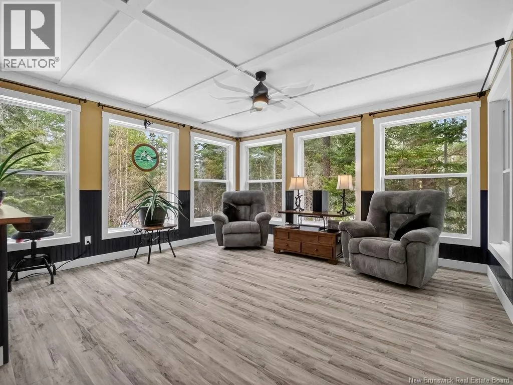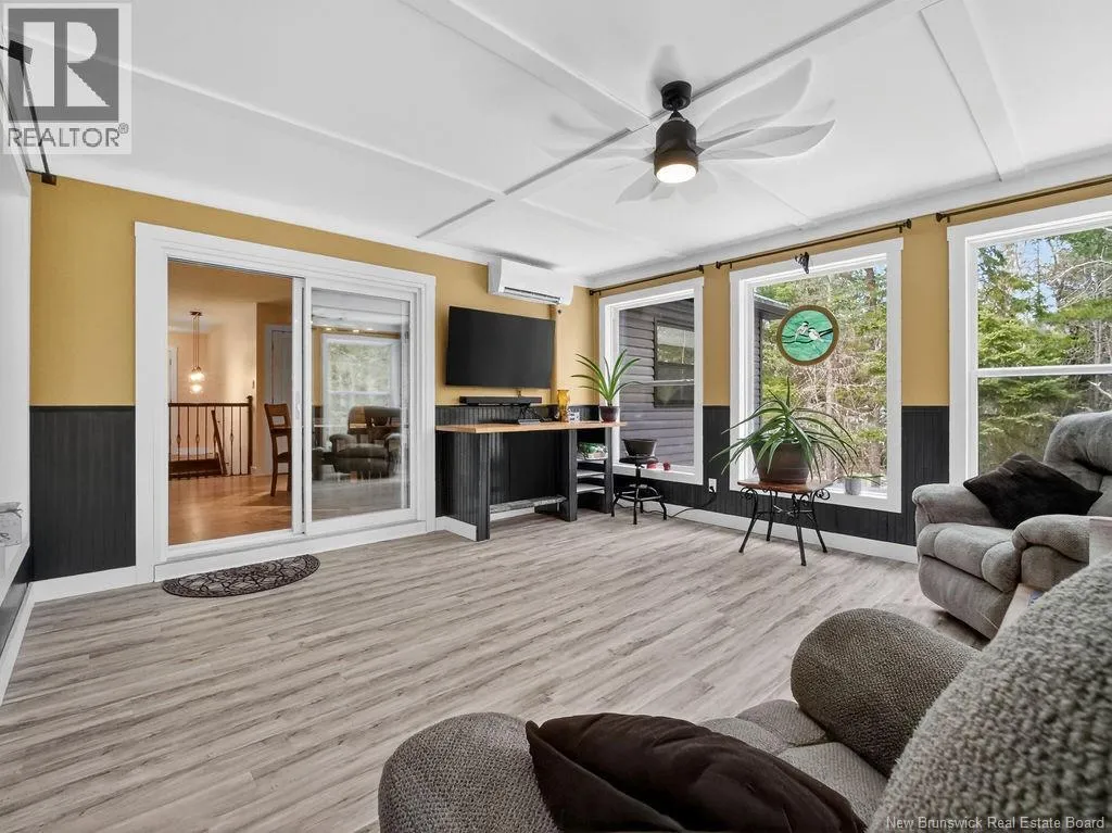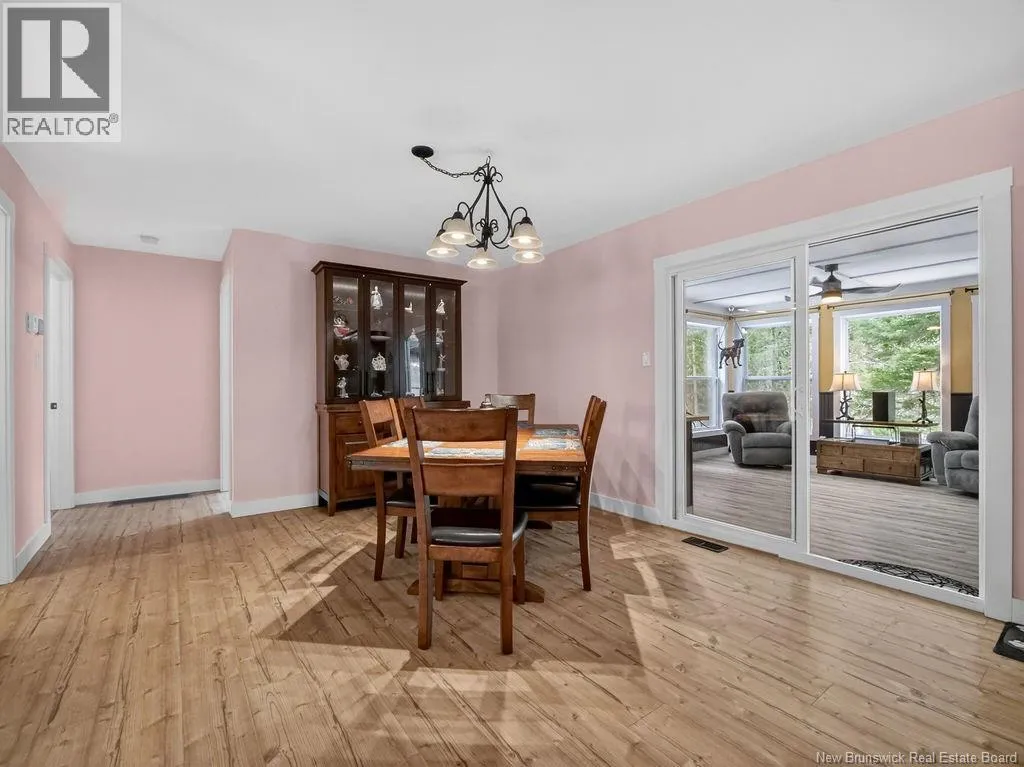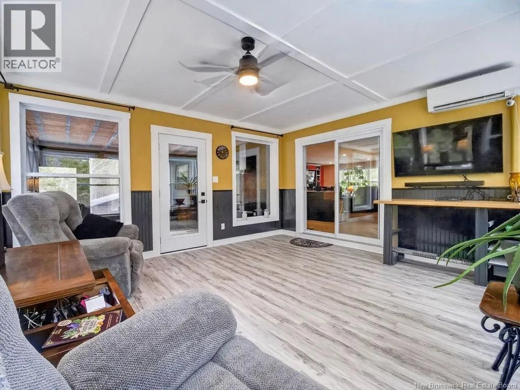 Off route 510 just past the Targetville Rec Center Welcome to this beautiful, move-in ready home built in 2018, set on a private 3-acre treed lot in Targettville, NB. The bright open-concept main floor features a spacious living room flowing into a stunning kitchen & dining area. The well thought out kitchen offers an oversized island, ample cabinetry, & exceptional storage. The main level includes 2 bedrooms, including a primary suite with direct bathroom access featuring a jetted tub, walk-in shower, & custom walk-in closet with built-ins. Off the dining area, enjoy a sun-filled sunroom with large windows, leading to a charming 3-season room with wood ceilings, a vented area for a black stone BBQ, and a cozy swing, ideal for relaxing summer evenings. Fully finished lower level offers a theatre room, family room, dart area, 3rd bedroom, full bath, storage, utility room, & a well-designed laundry space with counter, hanging area, & sink. Features include a geothermal heat pump, two mini-split heat pumps, hot water on demand, & Generac generator to power the home during outages, central vac, stonework accents,& storage shed. Bonus: direct basement access to the attached garage, which includes a workbench, sink, & plenty of space. Additional opportunity: lot with brand new shop/garage is also available & could be purchased as a package directly across the street (MLS® NB136899). Minutes to Rexton and Richibucto, and approximately 50 minutes to Moncton or Miramichi, offering a great balance of privacy and accessibility. (id:27476)