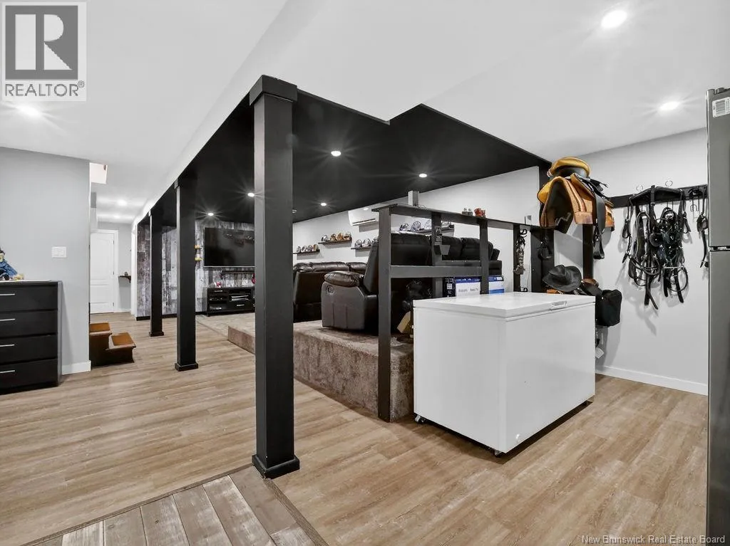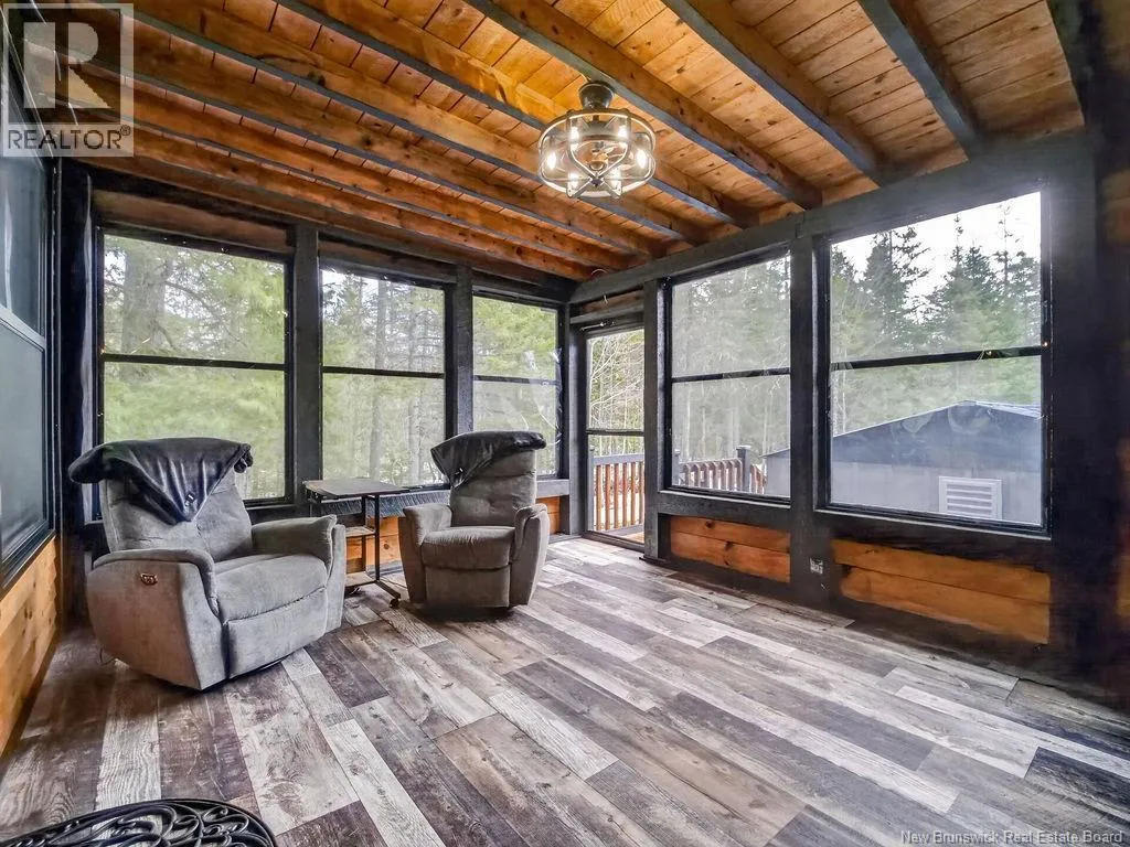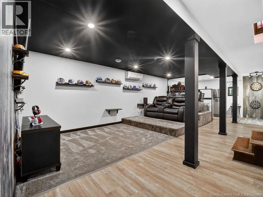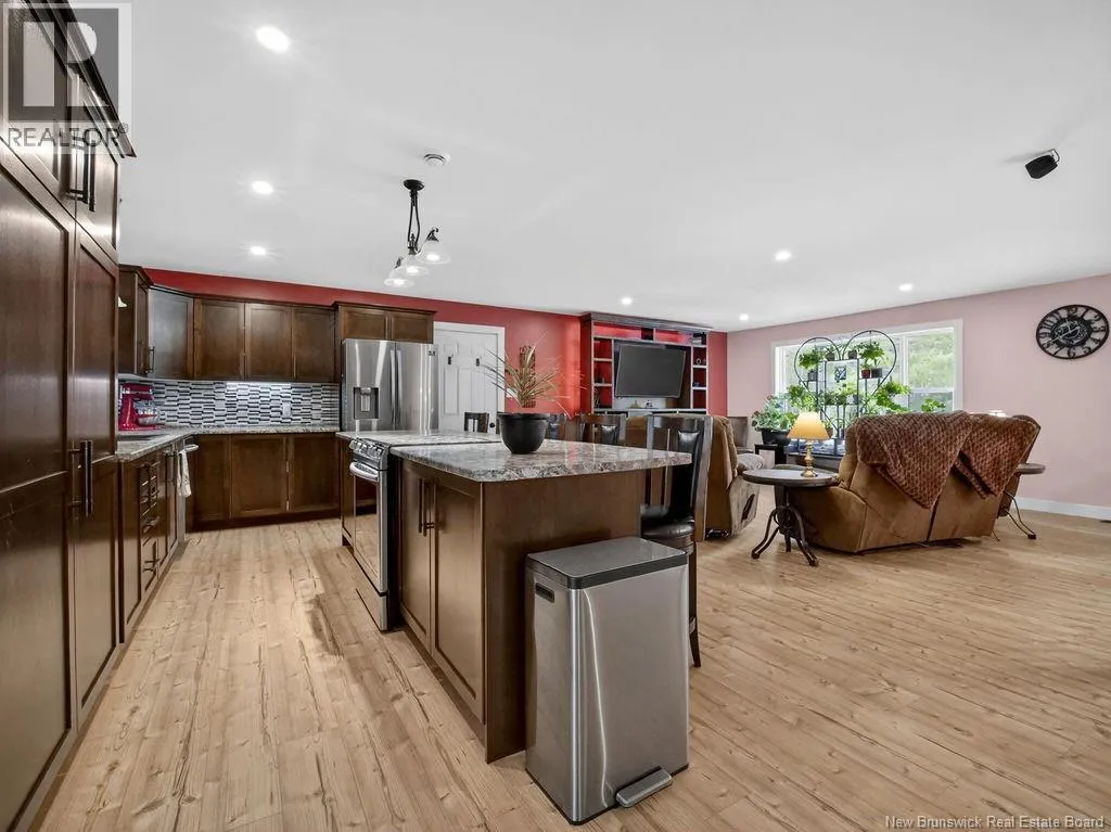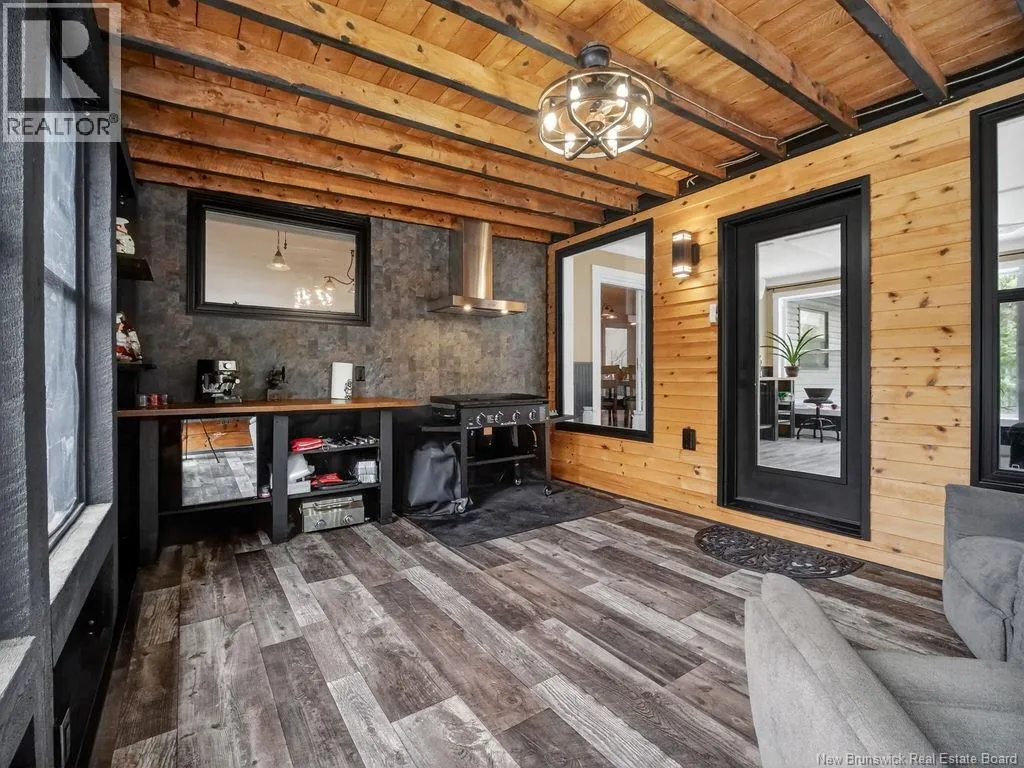 Off route 510 just past the Targetville Rec Center Welcome to this beautiful, move-in ready home built in 2018, set on a private 3-acre treed lot in Targettville, NB. The bright open-concept main floor features a spacious living room flowing into a stunning kitchen & dining area. The well thought out kitchen offers an oversized island, ample cabinetry, & exceptional storage. The main level includes 2 bedrooms, including a primary suite with direct bathroom access featuring a jetted tub, walk-in shower, & custom walk-in closet with built-ins. Off the dining area, enjoy a sun-filled sunroom with large windows, leading to a charming 3-season room with wood ceilings, a vented area for a black stone BBQ, and a cozy swing, ideal for relaxing summer evenings. Fully finished lower level offers a theatre room, family room, dart area, 3rd bedroom, full bath, storage, utility room, & a well-designed laundry space with counter, hanging area, & sink. Features include a geothermal heat pump, two mini-split heat pumps, hot water on demand, & Generac generator to power the home during outages, central vac, stonework accents,& storage shed. Bonus: direct basement access to the attached garage, which includes a workbench, sink, & plenty of space. Additional opportunity: lot with brand new shop/garage is also available & could be purchased as a package directly across the street (MLS® NB136899). Minutes to Rexton and Richibucto, and approximately 50 minutes to Moncton or Miramichi, offering a great balance of privacy and accessibility. (id:27476)
