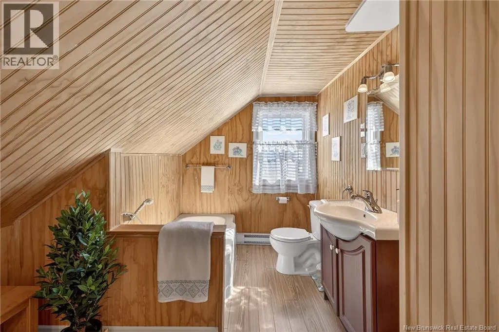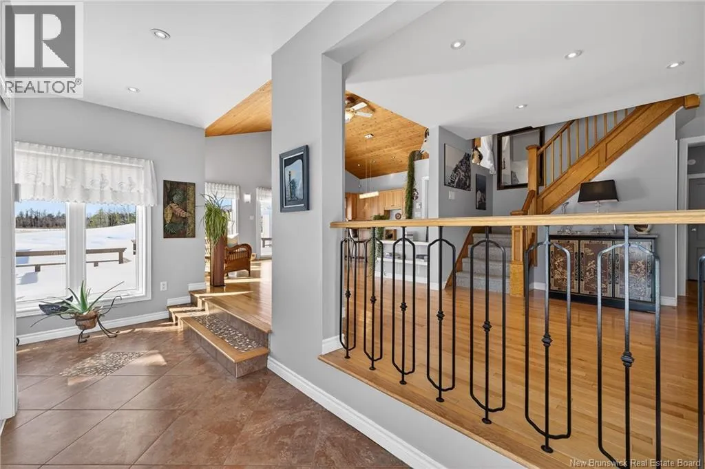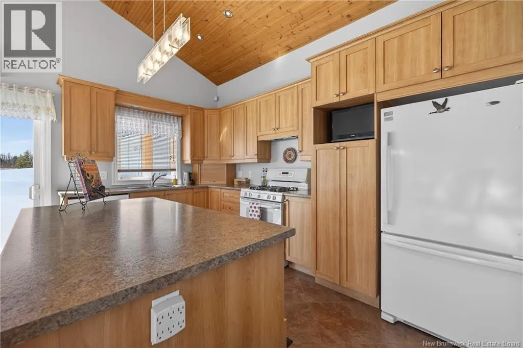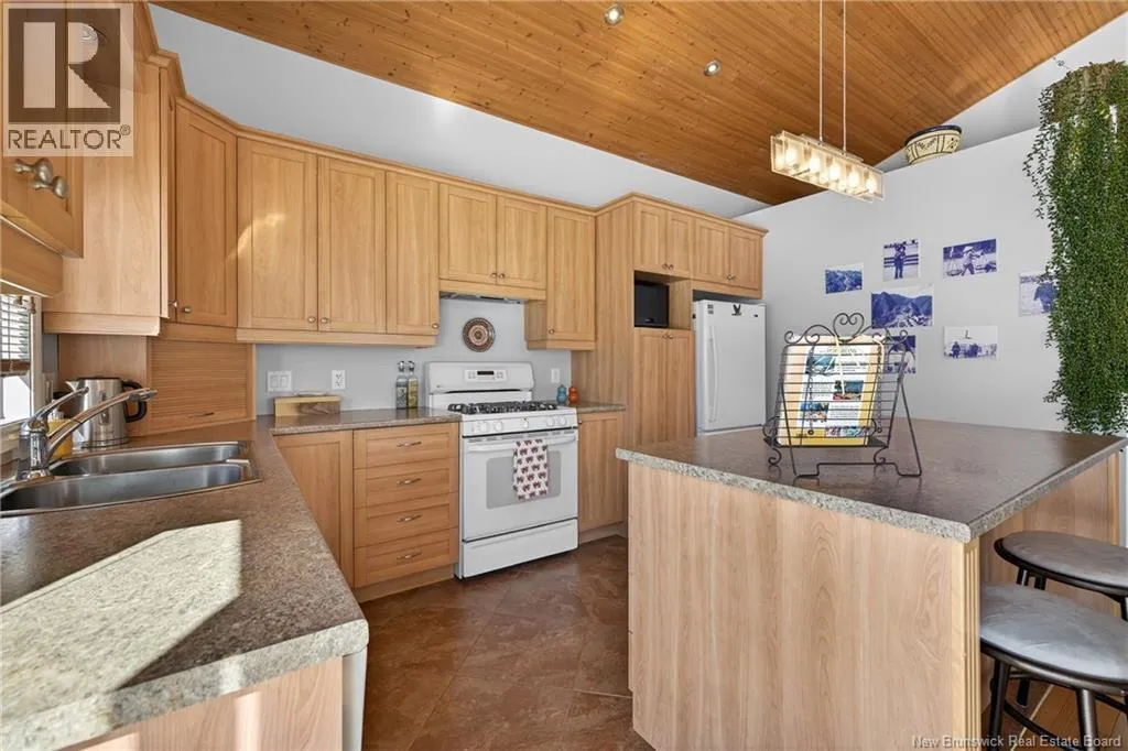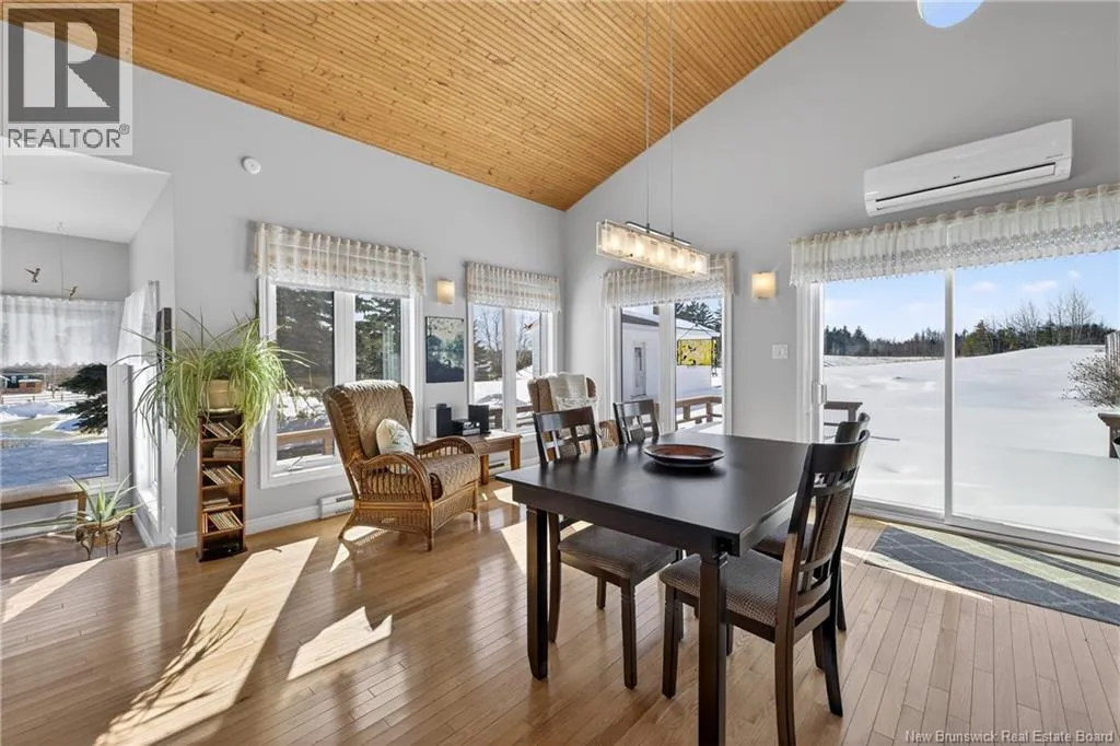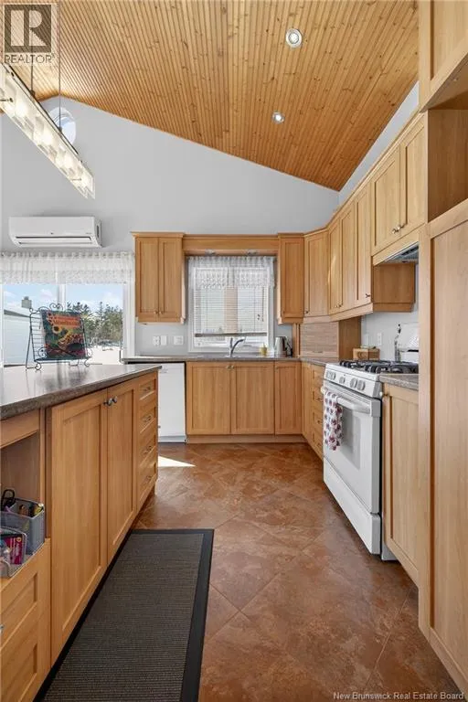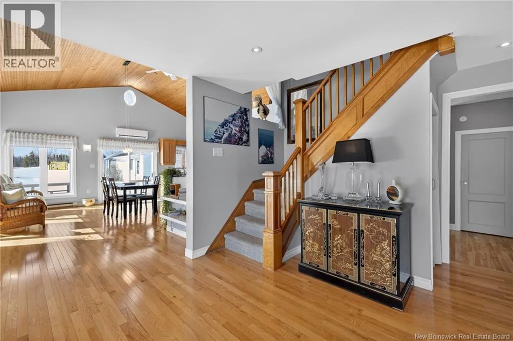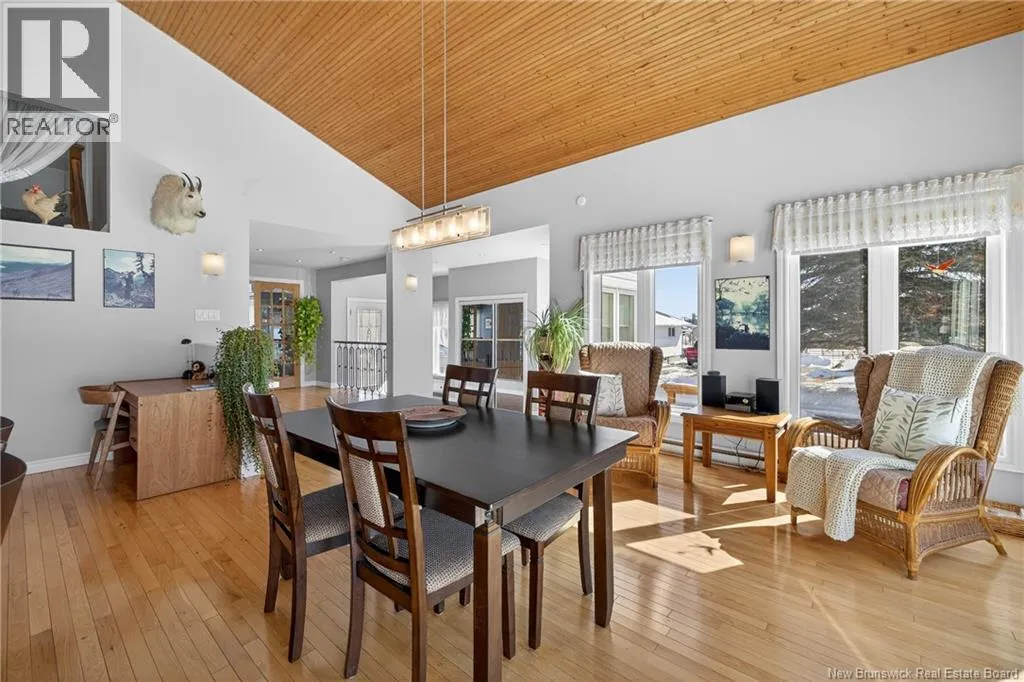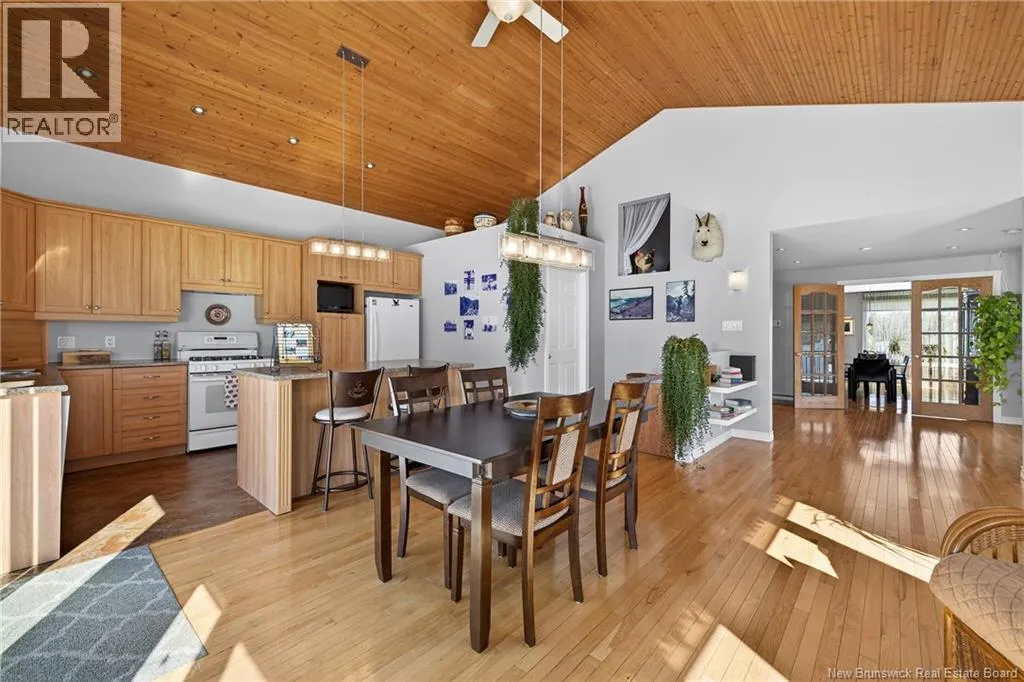 From Main Street, turn onto Basque Street and then right onto E. Breau Road and the house will be on your right or on Church Steet and turn left. From the moment you arrive, this property will charm you with its unique style and the space it offers to share precious moments with family and friends. Having benefited from two additions over the years, the home offers a warm and inviting layout. As you enter, you will notice the beautiful crafted railing and staircase leading to a stunning open-concept space where the renovated kitchen, dining area and sitting space come together under a magnificent cathedral wood ceiling that adds remarkable character to the room. Hardwood floors and abundant natural light create a welcoming atmosphere where you immediately feel at home. The home also offers an additional living area on the main level, comparable to a family room often found in the basement but with the advantage of being bright and on the main floor. This versatile space is perfect for relaxing, entertaining friends or spending time with family while enjoying the warmth of the beautiful wood-burning fireplace (Napoleon), perfect for gathering during winter evenings. Outside, the property continues to impress with its terrace, large lot for the area, a greenhouse equipped with a watering system for gardening enthusiasts, and a detached garage. Located close to Tracadie, within walking distance of schools and only minutes from shops and essential services. (id:27476)