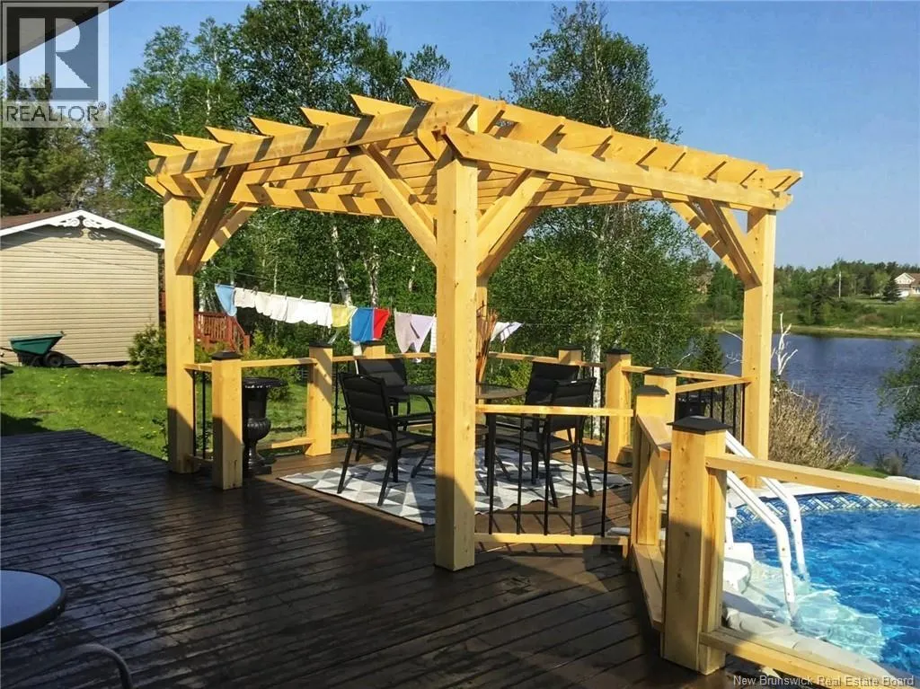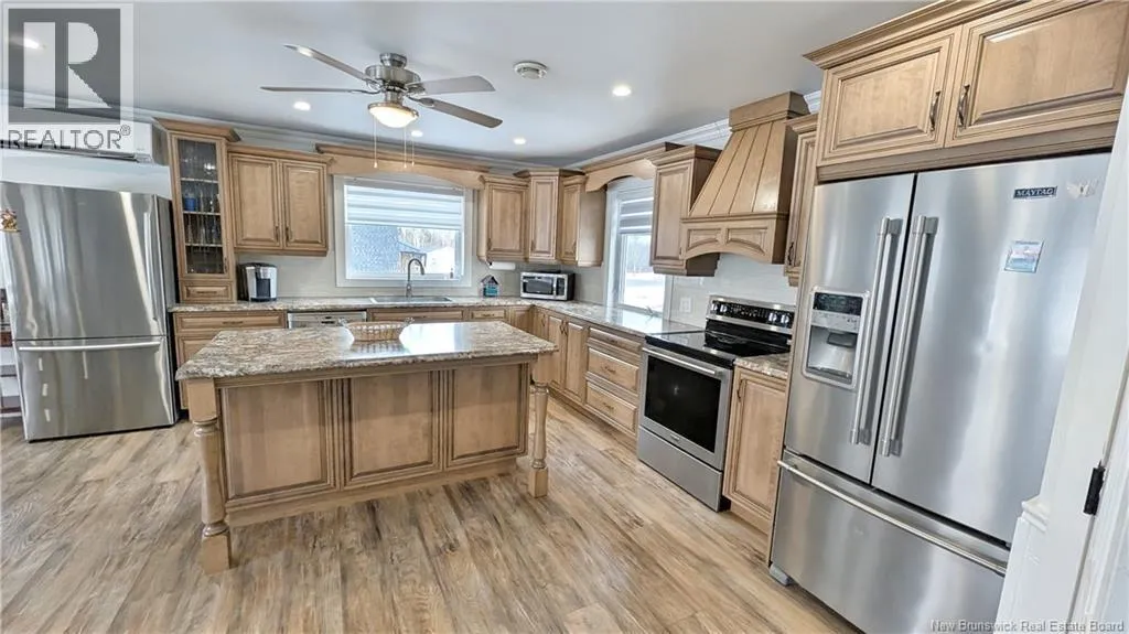 Rte 11 to Rue Brideau to Rue Baspuits When Viewing This Property On Realtor.ca Please Click On The Multimedia or Virtual Tour Link For More Property Info. Beautiful waterfront property located at 703 Baspuits Street in Tracadie, offering a peaceful setting just minutes from downtown and all amenities. This well-designed bungalow features single-level living with a bright and spacious open-concept layout combining the living room, dining area, and a modern kitchen complete with a central island and walk-in pantry ideal for everyday living and entertaining. The home includes 2 bedrooms and 2 full bathrooms. The primary bedroom offers a large walk-in closet and a private ensuite with a relaxing jetted tub. A second bedroom and a full bathroom with laundry area complete the interior. Comfort is ensured year-round with a heat pump providing heating and air conditioning, along with a wood stove in the living room for added warmth and ambiance. Outside, the property sits on approximately 1 acre with 165 feet of river frontage, offering direct access to the water. Enjoy outdoor living with a spacious deck, pergola, and a 15-foot pool, all overlooking the river. A large insulated double garage with epoxy flooring, with the option to heat, adds even more value. A rare opportunity combining modern comfort, waterfront lifestyle, and a prime location. (id:27476)