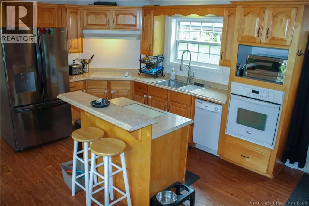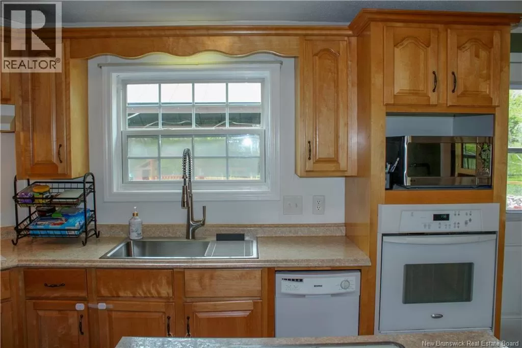 From Oromocto take Broad Rd through Geary, turn onto Branch Rd, through Fredericton Junction, home is on the right side of road, sign is up. From Fredericton take HWY 101 to Tracy, home is on the left side of road and sign is up. Freshly painted throughout! Beautiful country setting! This home is nestled away beyond the trees with a babbling brook that makes is way along the front of the property. This home offers privacy and an abundance of outdoor space to explore, garden and enjoy! Spacious 4 bedroom / 2 bathroom Maple Leaf home has been well cared for and has a great floor plan with the primary bedroom with 3 pc ensuite bath, bedroom and laundry area. The other end of the home has the main bath and two generous size bedrooms. The living room and Kitchen are both a great size with great natural light. The kitchen has built in appliances, island with seating for two and beautiful Maple cabinetry with great counter space. To complete this great package the home has a fenced in back yard great for the kiddos / fur babies to run and play. New lifetime metal roof was installed in April 2025. Enjoy the comforts of country living within a short drive of Fredericton, Oromocto & CFB Gagetown. (id:27476)