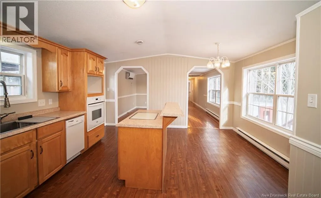 From Fredericton - take Route 101 towards Fredericton Junction, property on left PRIVATE 5.7-ACRE MINI HOME RETREAT. METAL ROOF, FRESHLY PAINTED, 4 BEDROOMS. Tucked into peaceful, wooded setting just minutes from Fredericton Junction and easy 30-minute commute to both Fredericton and Oromocto. This beautifully maintained mini home offers space, privacy, and layout that truly works for everyday living. Step inside to bright, inviting main living area featuring heat pump for energy-efficient heating and cooling. Kitchen is designed for function and flow, with warm cabinetry, generous counter space, and island with raised breakfast bar. Built-in oven, counter-top stove & dishwasher complete the setup, while the open connection to the dining area makes the space feel welcoming and practical. Split-bedroom floor plan is ideal: primary suite (with ensuite) and additional bedroom are located on one end for added privacy, while the opposite end offers two more bedrooms, main bath, and convenient laundry - great for families, guests, or home office setup. Outside, enjoy the freedom of 5.7 acres with room to roam, garden, or simply unwind in nature. Metal roof adds long-term value and low maintenance, and multiple outbuildings provide extra storage for tools, toys, or seasonal gear. (id:27476)