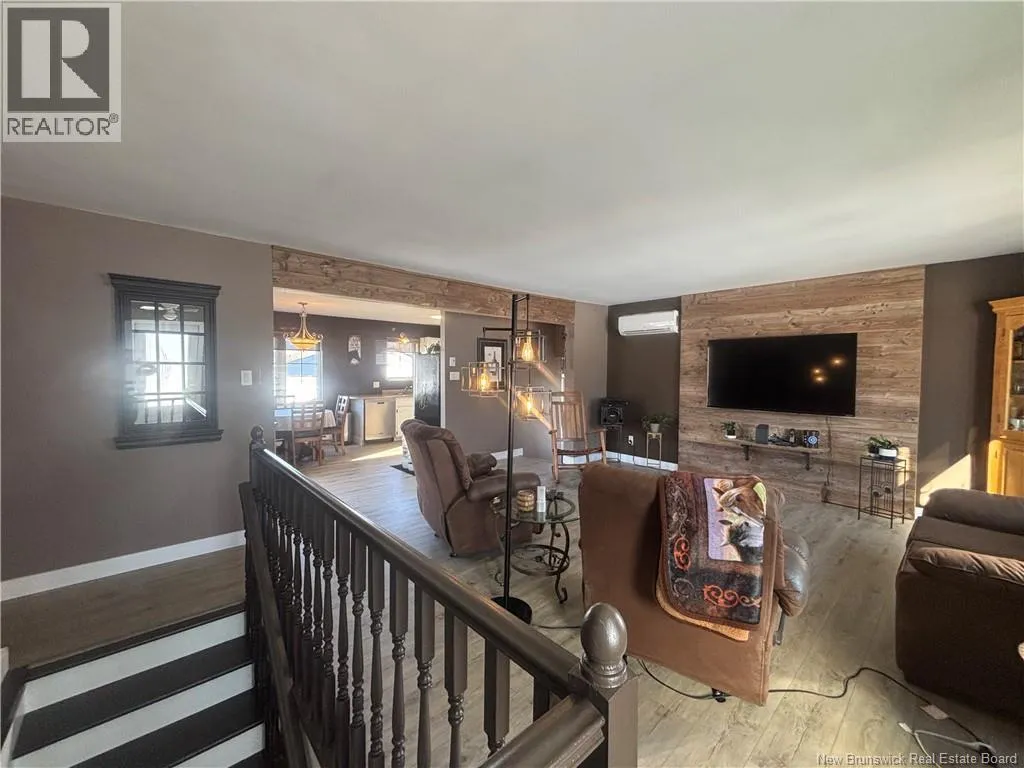 From Route 134 take Chemin Tremblay, Turn left onto Rue Pierre, Turn right onto NB-315 N, Destination will be on the left This impressive property has seen numerous recent renovations, both inside and out, and is ready for its next owner. The main floor features a bright open-concept layout with a spacious living room equipped with a heat pump, a well-appointed kitchen and dining area, two large bedroomsincluding a primary bedroom with a convenient half bathand a full bathroom with laundry. The basement offers additional living space with a generous family room, a third bedroom (window not egress), and a large entry area with a cozy wood stoveperfect for added comfort during colder months. Step outside to a beautifully maintained yard with a paved driveway and a detached insulated garage (20' x 42'). The property also includes a barn (built in 2012) measuring 24' x 48', complete with water and 60-amp electrical service. Ideal for hobby farming or equestrian use, youll find two large paddocks with electric fencing, a 14' x 21' shelter with wood flooring, and a 65' x 135' fenced riding ring. The land also features a charming 16' x 20' campperfect for recreation or additional storage. This property has so much to offerdont miss this great opportunity! (id:27476)