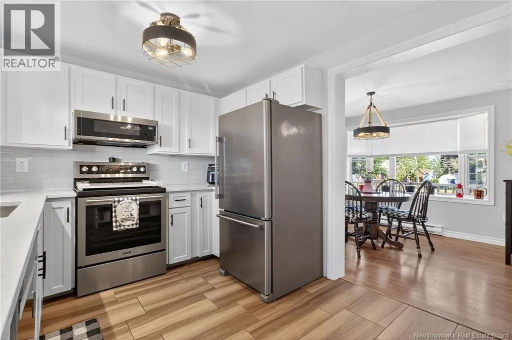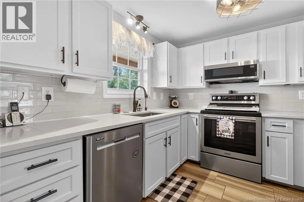 From Moncton take Highway 15. Turn left onto Acadie Road. Sharp right onto Trois-Ruisseaux Road. Turn left onto All. Ptit Pierre. Turn left onto Modeste Street. Welcome to 12 Modeste Street in Trois Ruisseaux. This property is just steps away from beach with deeded access. This immaculate bungalow has been lovingly maintained and beautifully updated, offering the perfect blend of comfort and modern convenience. The main floor offers a bright living room with mini-split, a charming dining area with bay window and access to the veranda plus a stunning renovated kitchen (2024) with quartz countertops, backsplash, and modern finishes. Also, on the main floor is an elegant primary bedroom, two additional bedrooms and a full bath with granite vanity and laundry. In the partially finished basement extends your living space with a large family room, spacious non-conforming bedroom with mini split, full bath and storage. Step outside to your private oasis boasting a fenced backyard (lot extends past the fence), gorgeous 11x14 gazebo, wraparound veranda, detached double garage (2019) and storage shed. Youll also enjoy the paved driveway and RV hook up with power and holding tank. Recent renos include roof shingles (2017), hot water tank, light fixtures, additional attic and garage insulation (2021), foam insulation on inside concrete walls. Generator hookup, mini splits & water treatment system (2016), new thermostats, new water softener & presser tank (2024). Septic, mini-splits and air exchanger all cleaned in 2024. Located just minutes from all Cap-Pele amenities. Call your REALTOR® for more information or to book your private viewing. (id:27476)