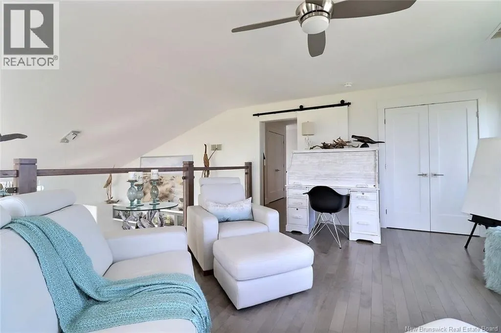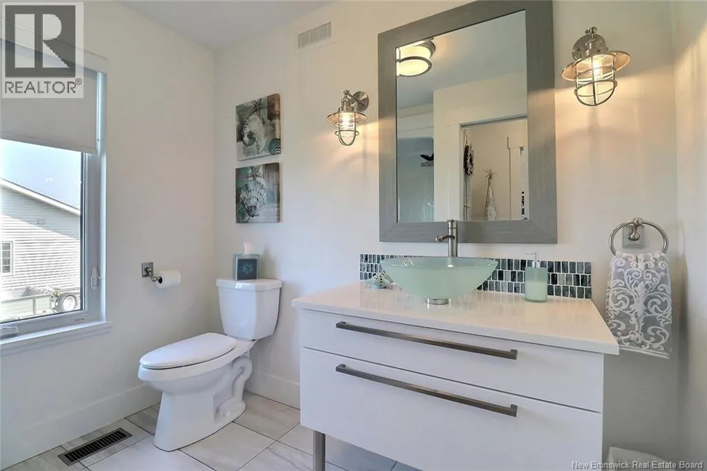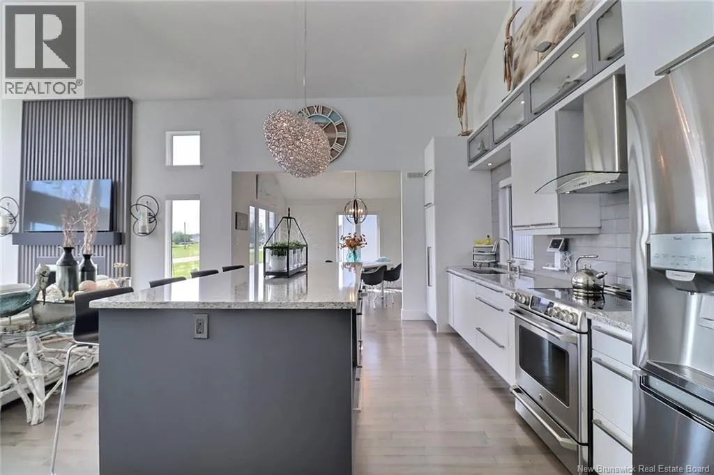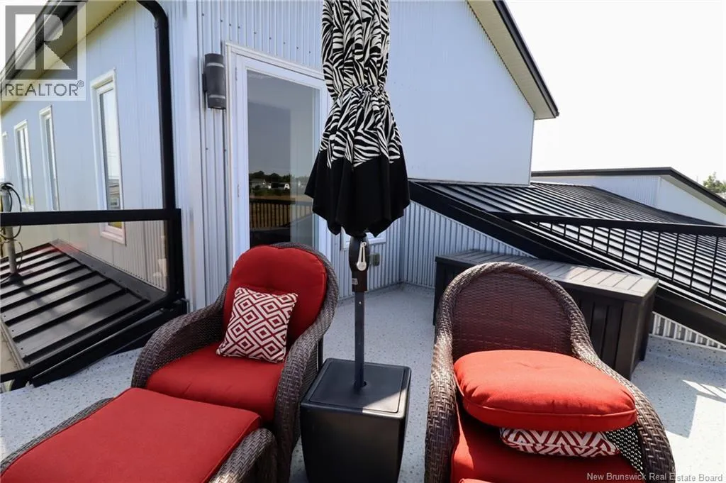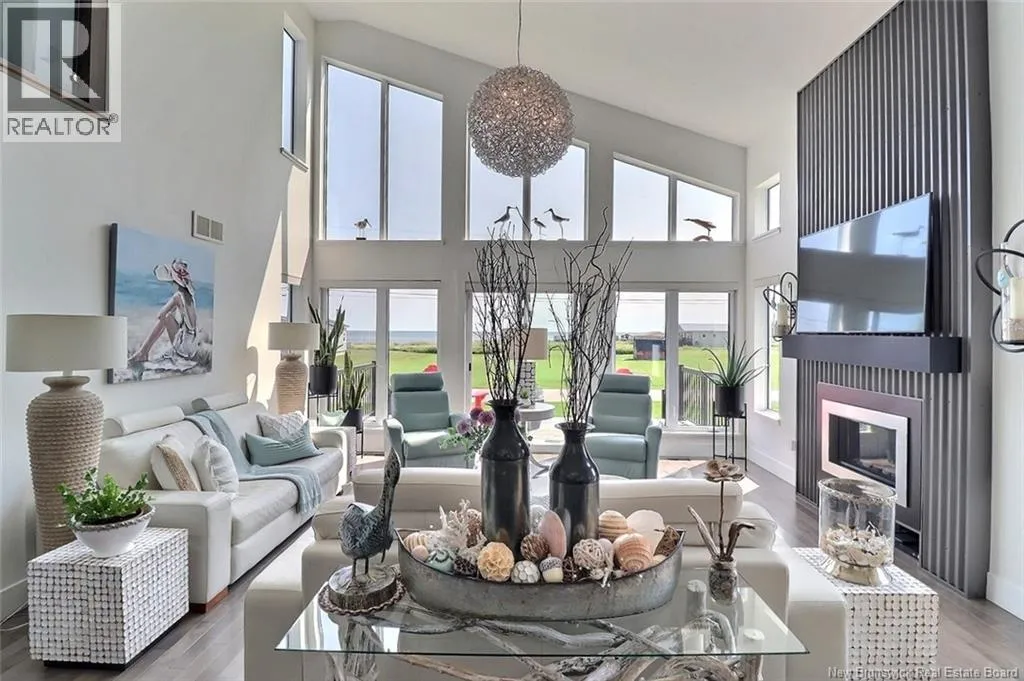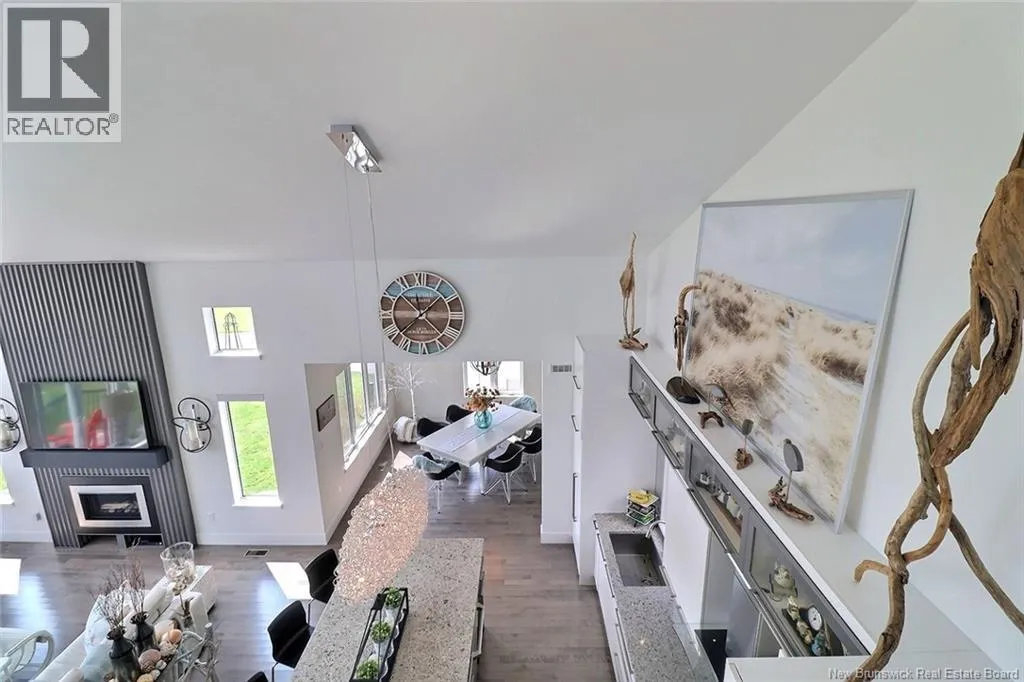 Chemin Bas-Cap-Pelé (Route 950) to Connie Road. Welcome to 52 Connie, an extraordinary custom-built home offering panoramic water views, deeded beach access, and thoughtful design throughout. Built in 2016 with quality and energy efficiency in mind, this stunning property boasts low-maintenance materials including a durable corrugated steel exterior and metal roof. Step inside and be greeted by soaring ceilings, expansive windows, and a bright, open-concept layout that floods the space with natural light. The chefs kitchen features quartz countertops, custom cabinetry, and premium stainless steel appliances, seamlessly flowing into the living and dining areas; perfect for entertaining. The primary suite offers water views, three double closets, and a spa-like 5-piece ensuite. Two additional bedrooms include generous closet space and a cedar-lined closet upstairs for your seasonal storage needs. Enjoy year-round comfort with the central air heat pump and interior hardwood and ceramic tile throughout. Outside, two oversized decks showcase spectacular sunsets and sunrises. The meticulously landscaped 0.47-acre lot includes a swim spa, a custom fire pit, RV hookup, shed, and a large attached garage with room for two vehicles, toys & workshop. (id:27476)