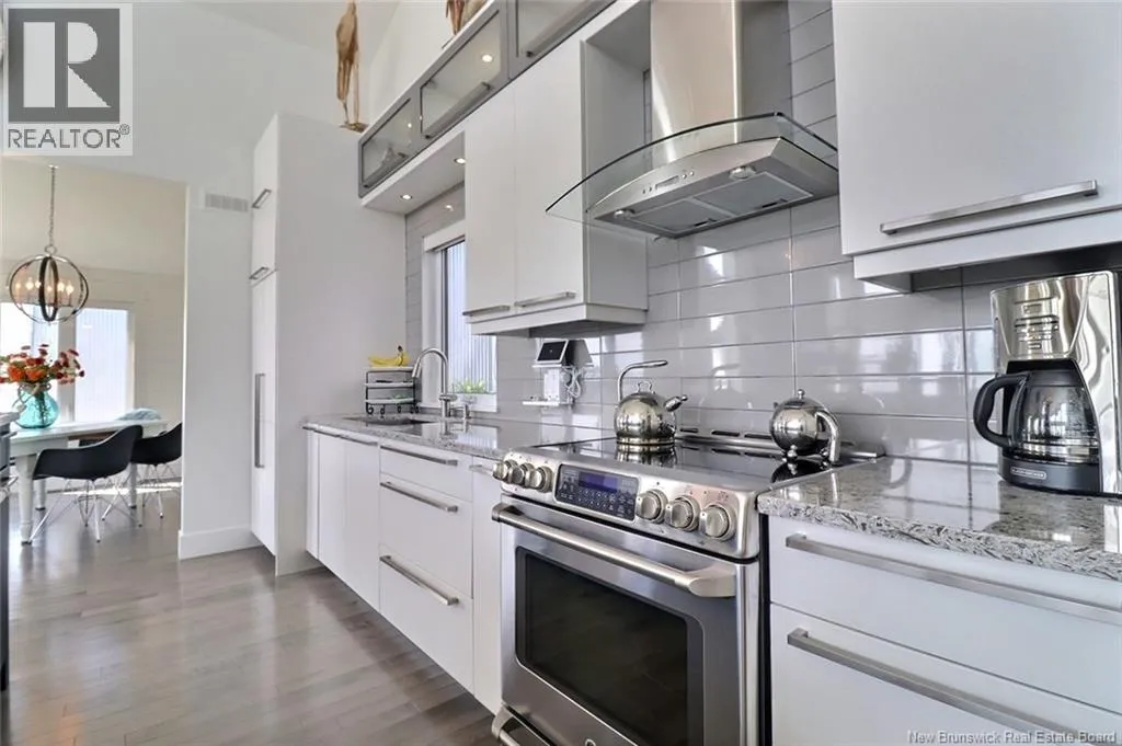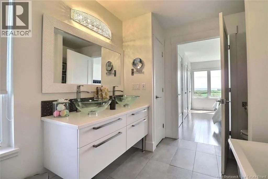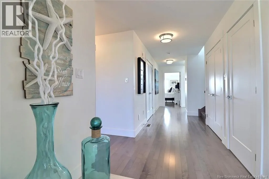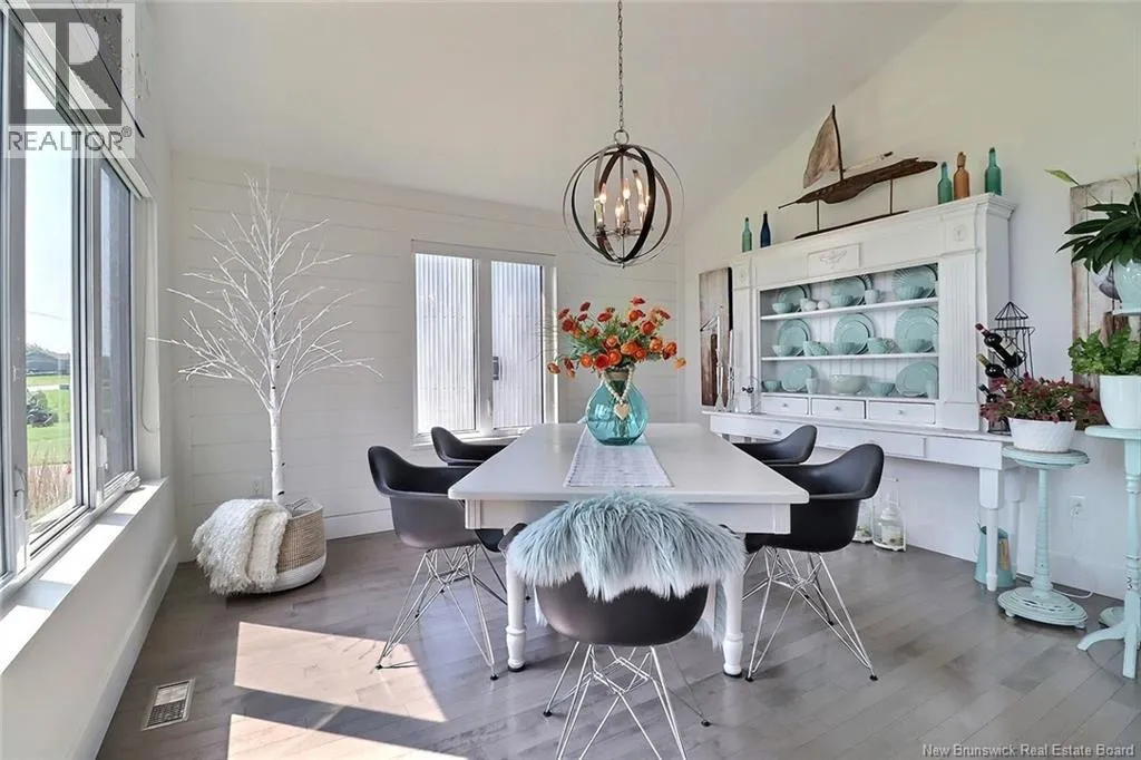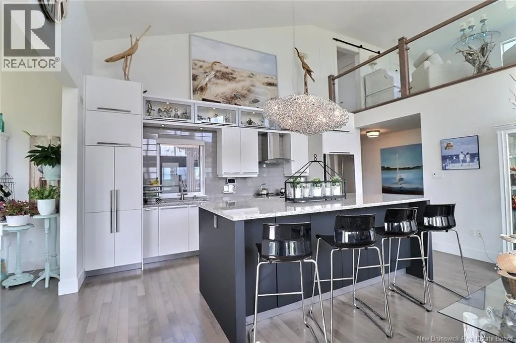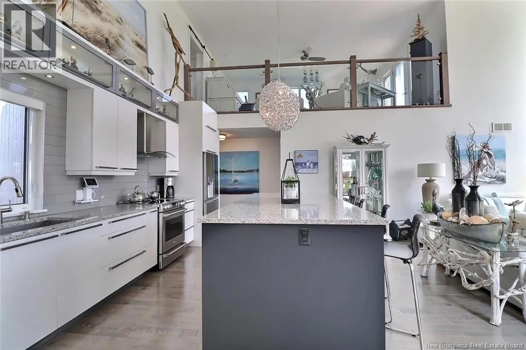 Chemin Bas-Cap-Pelé (Route 950) to Connie Road. Welcome to 52 Connie, an extraordinary custom-built home offering panoramic water views, deeded beach access, and thoughtful design throughout. Built in 2016 with quality and energy efficiency in mind, this stunning property boasts low-maintenance materials including a durable corrugated steel exterior and metal roof. Step inside and be greeted by soaring ceilings, expansive windows, and a bright, open-concept layout that floods the space with natural light. The chefs kitchen features quartz countertops, custom cabinetry, and premium stainless steel appliances, seamlessly flowing into the living and dining areas; perfect for entertaining. The primary suite offers water views, three double closets, and a spa-like 5-piece ensuite. Two additional bedrooms include generous closet space and a cedar-lined closet upstairs for your seasonal storage needs. Enjoy year-round comfort with the central air heat pump and interior hardwood and ceramic tile throughout. Outside, two oversized decks showcase spectacular sunsets and sunrises. The meticulously landscaped 0.47-acre lot includes a swim spa, a custom fire pit, RV hookup, shed, and a large attached garage with room for two vehicles, toys & workshop. (id:27476)