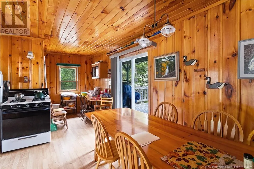 Contact listing agent for directions Escape to your own private paradise with this charming off-grid 3-bedroom cottage overlooking the stunning Cains River. Nestled on 26 hectares (65 acres) of beautifully managed land, this unique property offers peace, privacy, and a deep connection to nature - ideal for outdoor enthusiasts, hunters, or those looking to unplug and unwind. The cottage features a new metal roof (2021) and is fully self-sufficient with generator power, propane lighting, and a spring-fed water source. Enjoy modern conveniences including a gas stove and fridge, full bathroom, and an expansive front deck, partially covered for year-round enjoyment of panoramic water view. Additional highlights include a detached 28 ft x 19ft workshop/boathouse, mature mixed forest, and a well-maintained access road, making this property both practical and picturesque. Whether you're looking for a seasonal getaway or an off-grid lifestyle, this property is a rare find in one of New Brunswick's most scenic riverfront regions. (id:27476)