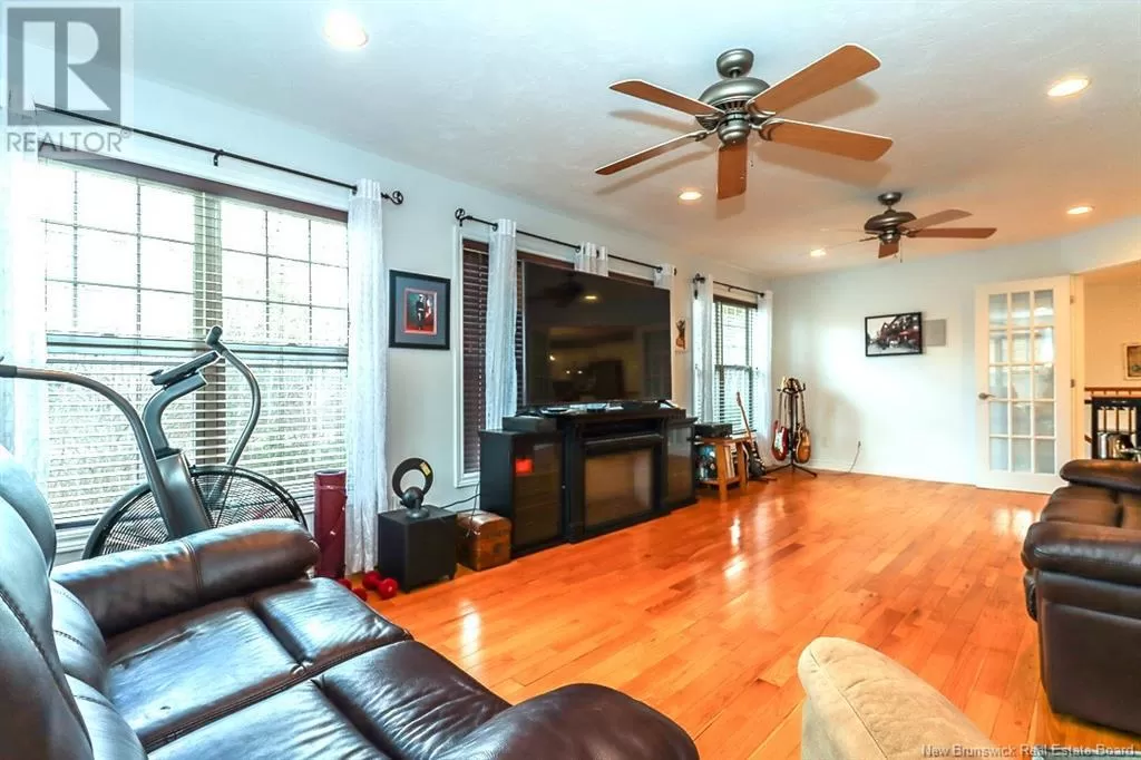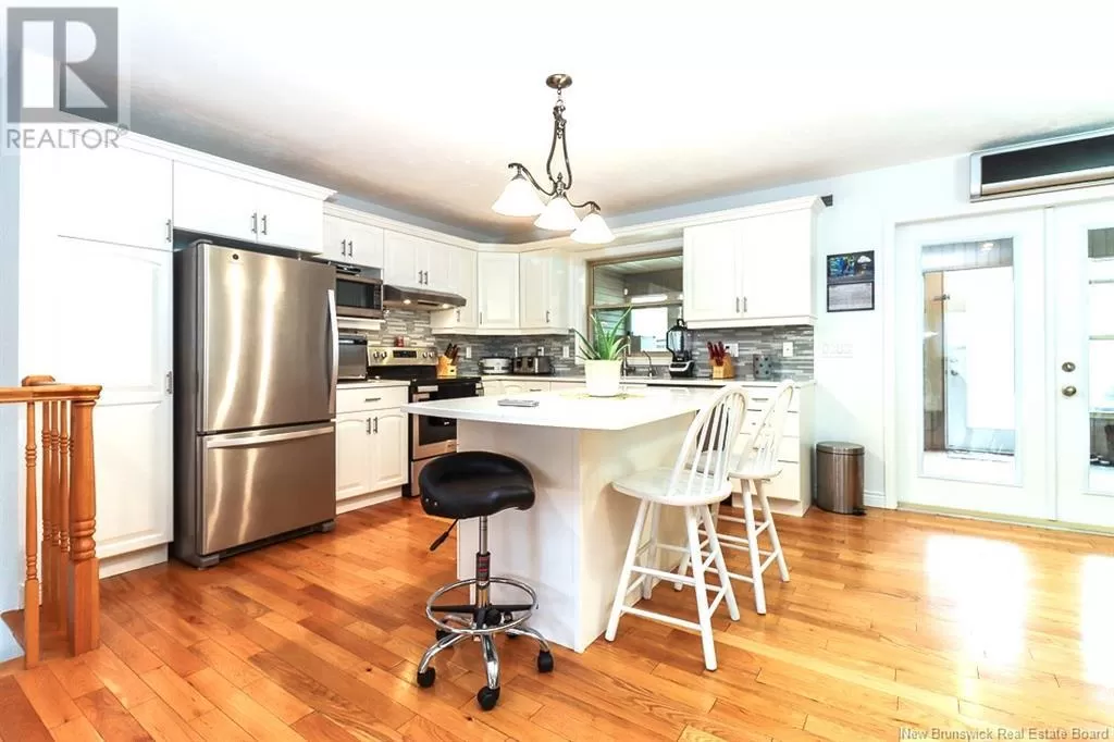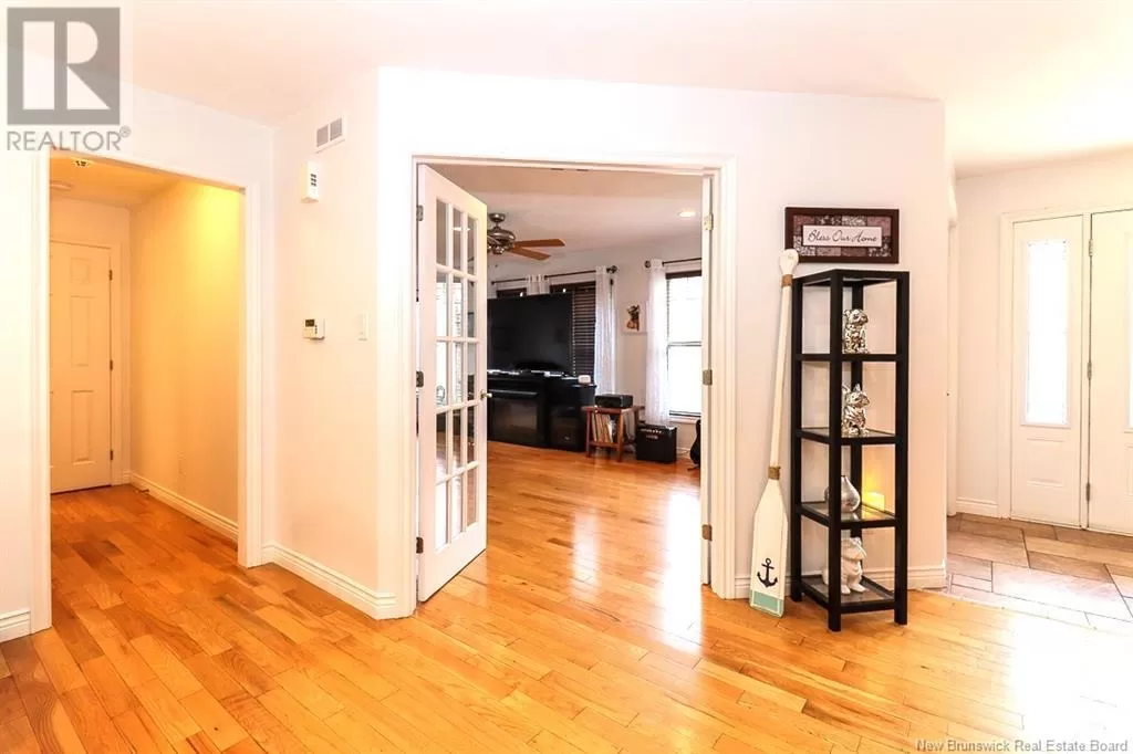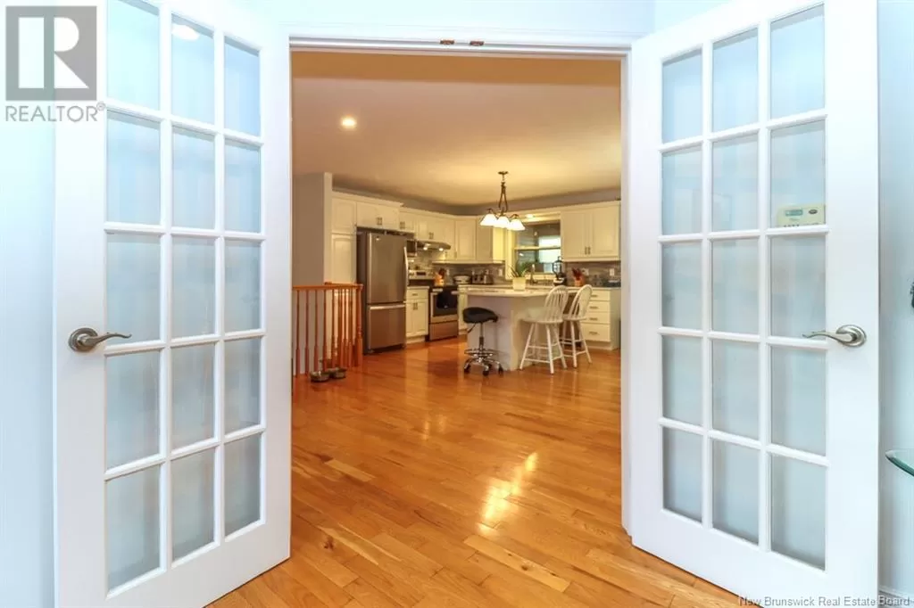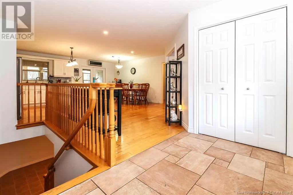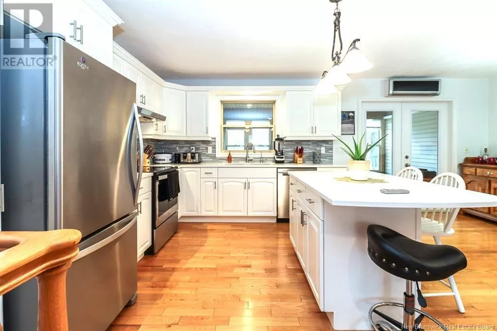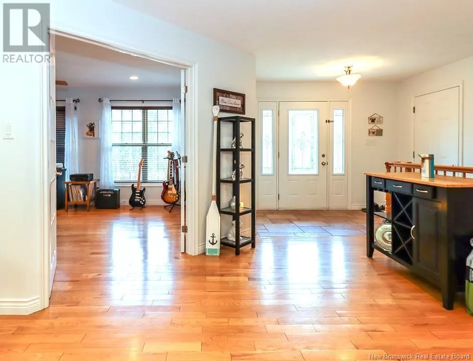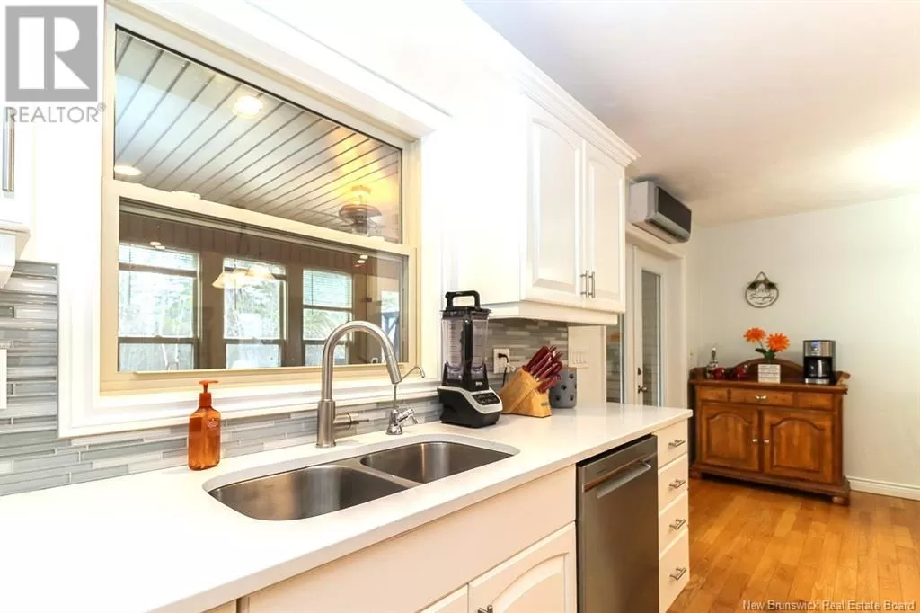 Ready for a quick close! Discover this stunning executive bungalow just 15 minutes from Moncton, set on a beautifully landscaped 2-acre private lotperfect for peace, space, & privacy. Offering single-level living with a fully finished basement, its ideal for an in-law suite or additional living space. The expansive living room with wall of windows is impressive! An updated kitchen features quartz countertops, a chic backsplash, large central island, newer appliances, and ample cabinetryperfect for entertaining. Dining area flows into an enclosed 3-season sunroom, leading to a secluded backyard oasis, and deck that spans the length of the home, reinforced to support a future hot tub! Spacious, bright living room includes built-in surround sound speakers, making it perfect for relaxing or hosting guests. Primary bedroom is generously sized and bright, the 4-piece bath and separate laundry room finish this level. Downstairs offers a guest bedroom, full bath, and a large L-shaped family room and storage, with room to add another bedroom. In-floor heating runs through both levels and two ductless heat pumps provide year-round comfort. The attached triple garage (24 x 41) is equipped with custom cabinets, in-floor heating in one bay & a half bathideal for a workshop or hobby space. Immaculate and move-in ready, this home combines space, privacy, and modern comfort in a tranquil setting. Motivated seller! Schedule your viewing today and make this extraordinary residence yours! (id:27476)