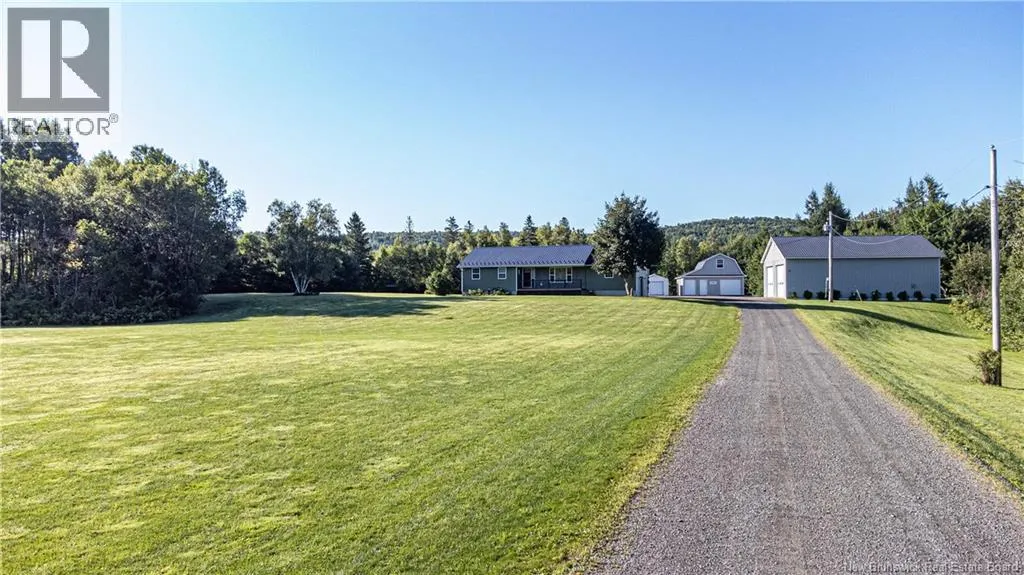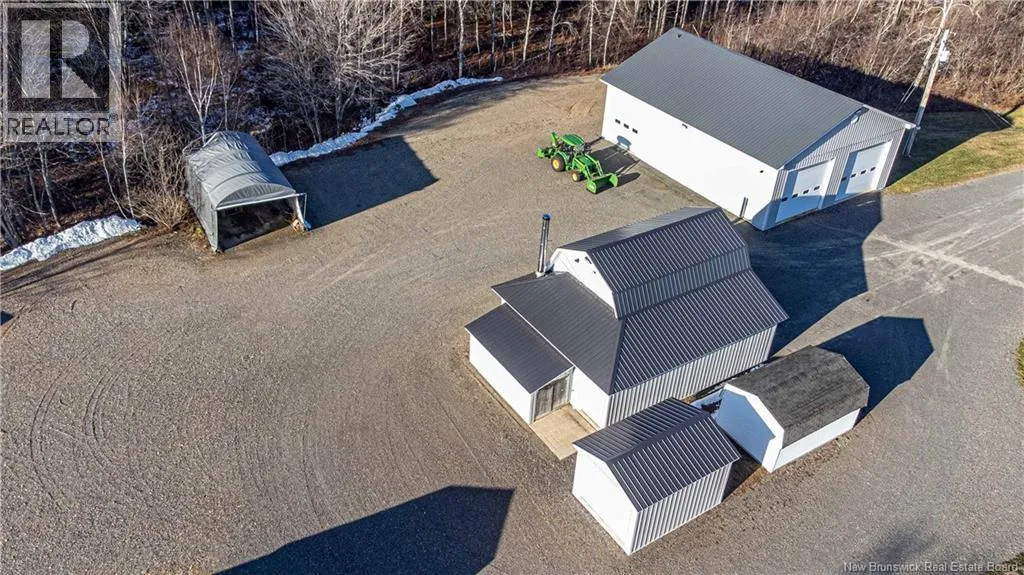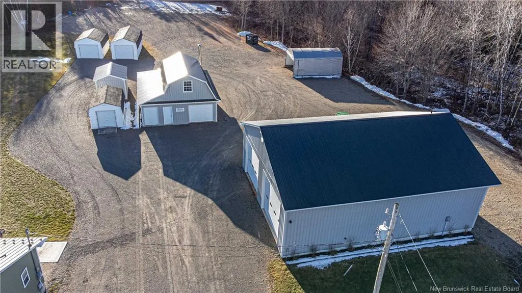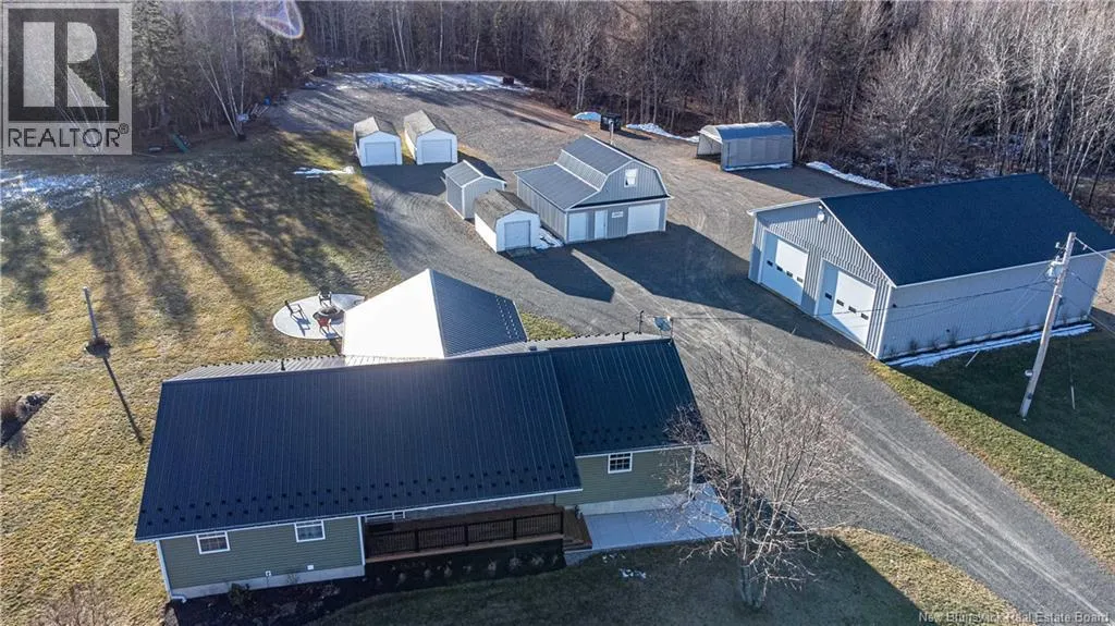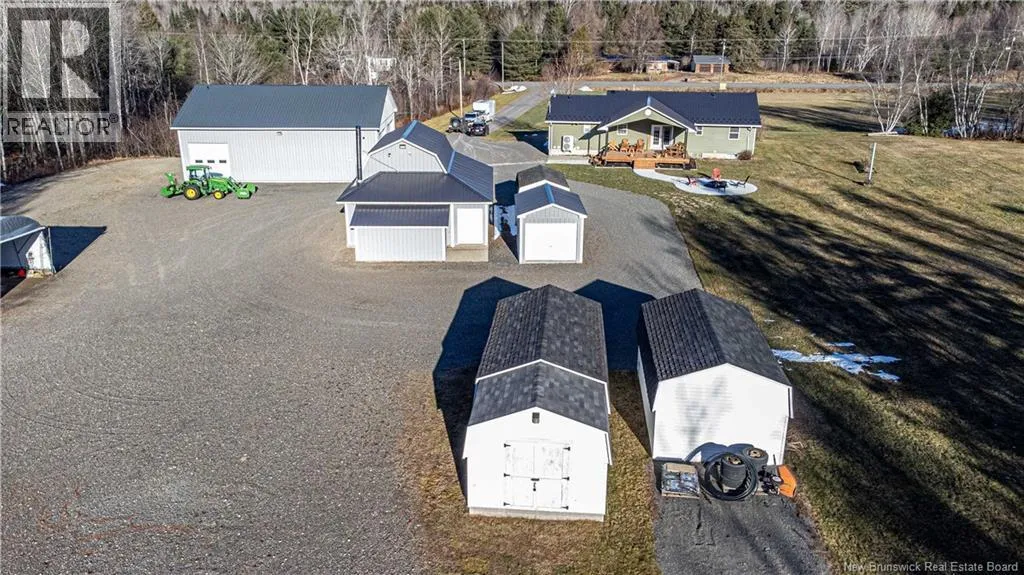Take Rte 105 from Fredericton on to Rte 104 through Keswick Continue to civic on left This expansive and amazing property consists of 14 acres with a huge 38x50 garage, 26x32 garage c/w upper loft, 3 storage bldgs, tarp shed and a completely renovated 2300+ sq ft home with in law suite or income potential. If you're looking for a place to move an existing business or create a new one then you need look no further. This property was used by the current owner as home to a Plumbing & Heating Business but will accommodate a variety of options and lends itself well to the mechanic, trucker, or contractor of any sort. Main garage has in floor heating c/w slab sensor & electric boiler, 9000 lb hoist, washroom (own septic), security system, 10 hp compressor c/w auto drain blow down / refrigerated air dryer- lines throughout and many other features. The 2 storey 26x32 garage is completely finished with new Kerr oil furnace, woodworking shop in 2nd level & security system. There are 2 storage bldgs 12x20 on concrete slabs, one that has a 500 gal diesel tank sitting in a poured concrete oil leak containment system, another 10x14 bldg on concrete slab & 16x25 Tarp shed. The yard is huge with more than ample parking for vehicles, RV's, trucks or heavy equiptment of any sort. Please see attached list of complete features. (id:27476)