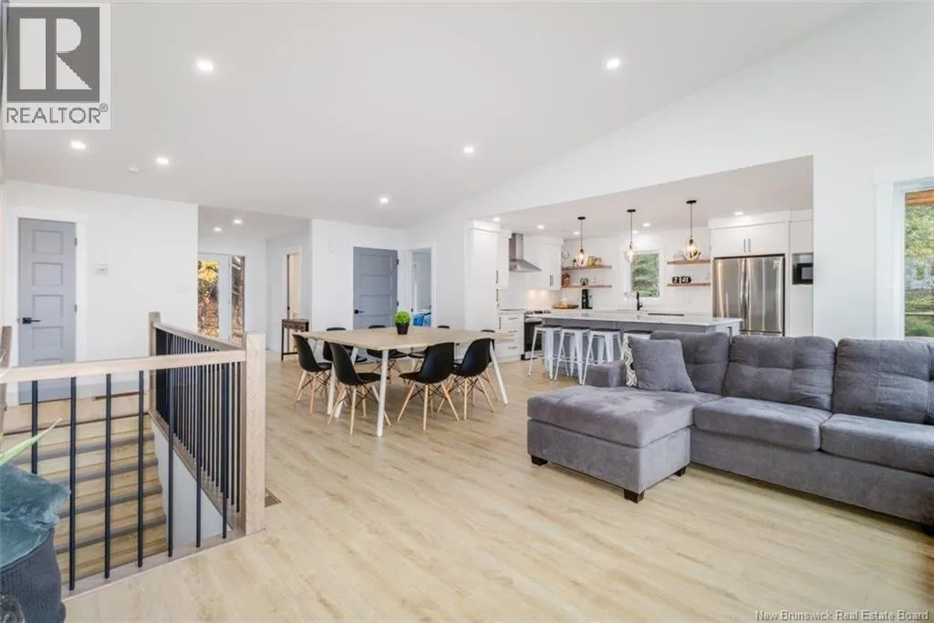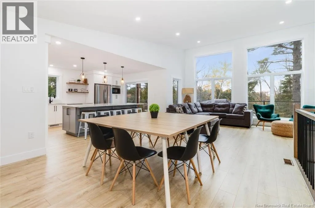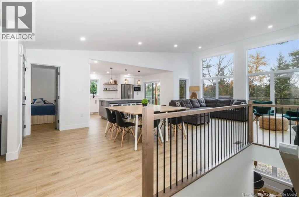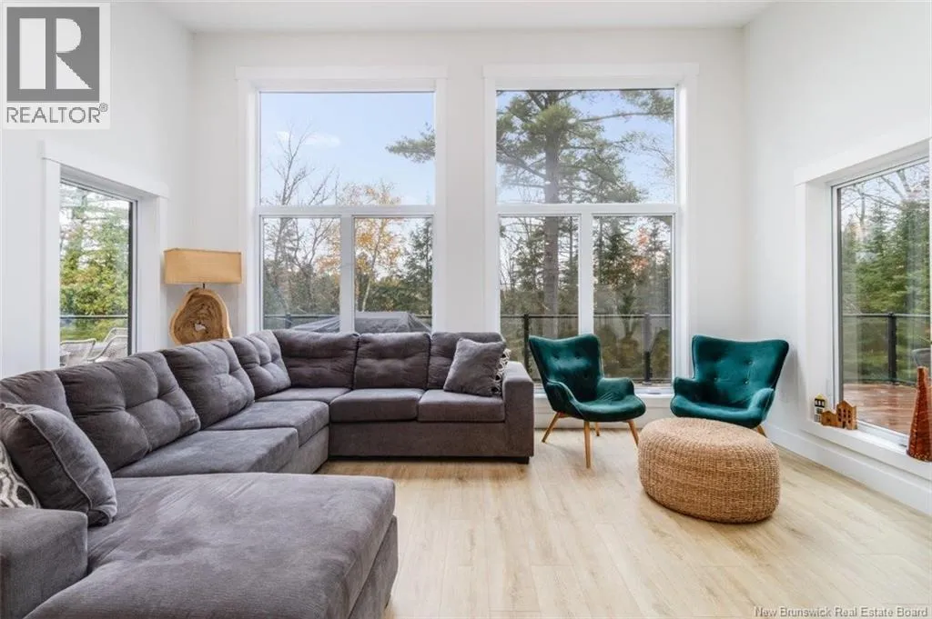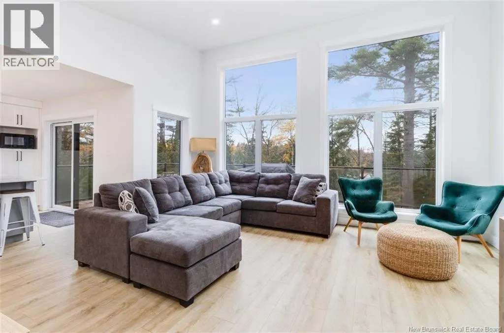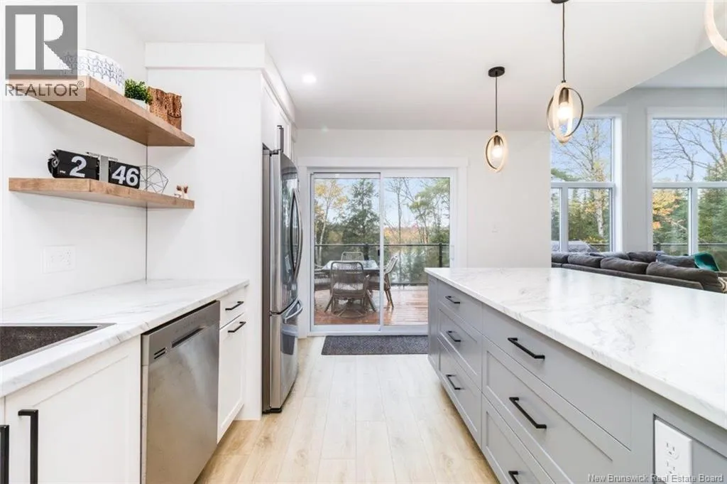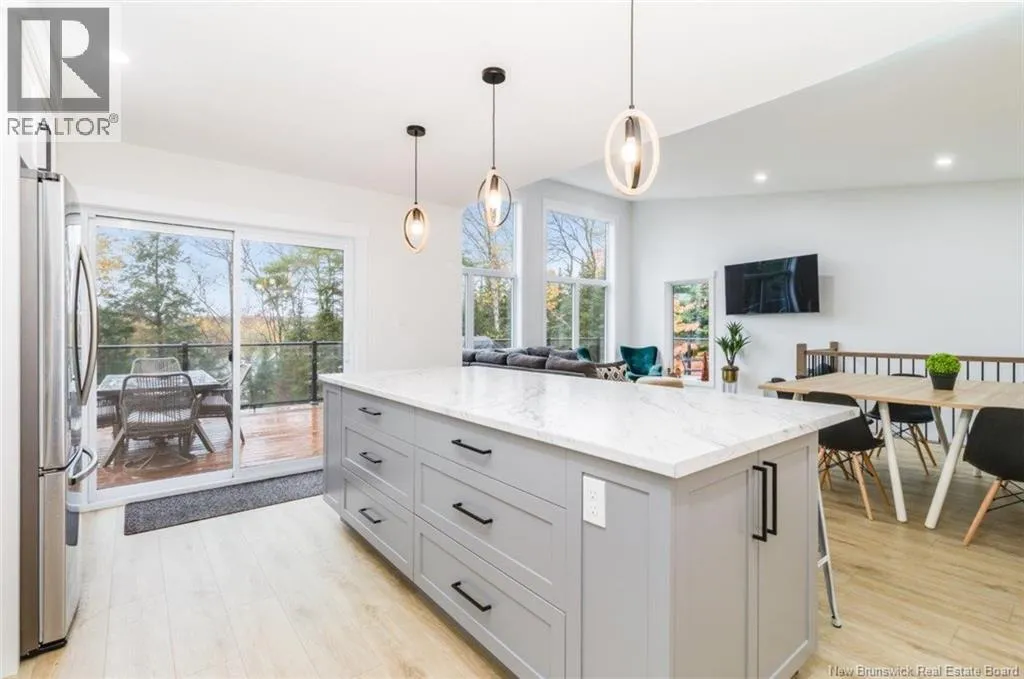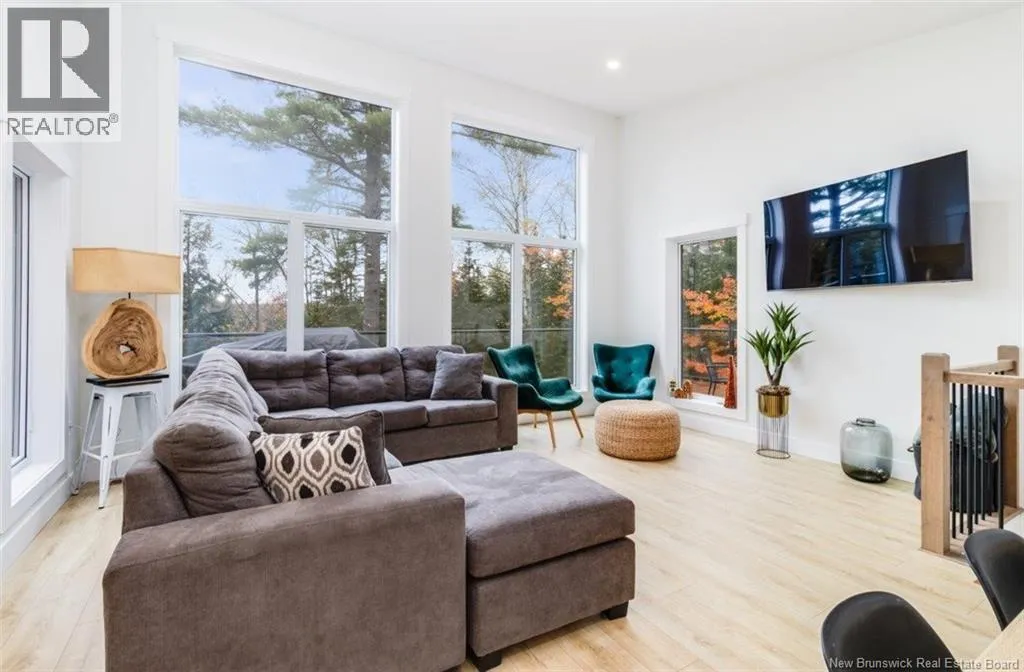 Route 102, right on Settler's Cove Lane, left on Loyalist Lane Welcome to this stunning waterfront chalet on the Head Pond/St. John River, quality-built in 2022 by Reagon overlooking beautiful Jewetts Cove. Designed for both comfort and style, this home features soaring vaulted ceilings & a bright open-concept layout that seamlessly connects the kitchen, dining and living areas. The spacious entryway offers privacy upon arrival, complete with a half bath & coat closet. The kitchen is a showpiece with light cabinetry by Heritage Mill works, a large island, two pantries, stainless steel appliances & patio doors leading to a large deck with glass inserts to enjoy the breathtaking water views. The main floor includes 3 generous bedrooms & a full bath with tub/shower combo, vanity & toilet. The fully finished lower level features 2 walkouts, floor to ceiling windows on the River side, a large family room, cozy sitting area, 4 additional bedrooms, one with walkout access in the primary suite with walk-in closet & full ensuite bath with shower. A second full bath offers a vanity with storage tower, toilet and tub/shower enclosure. The spacious utility room includes a central heat pump with A/C, washer, dryer, generator panel& ample storage. With 7 bedrooms and 3.5 baths, this property is an exceptional opportunity, ideal as a year-round family home, multi-family retreat, or high-income Airbnb investment, offering over 2,600 sq. ft. of beautifully finished living space right on the water. This is the opportunity that you have been waiting for. (id:27476)