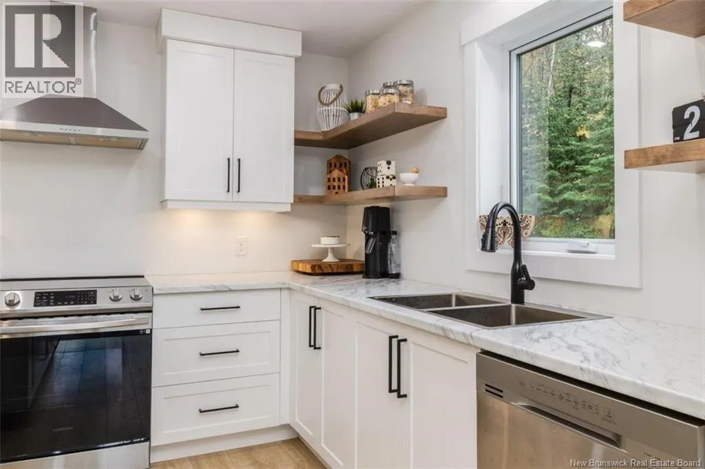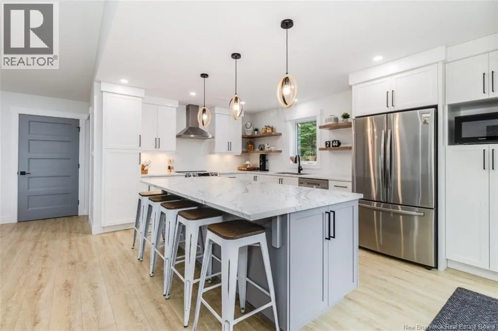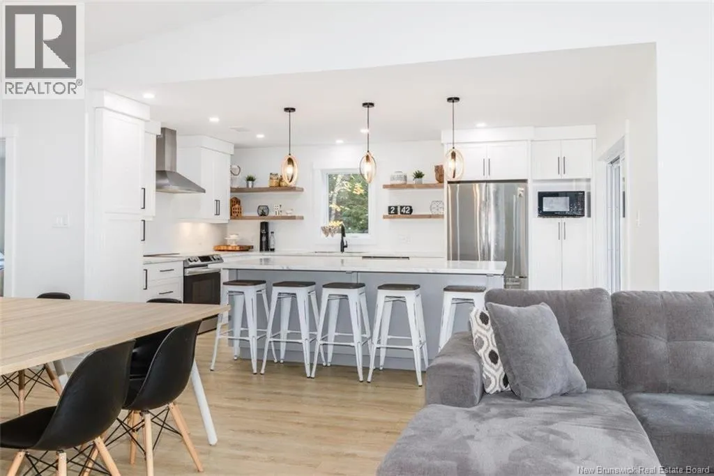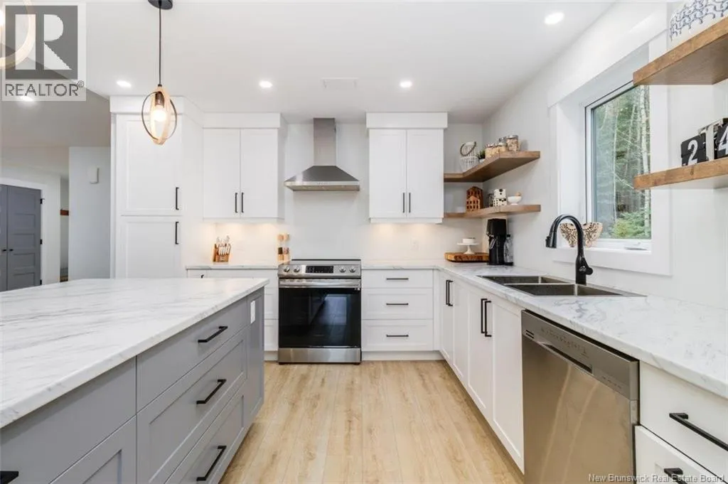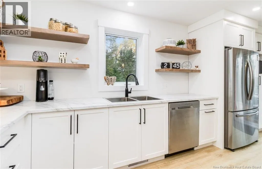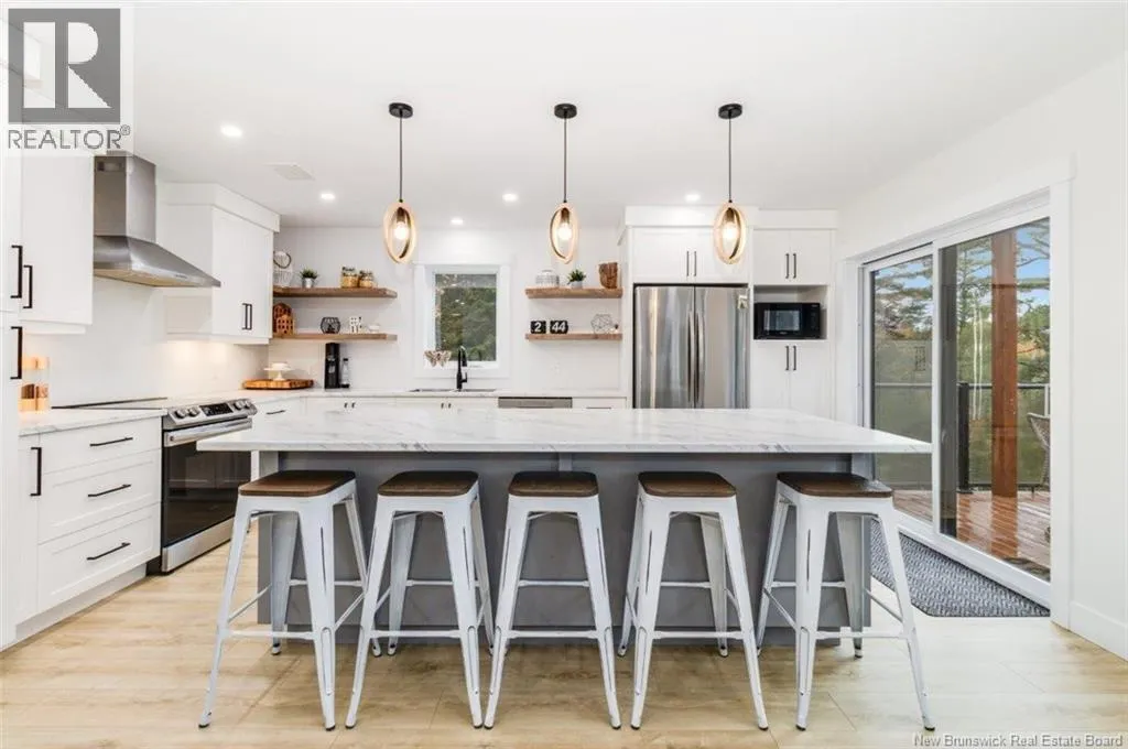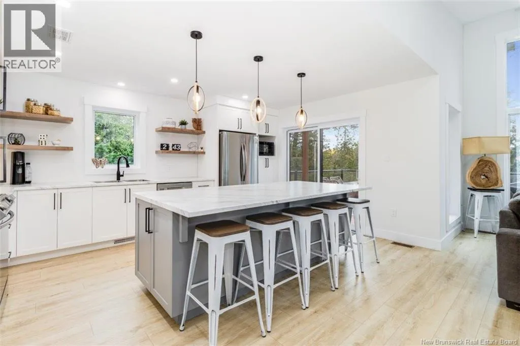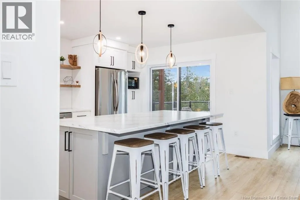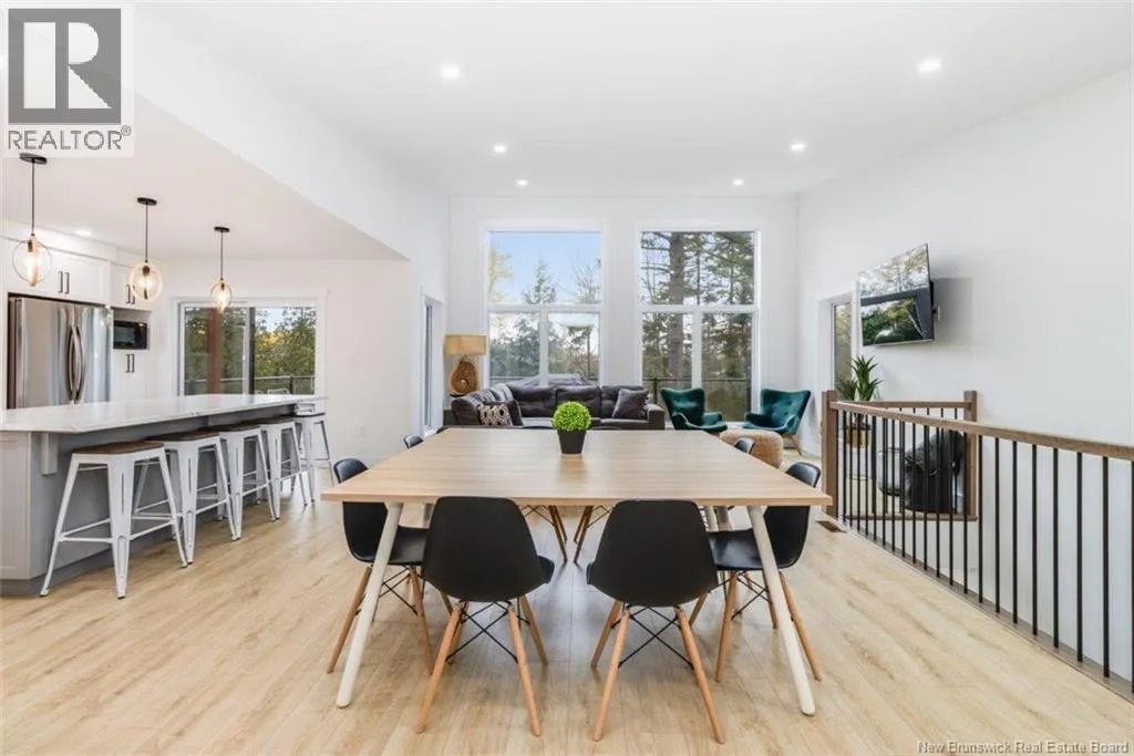 Route 102, right on Settler's Cove Lane, left on Loyalist Lane Welcome to this stunning waterfront chalet on the Head Pond/St. John River, quality-built in 2022 by Reagon overlooking beautiful Jewetts Cove. Designed for both comfort and style, this home features soaring vaulted ceilings & a bright open-concept layout that seamlessly connects the kitchen, dining and living areas. The spacious entryway offers privacy upon arrival, complete with a half bath & coat closet. The kitchen is a showpiece with light cabinetry by Heritage Mill works, a large island, two pantries, stainless steel appliances & patio doors leading to a large deck with glass inserts to enjoy the breathtaking water views. The main floor includes 3 generous bedrooms & a full bath with tub/shower combo, vanity & toilet. The fully finished lower level features 2 walkouts, floor to ceiling windows on the River side, a large family room, cozy sitting area, 4 additional bedrooms, one with walkout access in the primary suite with walk-in closet & full ensuite bath with shower. A second full bath offers a vanity with storage tower, toilet and tub/shower enclosure. The spacious utility room includes a central heat pump with A/C, washer, dryer, generator panel& ample storage. With 7 bedrooms and 3.5 baths, this property is an exceptional opportunity, ideal as a year-round family home, multi-family retreat, or high-income Airbnb investment, offering over 2,600 sq. ft. of beautifully finished living space right on the water. This is the opportunity that you have been waiting for. (id:27476)