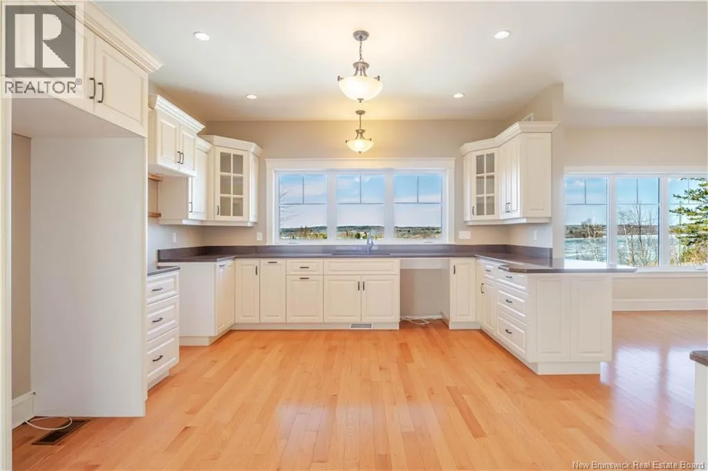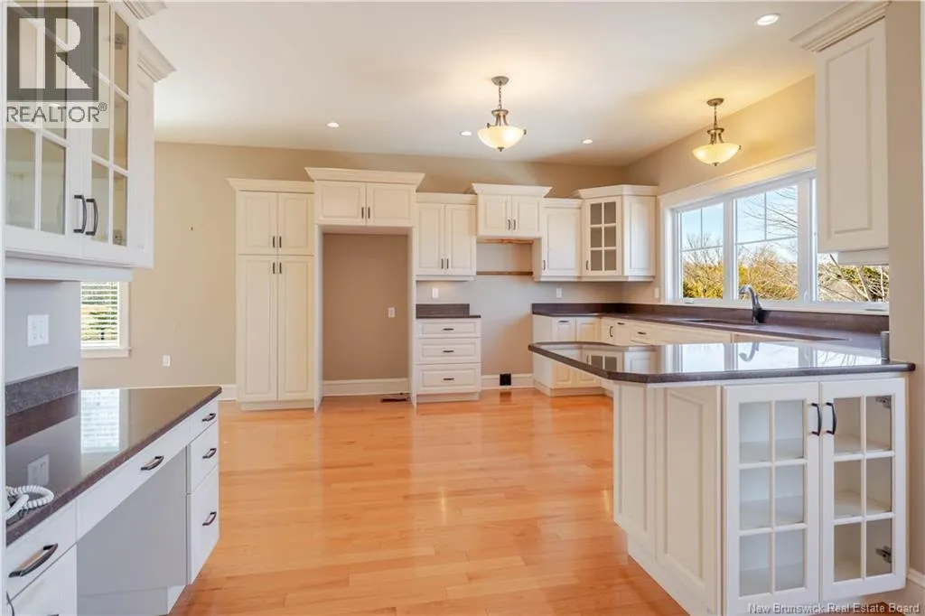 Take TCH West to Exit 258 or Hwy 102 West to Longs Creek Road, Exit to Headland Road on your right to civic #20 Welcome to the Headlands at Longs Creek. Ideally located only 20 minutes from Fredericton, this subdivision of executive houses features breathtaking water views and boat launch only steps away. This custom-built home situated on a beautifully landscaped 1.4 acre lot with additional 24 x 16 detached garage. Enter through bright front foyer with closet. Main level has 9-foot ceilings with open concept main living area. Kitchen features lots of cream lacquer cabinets, granite counter tops, roll out pantry, and water views. Family room has patio doors to back South facing deck. Large dining area to spacious living room with propane fireplace and patio doors to side deck. Master suite has tray ceiling, patio doors to side deck, and luxurious ensuite with air tub, double sinks and walk-in shower. Second bedroom and full bath complete this level. Lower-level features large rec room with propane fireplace, third bedroom, laundry room, and full bath with shower. Includes whole home generator to make power outages a thing of the past. Subdivision covenants in place to protect property values. Streets are maintained by the provincial government, as opposed to private road association. Seller is willing to consider vendor financing with a moderate down-payment for credit worthy purchases. (id:27476)