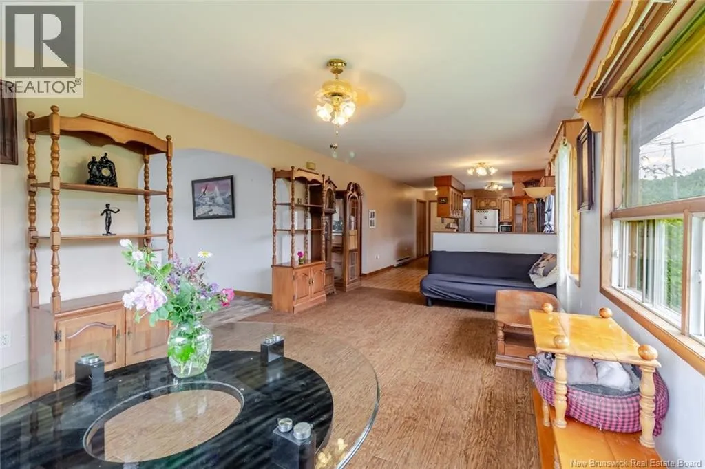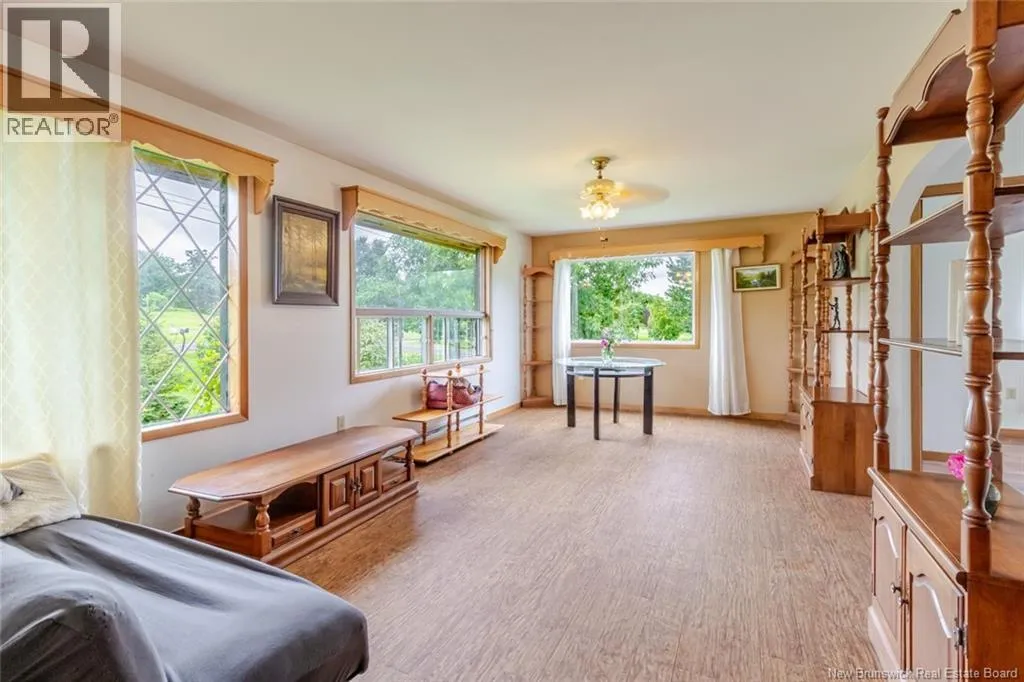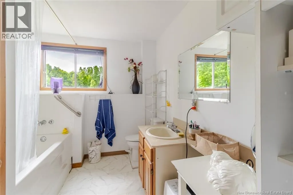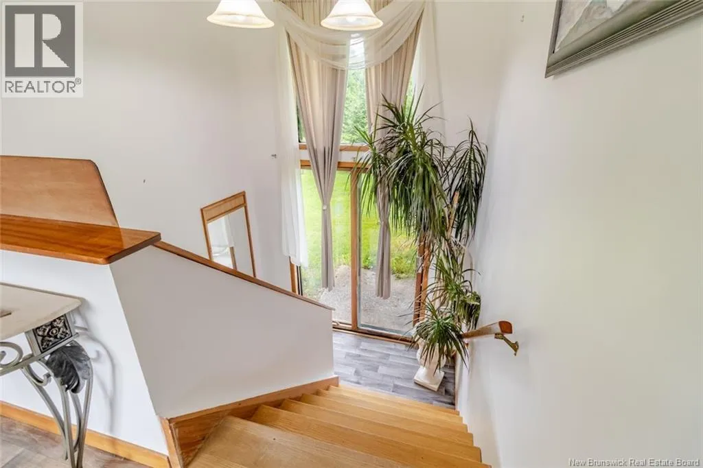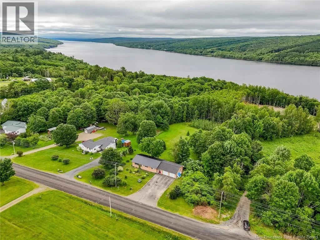 From North Side - Take Ring Road to Rte 105 through Keswick, go right at the dam intersection and proceed through Mactaquac to Upper Queensbury to civic #4345. From South Side - Take TCH to exit 231, Nackawick, then turn right though Nackawic to civic #4345 Spacious and Bright bungalow with double garage! Beautiful acre lot with fruit trees, berries and lots of perennials. Backyard has great space for gardens and/or pool and swing sets. Garage is separated from home by fabulous mudroom with lots of space for coats and boots and access to back deck. Large kitchen with huge island and tons of cabinetry. Open concept with dining space and big living room. Amazing natural light with large picture windows on two walls. Spacious primary bedroom with large windows over looking backyard and double closets. Full main bath and main level laundry. Smaller second bedroom again with beautiful light. Stairs to lower level with vaulted ceiling with back split entry offering more natural light and easy access to backyard. Lower level has large window in all rooms. Lots of potential for additional family living with a family room that has a pellet stove, a large 3rd bedroom and two dens or office space that could be bedrooms, if needed. Full bath and storage space complete this level. Could make a nice apartment also with the accessible back entrance and large windows and layout. Various updates over past few years including flooring, metal roof, some windows, insulation, updates to bathroom and plumbing, fruit trees and landscaping. Lovely package with lots of potential to make your own. (id:27476)