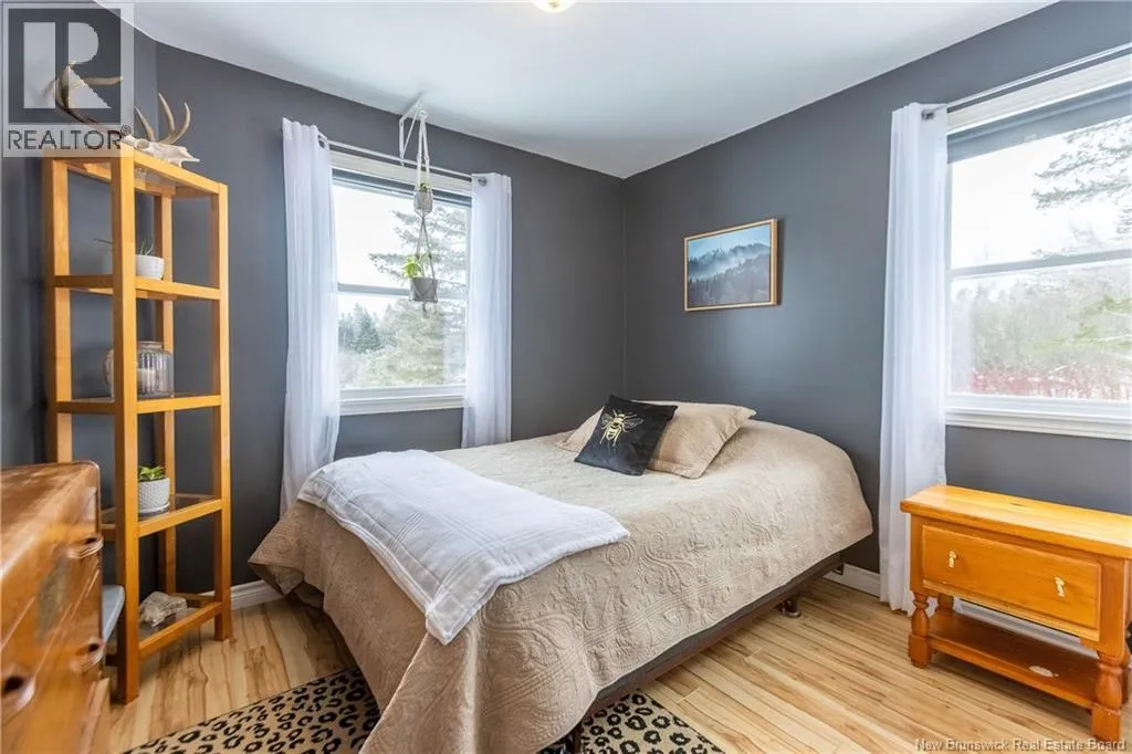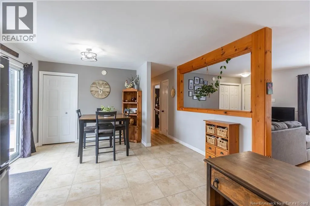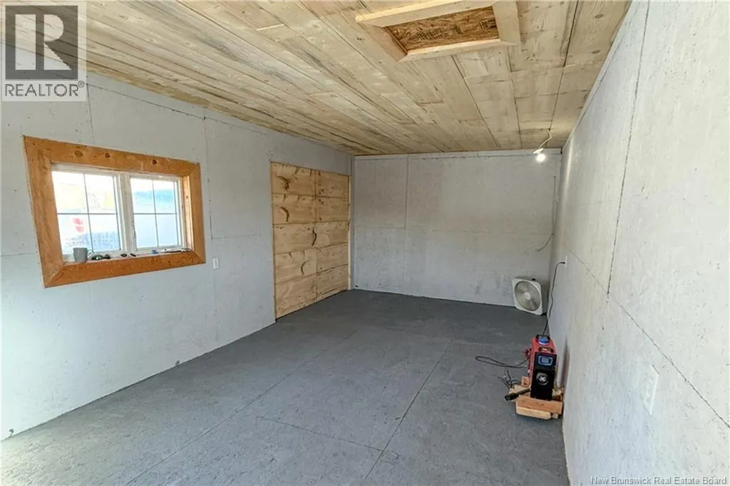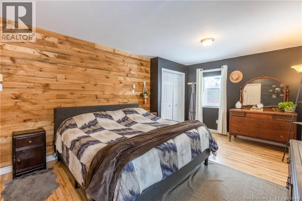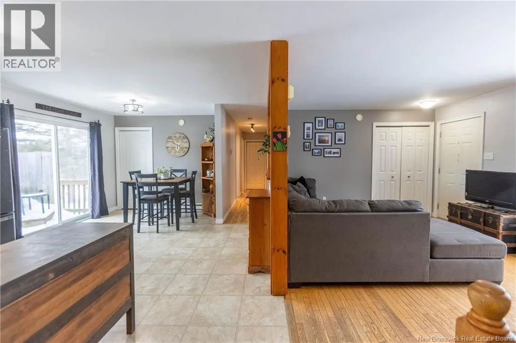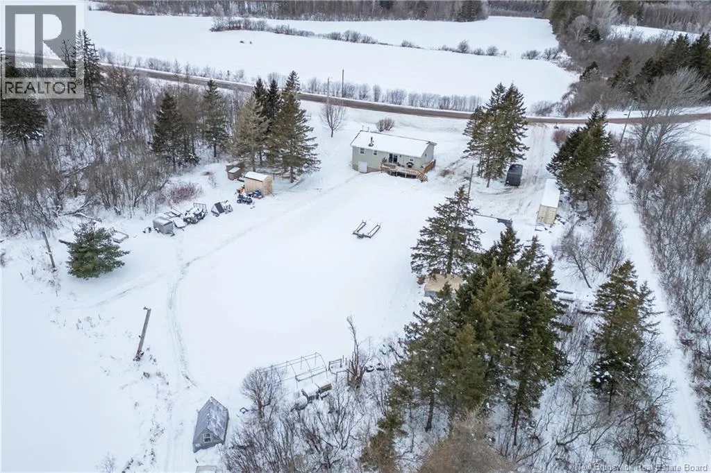 From downtown Sackville head North on Main, continue straight onto Pond Shore, left onto Upper Aboujagane. BUNGALOW TUCKED INTO A PRIVATE 1-ACRE LOT JUST OUTSIDE OF TOWN LIMITS! This home features an open-concept main floor with a spacious living room with hardwood flooring, a bright kitchen with room for a peninsula/island, and a dining area with pantry closet and patio doors to the back deck. The primary bedroom is spacious, and could easily be converted back to two bedrooms, with two closets. There is a great-sized guest bedroom, and a full 4pc bathroom with linen closet. The basement is finished with a rec room - complete with wood stove and even a bar! This level also has an office, half bathroom with laundry, and access to the 12'5x24 garage that opens into the backyard. There is a detached wired shed perfect for workshop, as well as chicken coop. The backyard overlooks a neighbouring pond, and is surrounded by trees. Updates to the home include: metal roof (back in 2024, front in 2025), pressure tank and well pump (2021), shed (2017). Home also has a hot tub which can be included in the sale as well. Just minutes to downtown Sackville, 20 minutes to Amherst, and 35 minutes to Moncton. Outside of town limits so the taxes are significantly lower. (id:27476)