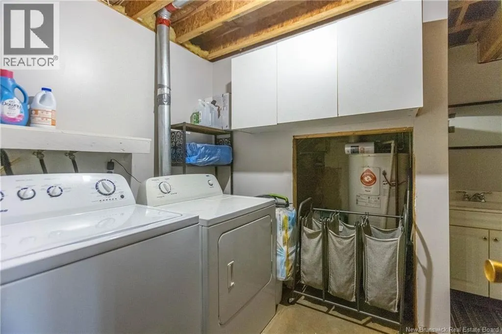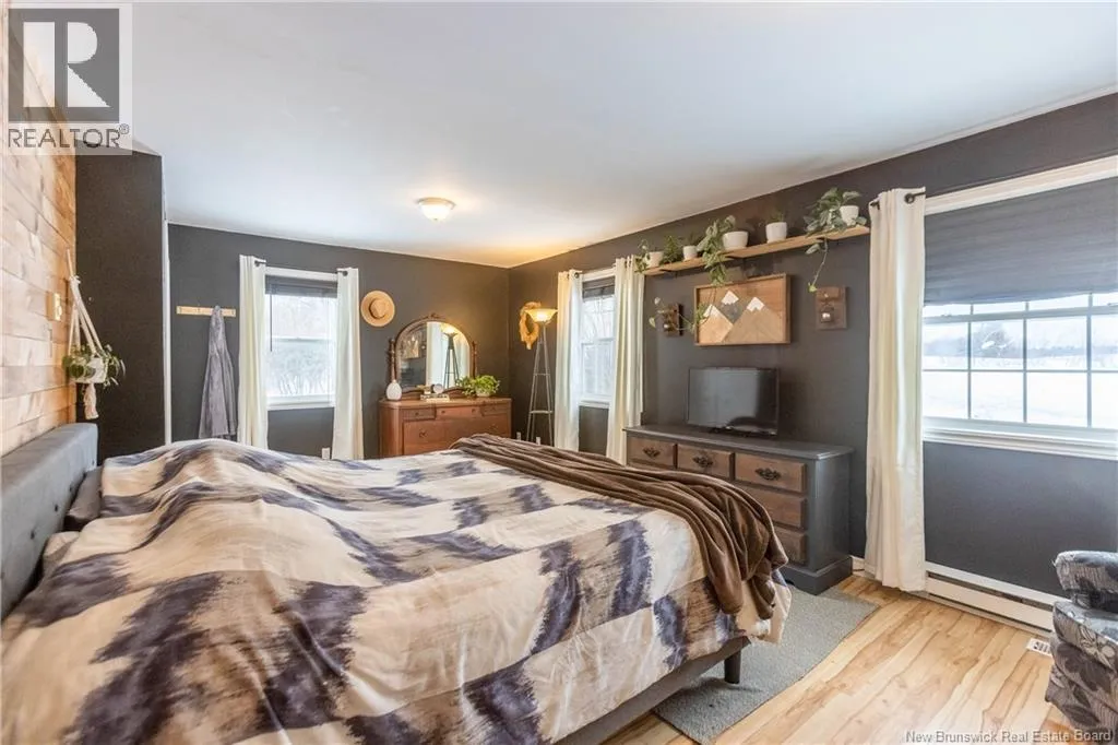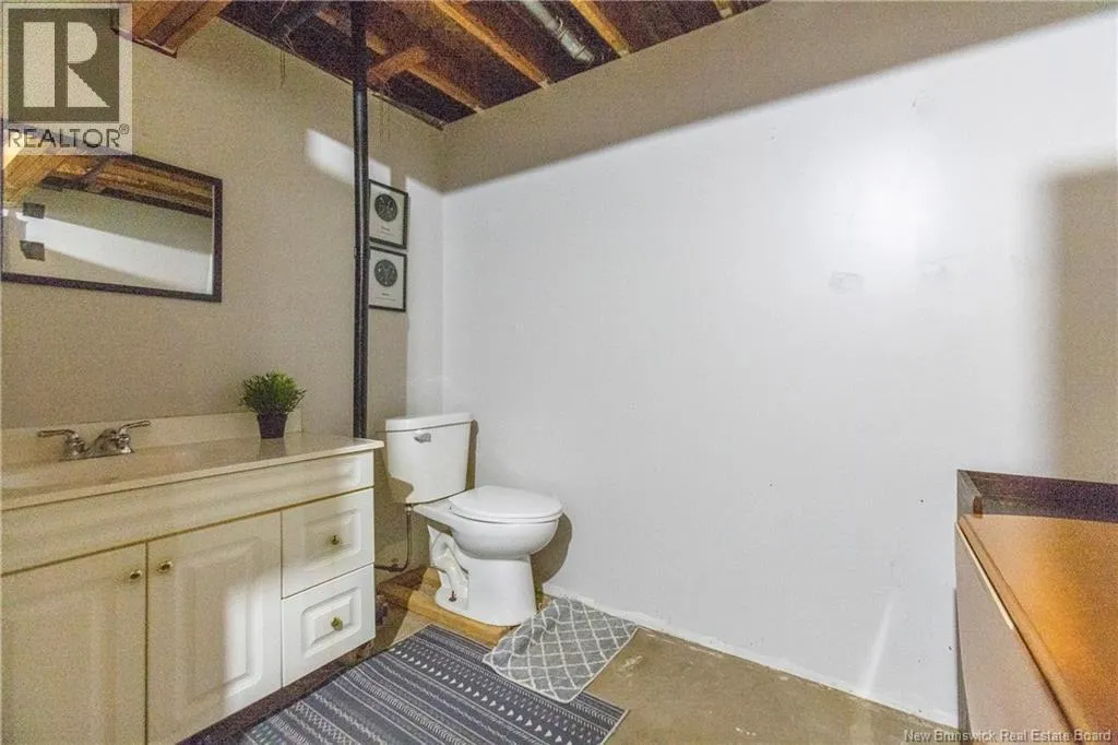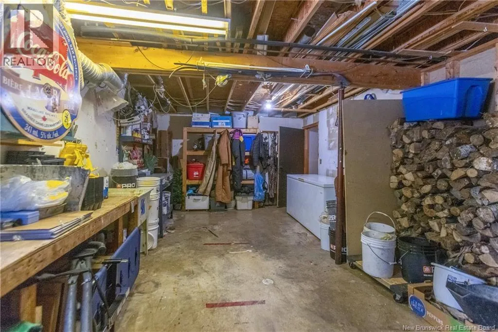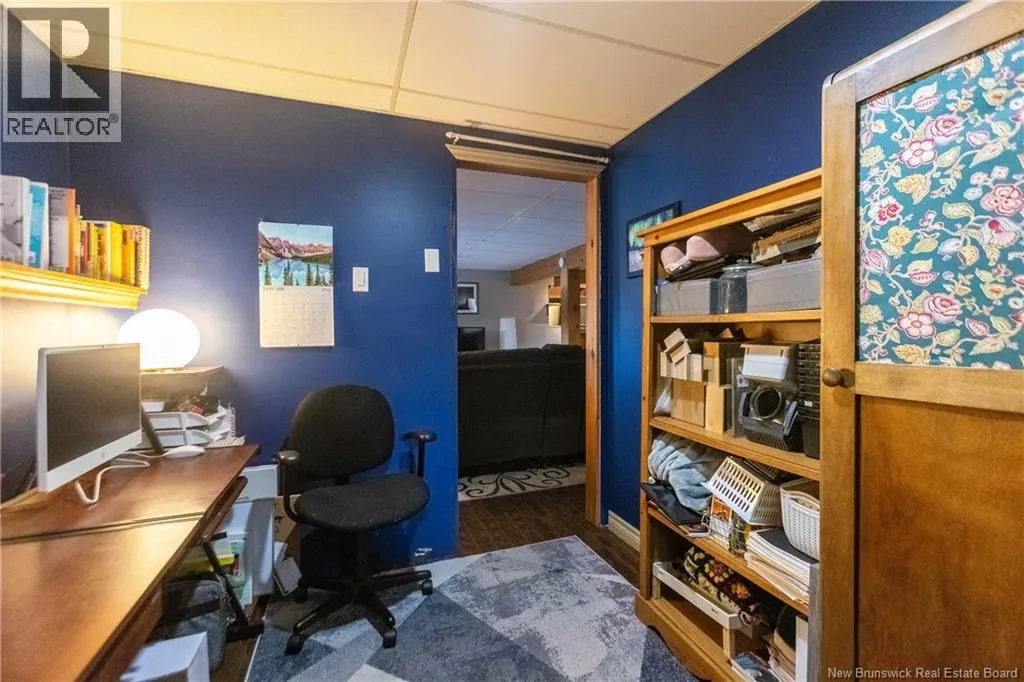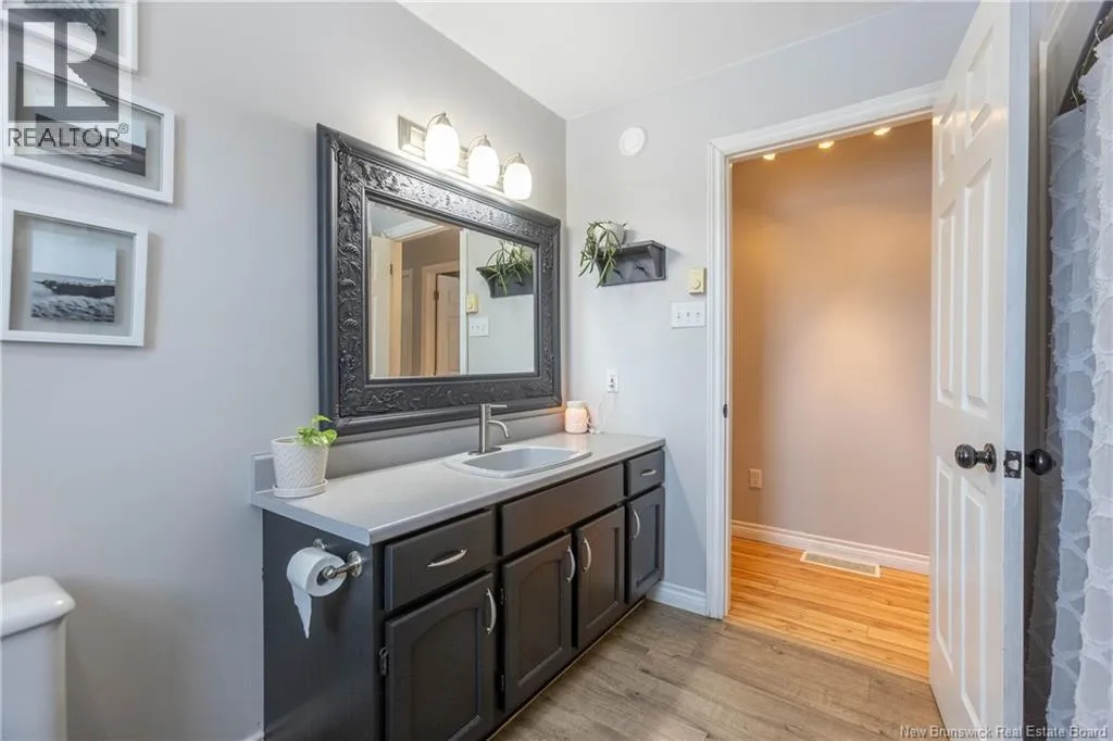 From downtown Sackville head North on Main, continue straight onto Pond Shore, left onto Upper Aboujagane. BUNGALOW TUCKED INTO A PRIVATE 1-ACRE LOT JUST OUTSIDE OF TOWN LIMITS! This home features an open-concept main floor with a spacious living room with hardwood flooring, a bright kitchen with room for a peninsula/island, and a dining area with pantry closet and patio doors to the back deck. The primary bedroom is spacious, and could easily be converted back to two bedrooms, with two closets. There is a great-sized guest bedroom, and a full 4pc bathroom with linen closet. The basement is finished with a rec room - complete with wood stove and even a bar! This level also has an office, half bathroom with laundry, and access to the 12'5x24 garage that opens into the backyard. There is a detached wired shed perfect for workshop, as well as chicken coop. The backyard overlooks a neighbouring pond, and is surrounded by trees. Updates to the home include: metal roof (back in 2024, front in 2025), pressure tank and well pump (2021), shed (2017). Home also has a hot tub which can be included in the sale as well. Just minutes to downtown Sackville, 20 minutes to Amherst, and 35 minutes to Moncton. Outside of town limits so the taxes are significantly lower. (id:27476)