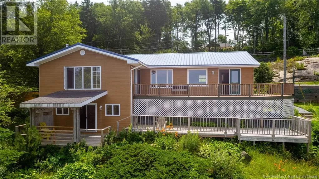 From Highway 785 Heading towards lake Utopia, turn left onto Mainline Keep right onto Woodbury, 1st right Eel Cove Road. St. George (pop: 1,575), in the southwest corner of New Brunswick, is located off Route 1 between St. Stephen and Saint John, just a 30 minute drive east from the border crossing between St. Stephen, New Brunswick and Calais, Maine and a 40 minute drive from Saint John. Welcome to your peaceful escape on the shores of beautiful Lake Utopia. This well-maintained 3-bedroom, 1.5-bath home offers year-round access on a private road with no through traffic, just minutes from the town of St. George. Step inside to discover panoramic lake views from the open-concept kitchen, dining, and living area the perfect space for relaxing or entertaining. The primary bedroom features its own patio access and serene water views, making every morning feel like a retreat. The walkout lower level includes a spacious family room with a cozy wood stove, ideal for cooler evenings, along with utility and storage areas. The large, two-level deck is perfect for enjoying the outdoors, entertaining guests, or taking in the sunset over the water. Whether you're hosting, or enjoying a quiet evening under the stars, the outdoor living space is designed for comfort and connection. Beautifully landscaped with gardens and requires no lawn maintenance, offering the beauty of nature without the upkeep. In the warmer months, enjoy solar-heated hot water for added energy efficiency. Lake Utopia is perfect for swimming, kayaking, boating, and jet skiing, offering endless recreation right at your doorstep. As a bonus, an extra parcel of land is included in the sale, giving you the opportunity to expand your personal paradise, build a guest cabin, or simply enjoy additional privacy. This is lakeside living at its bestrelaxation, adventure, and natural beauty all in one. (id:27476)