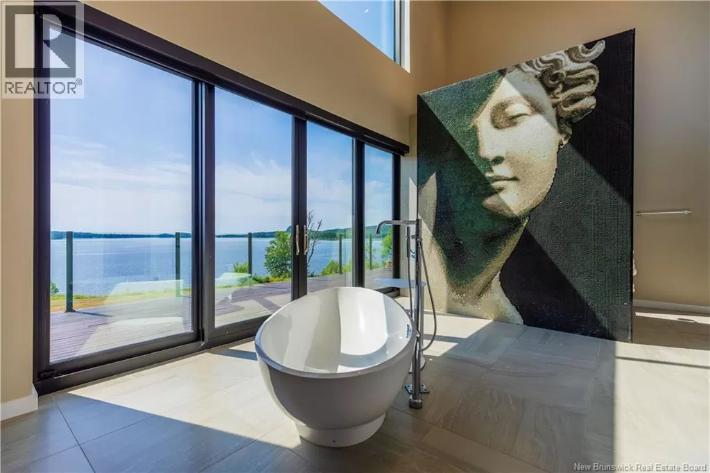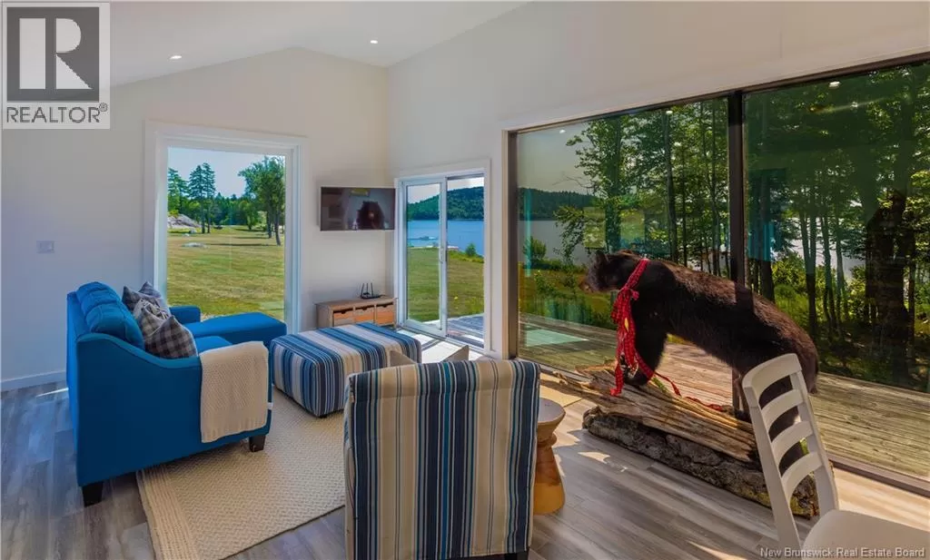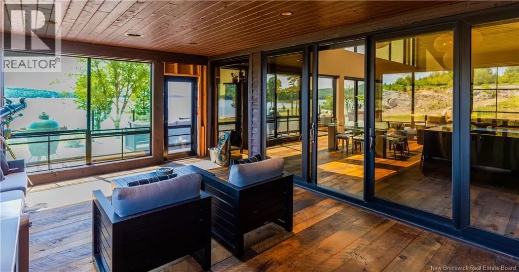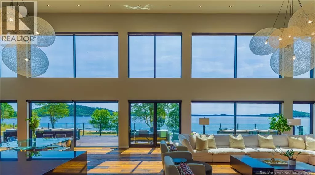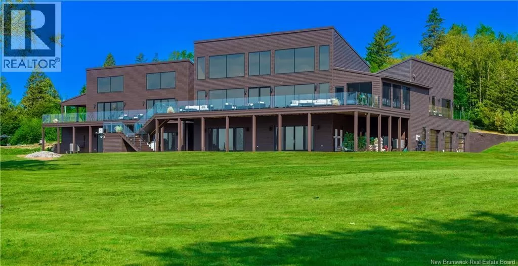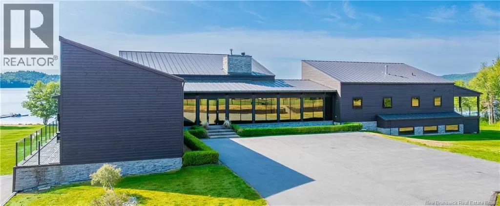 From Saint John, take Route 1 West toward Saint George, exit at Route 785, and drive north about 14 km to reach 1195 Route 785, Utopia. This 30+ acres masterpiece lakefront estate rests on the pristine shores of Lake Utopia, NBs second-largest lake, showcasing over 1,400 feet of sandy beach frontage within a private, gated community. The main house with just under 8000 sqft, features expansive glass walls that capture sweeping lake views with south-facing sunsets, while sleek modern architecture harmonizes effortlessly with the surrounding natural beauty. The exceptional property includes a stunning main residence plus a two-bedroom guest home, offering a total of 8 bedrooms and 7.5 baths, designed for ultimate luxury, privacy, and resort-style living. The main residence boasts a dramatic primary suite with a custom shower/central tub and spa-inspired finishes, a gourmet kitchen with stone counters, premium appliances, and an adjoining covered outdoor kitchen for year-round entertaining. Two world-class amenities include a saltwater infinity pool, hot tub, water park-sized slides, tournament-grade tennis court, and an oversized three-car garage. The lower level presents a spacious entertainment room, kitchenette, and guest quarters, perfect for multi-generational living. This is truly one of New Brunswicks most spectacular lakefront estates, offering an unparalleled combination of elegance, recreation, and breathtaking panoramic beauty. This property may also be purchased with adjoining parcels, MLS® NB124970 and MLS® NB125163/125165, offering an exceptional opportunity to expand ownership. (id:27476)