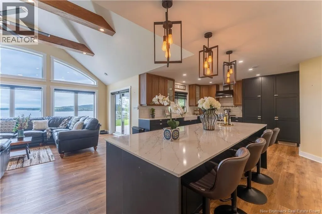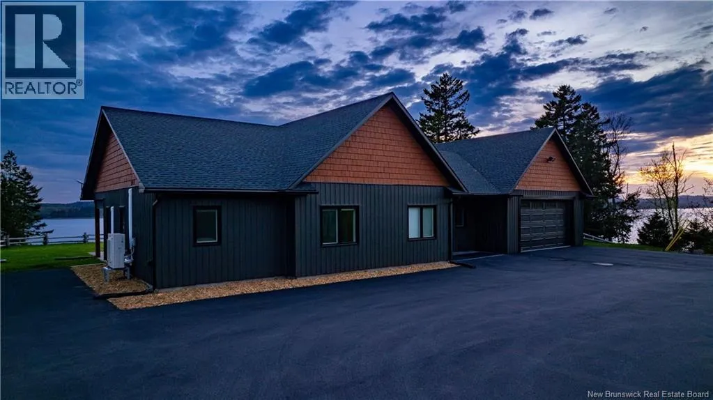 Take Route 785 to Bluff Road Welcome to your turn-key waterfront escape on the breathtaking shores of Lake Utopia. Built in 2023, this stunning 3-bedroom, 2-bath home is designed for comfort, style, and ease with single-level living. Inside, enjoy heated slab floors, quartz countertops, an on-demand hot water system, and premium vinyl flooring thats both durable and stylish. Large windows frame stunning 180-degree views of the lake, making every moment at home feel special. Outside, youll have deeded access to a gorgeous sandy beach and private boat launch, perfect for swimming, boating, fishing, or just soaking up the sun. Lake Utopia is known for its clean, calm waters, legendary local lore, and warm, welcoming community. Whether you're casting a line at dawn, kayaking at sunset, or sharing stories around a lakeside fire, life here is full of simple pleasures and unforgettable moments. This home offers the best of cottage country living with year-round comfort. Just minutes to all amenities in St. George and only 40 minutes to west side Saint John, its a rare blend of natural beauty and everyday convenience. Come experience why Lake Utopia is one of New Brunswicks best-kept secrets. (id:27476)