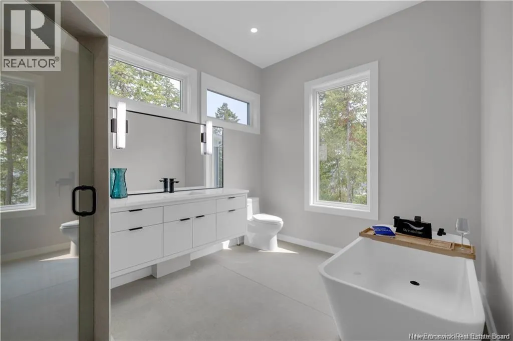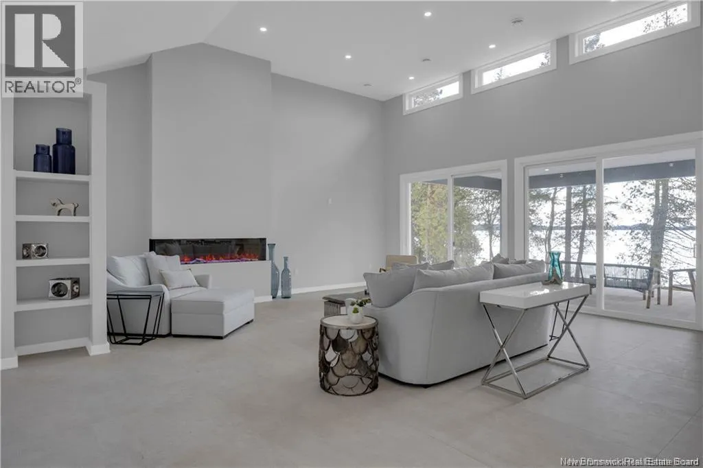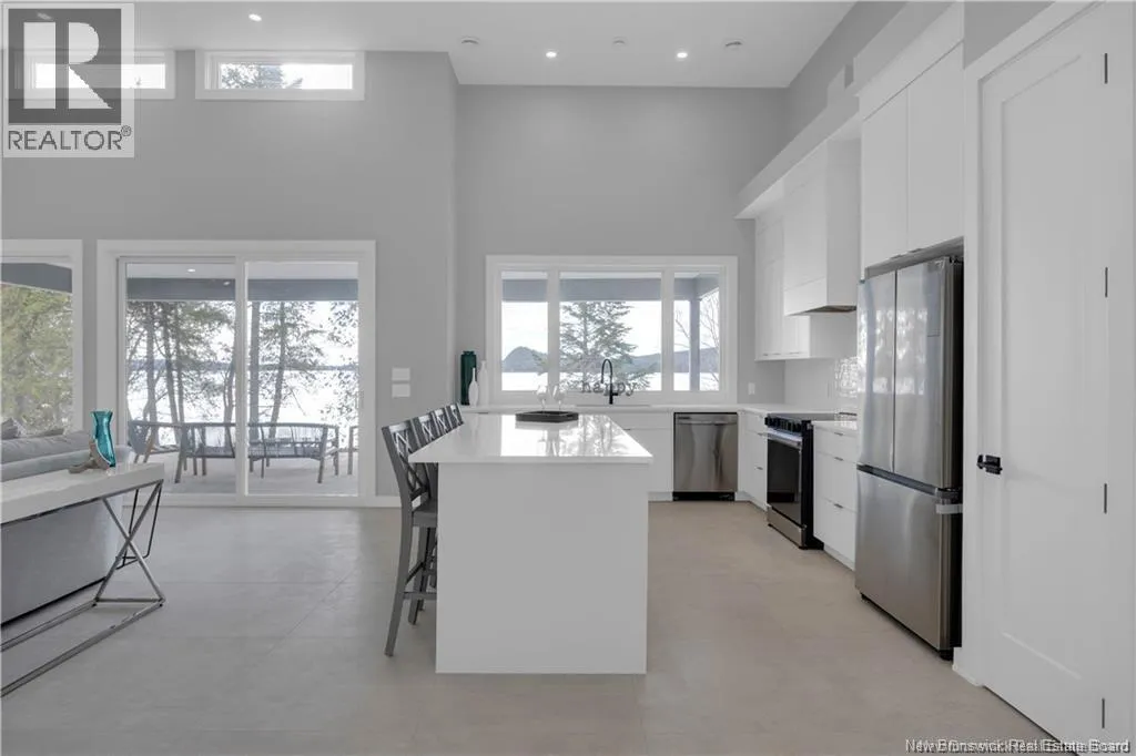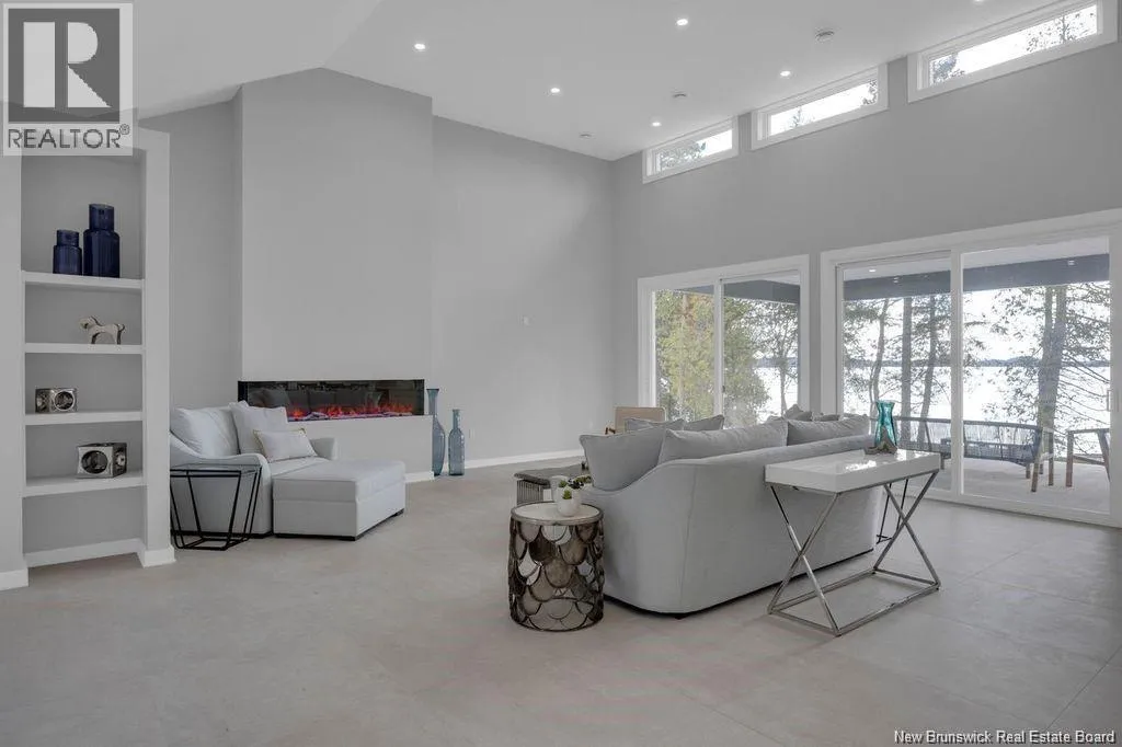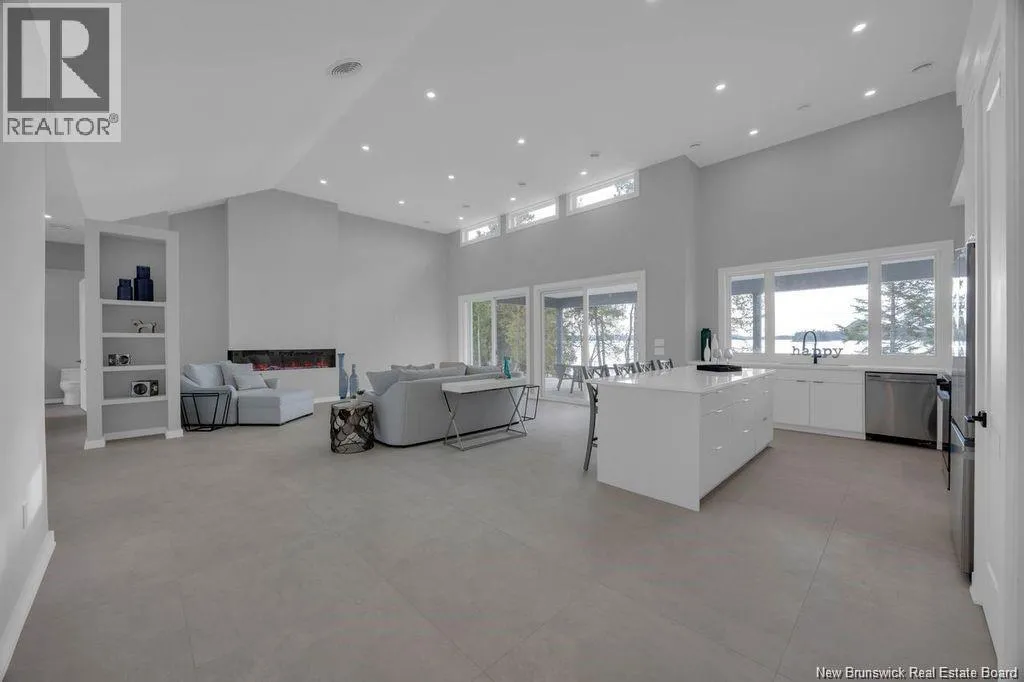 Route 785 is located off of Route 1. Discover this custom-built luxury bungalow in the exclusive gated community of Sandleigh Estates on beautiful Lake Utopia. Set on 2.42 landscaped acres with 233 ft of pristine waterfront, this newly built home offers exceptional privacy, comfort, and craftsmanship. Enjoy lakeside living with your own boat ramp, a peaceful stream, and breathtaking views from every angle. Built on an insulated concrete slab with energy-efficient materials, the home features Italian ceramic tile, custom woodwork, sound-proofed walls, a ducted heat pump, central vacuum, and a full water purification system. Inside, vaulted ceilings and expansive windows create a bright, open-concept living space. The gourmet kitchen includes quartz countertops, a large island, and brand-new appliances. The elegant living and dining area is highlighted by a beautiful Armenti fireplace, perfect for relaxing or entertaining. The spacious primary suite offers panoramic lake views, a spa-inspired ensuite with a glass-tiled shower, and a walk-in closet. Two additional bedrooms, a family bath, guest bath, full laundry room, and an oversized 2-car garage complete this thoughtfully designed home. Step outside to a covered patio ideal for outdoor dining and enjoying the natural surroundings. With luxury finishes throughout and nature at your doorstep, this property offers the perfect blend of elegance, tranquility, and lakefront living. (id:27476)