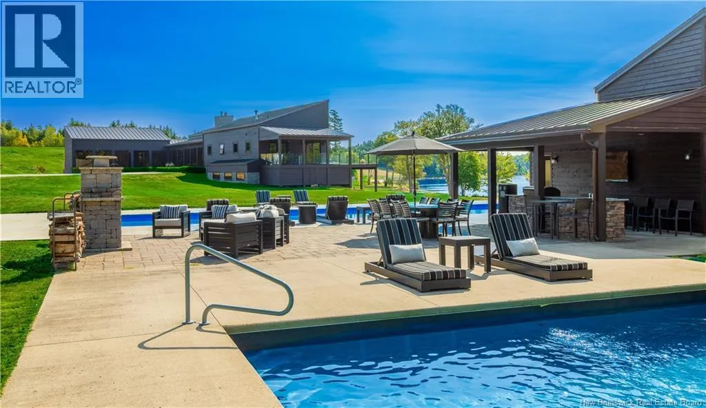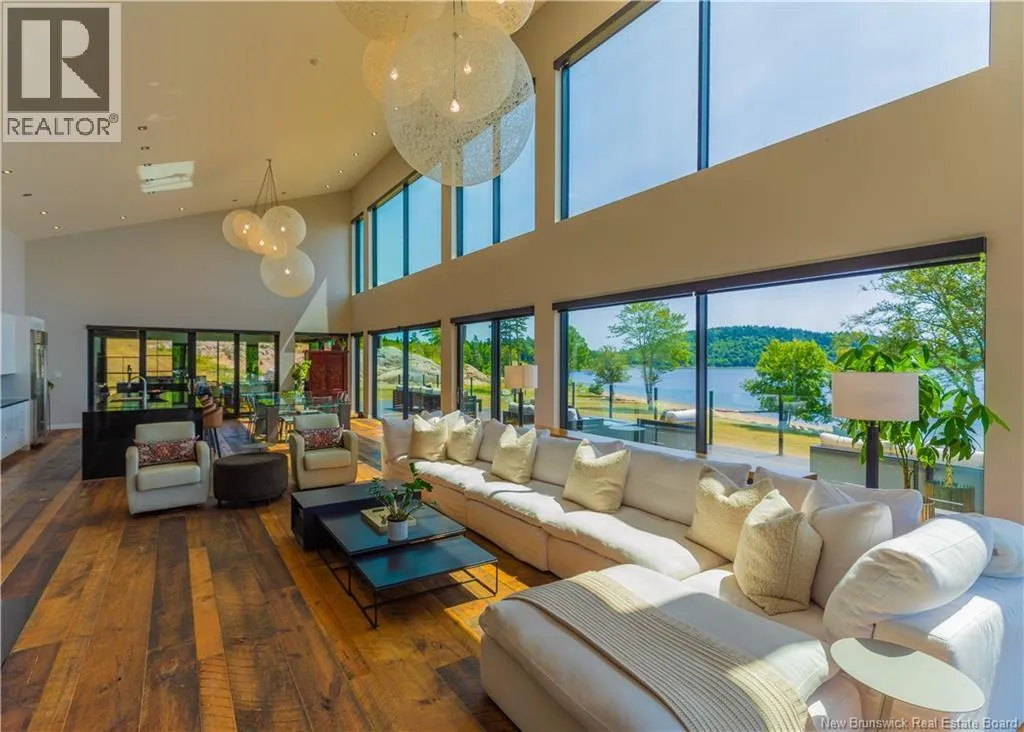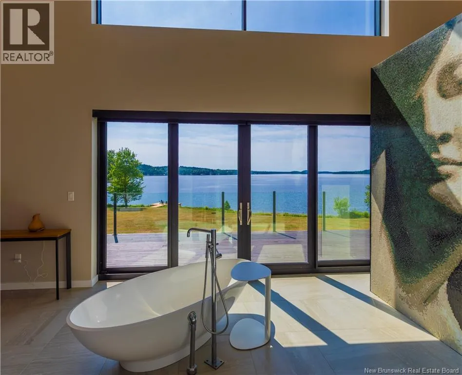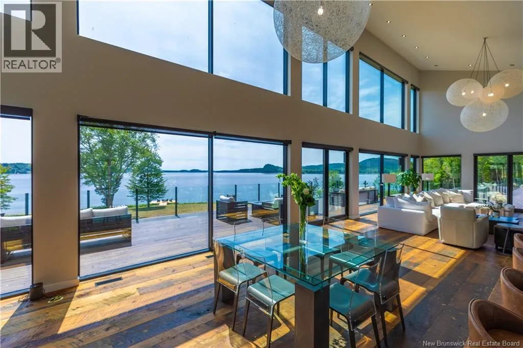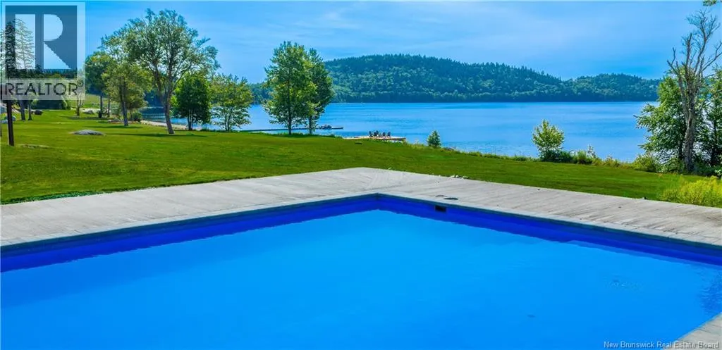 From Saint John, take Route 1 West toward Saint George, exit at Route 785, and drive north about 14 km to reach 1195 Route 785, Utopia. This 30+ acres masterpiece lakefront estate rests on the pristine shores of Lake Utopia, NBs second-largest lake, showcasing over 1,400 feet of sandy beach frontage within a private, gated community. The main house with just under 8000 sqft, features expansive glass walls that capture sweeping lake views with south-facing sunsets, while sleek modern architecture harmonizes effortlessly with the surrounding natural beauty. The exceptional property includes a stunning main residence plus a two-bedroom guest home, offering a total of 8 bedrooms and 7.5 baths, designed for ultimate luxury, privacy, and resort-style living. The main residence boasts a dramatic primary suite with a custom shower/central tub and spa-inspired finishes, a gourmet kitchen with stone counters, premium appliances, and an adjoining covered outdoor kitchen for year-round entertaining. Two world-class amenities include a saltwater infinity pool, hot tub, water park-sized slides, tournament-grade tennis court, and an oversized three-car garage. The lower level presents a spacious entertainment room, kitchenette, and guest quarters, perfect for multi-generational living. This is truly one of New Brunswicks most spectacular lakefront estates, offering an unparalleled combination of elegance, recreation, and breathtaking panoramic beauty. This property may also be purchased with adjoining parcels, MLS® NB124970 and MLS® NB125163/125165, offering an exceptional opportunity to expand ownership. (id:27476)