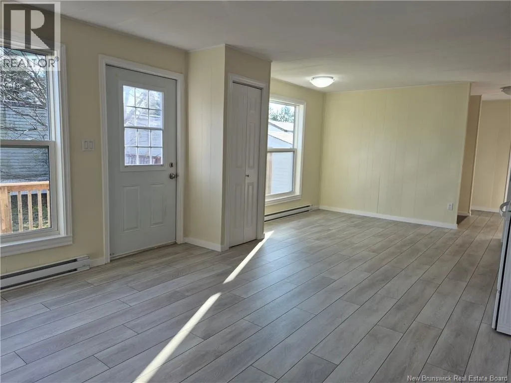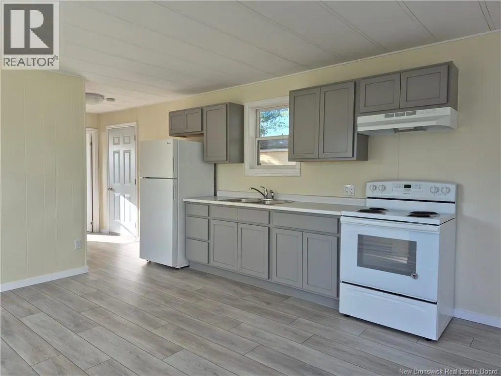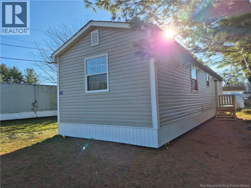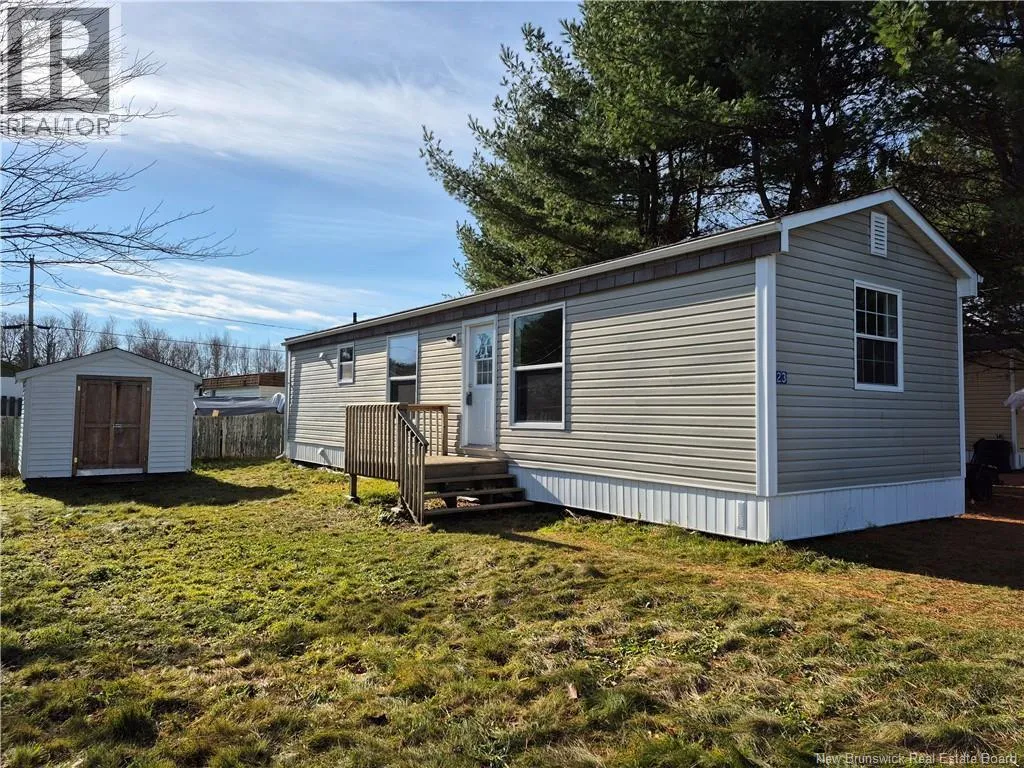 Nevers Road to Currie Crescent to #23. Move in before the Holidays! Cute & Cozy- 2 bedrooms,1 full bathroom on a leased lot. As you enter the home you are in the living room which is open to the kitchen. The kitchen has new cupboards, double stainless sink ,area to dine and a closet for your coats. There is a bedroom at each end of the home. Laundry area in the hall has cabinets above the hook up for the washer and dryer. In this area there is also a door to the back of the home ,where there is a new step. There is a storage shed 10 x 7 for your extra things. The home has been painted throughout and has new flooring. Great location with quick access to the highway, half way between Fredericton and Oromocto. Make is Atalntic,Reg#3832.Quick closing available! PID# is PAN#. (id:27476)