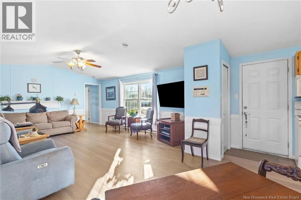 Trans Canada Exit 297 to Nevers Road/ Sign is up. Charming 1,120 sq. ft. mini home on leased land, ideally situated between Fredericton and Oromocto and close to all amenities. This bright and inviting home features an open-concept living room and kitchen, complete with patio doors leading to a spacious deckperfect for entertaining or enjoying peaceful outdoor time. A wheelchair ramp provides added accessibility and convenience. With 2 bedrooms and 2 full bathrooms, the layout offers excellent privacy, including a large primary bedroom with its own ensuite and walk-in closet. Recent updates offer peace of mind, including new metal roof (2023) and new baseboard heaters (2024). A well-kept, accessible, and conveniently located homemove-in ready and perfect for comfortable living. Leased lot fees will increase to $430 mth for new owners (id:27476)