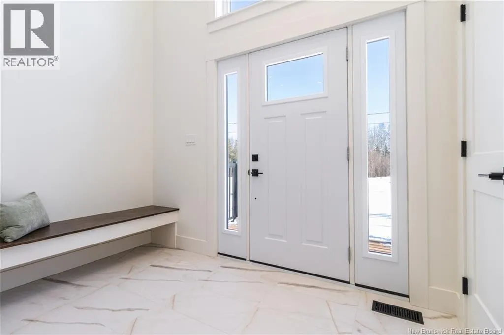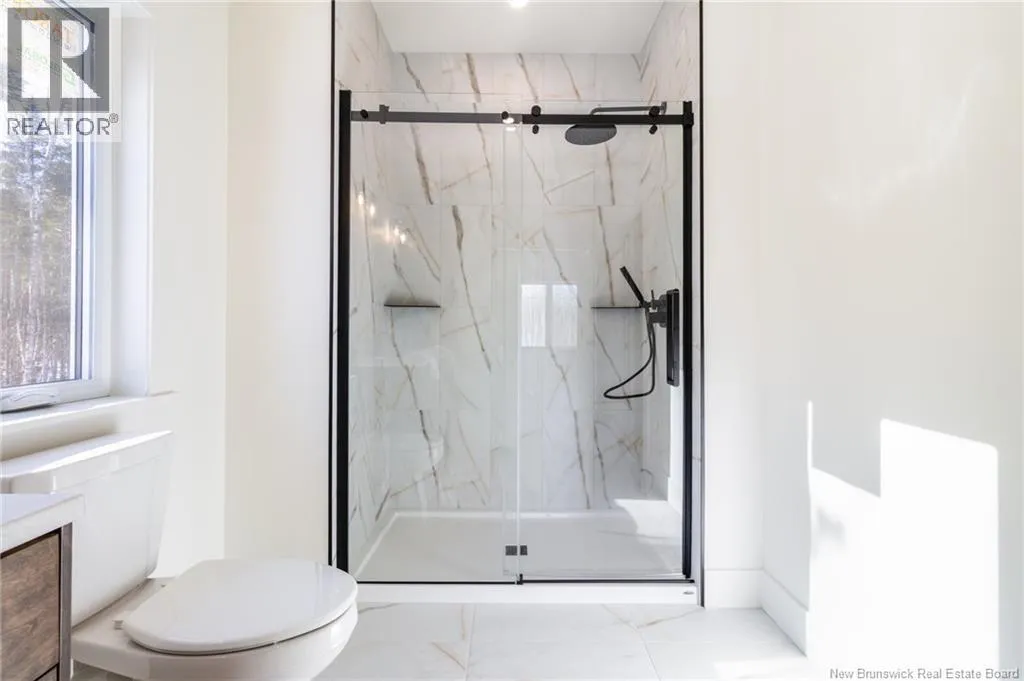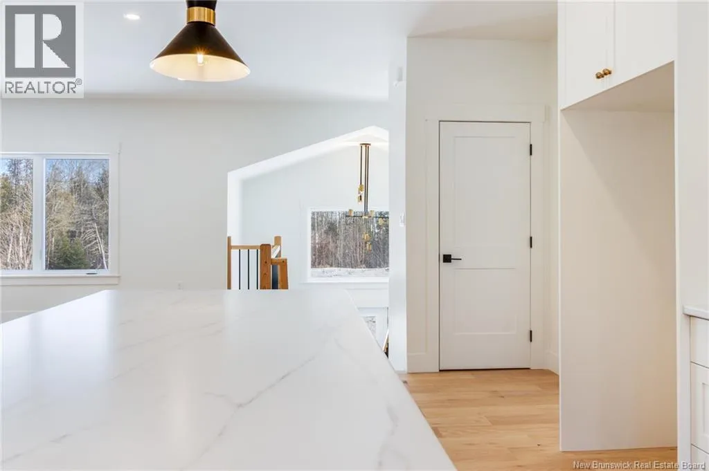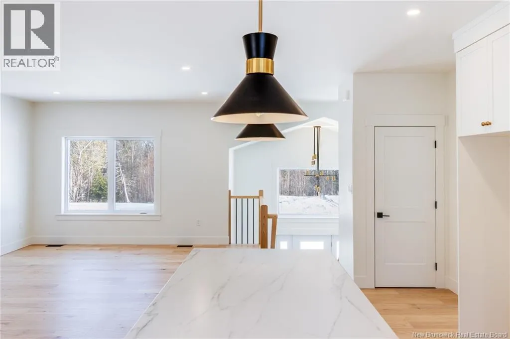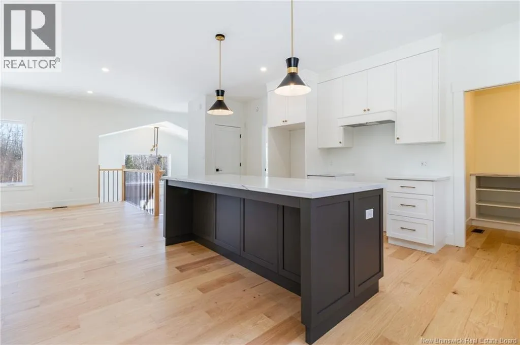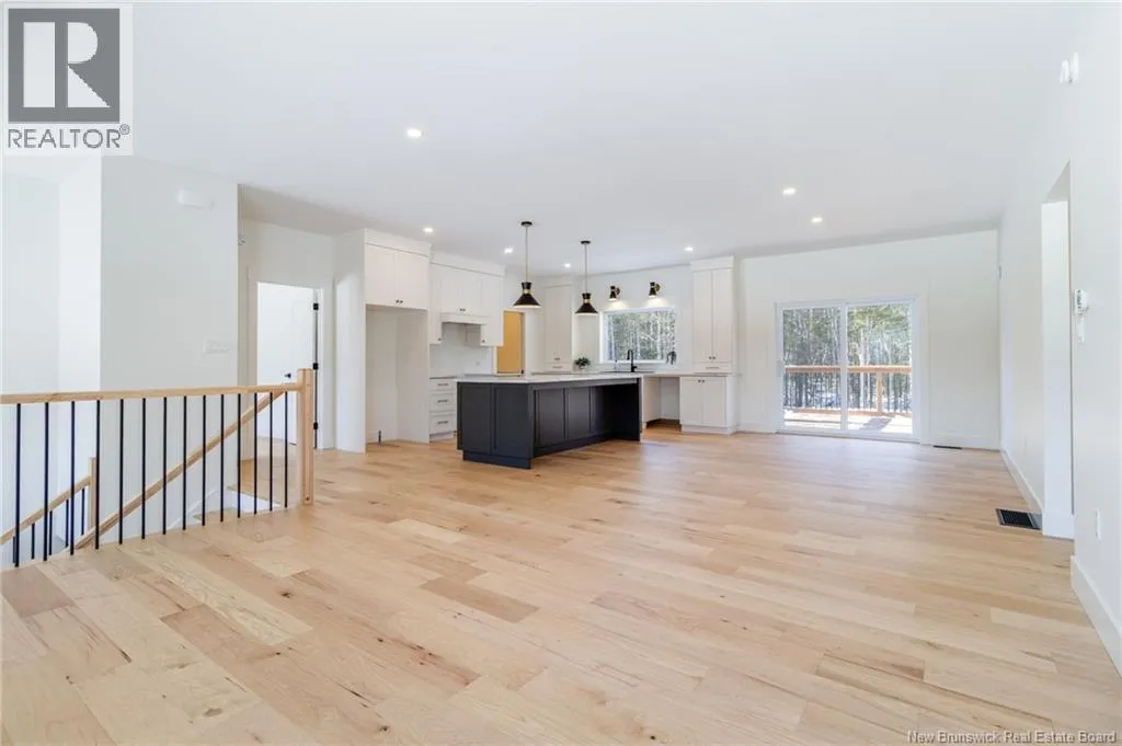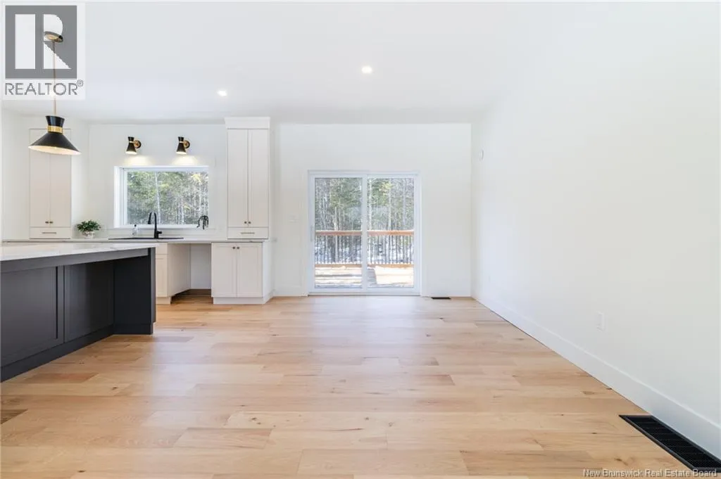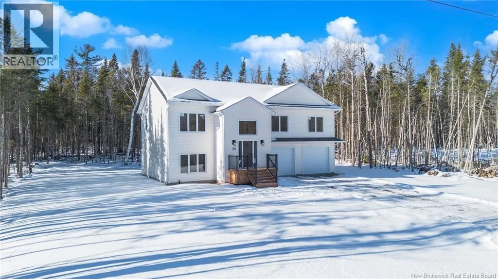 From Route 655, Turn onto Sagewood Boulevard, then turn left onto Woodrush Lane, Right on Honeywood Drive, Right onto Andelyse Drive, house is on the left. Welcome to 30 Andelyse Drive, a thoughtfully designed new construction split-entry home on grade offering a bright, open-concept living in a central location between Fredericton and Oromocto. The spacious foyer with cathedral ceilings leads to a main level finished with beautiful hardwood floors and an open kitchen, dining, and living area featuring custom cabinetry, a large pantry, and patio doors that open to a 14x14 deck overlooking a private, treed backyard. The upper level is well laid out with the primary bedroom located on one side of the home, completed with a walk-in closet and an ensuite featuring a double vanity and tiled walk-in shower. The opposite side of the home offers two spacious bedrooms separated by a full bathroom, ideal for privacy and functionality. Large windows flood the home with natural light. The lower level includes an additional bedroom, a full bath, and a family room with walk-out access, along with entry to the oversized attached double car garage. Built for comfort and efficiency in mind, this home features a ducted heat pump, underground wiring, and extra insulation along the footings, 2 inch ridge foam under the entire concrete floor of the home portion and on all exterior walls - making this home rated at a Tier 2 for energy efficiency. Come view this stunning home in the popular Wood Valley Estates while you can! (id:27476)