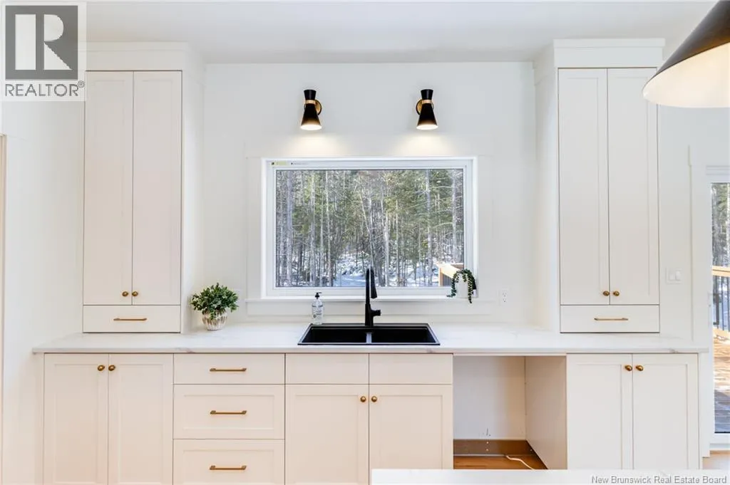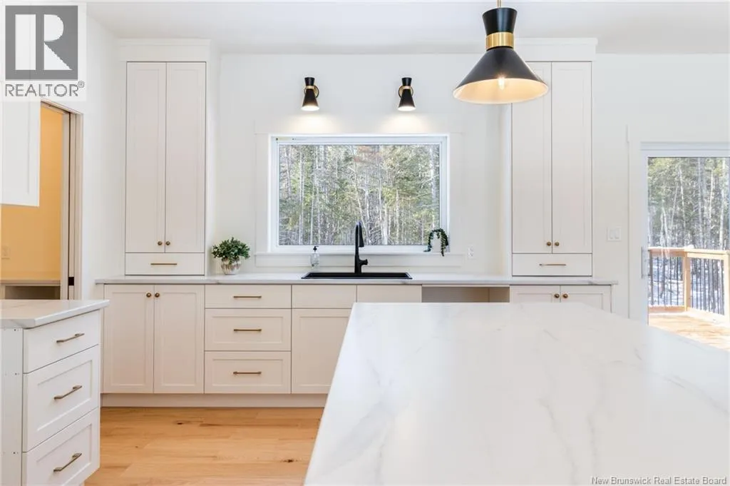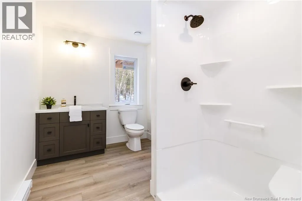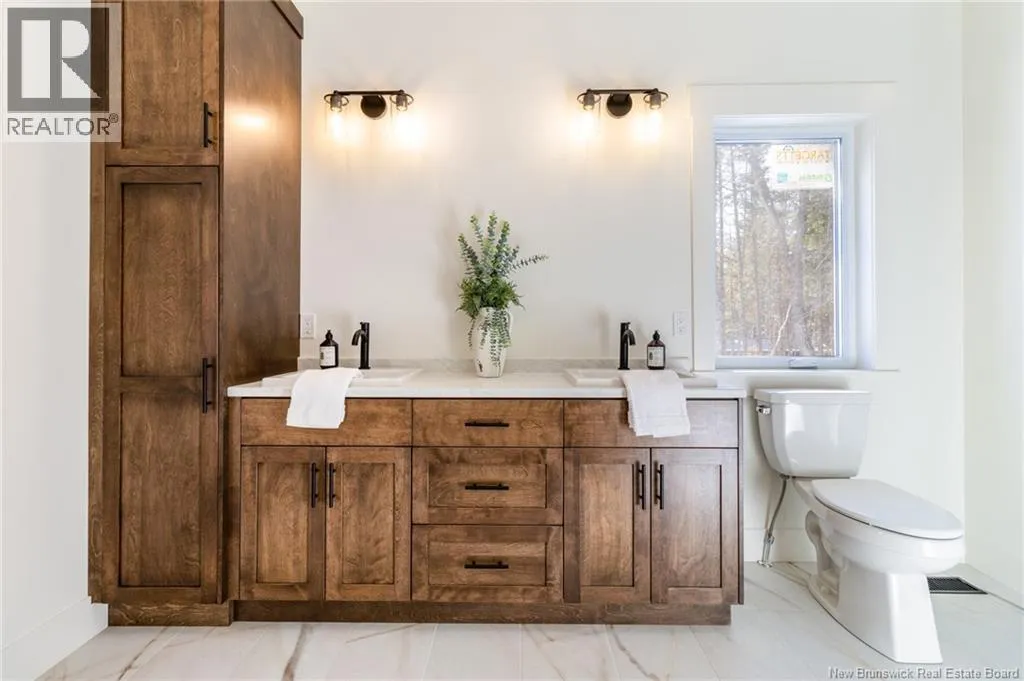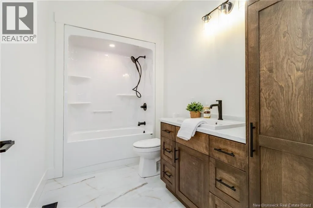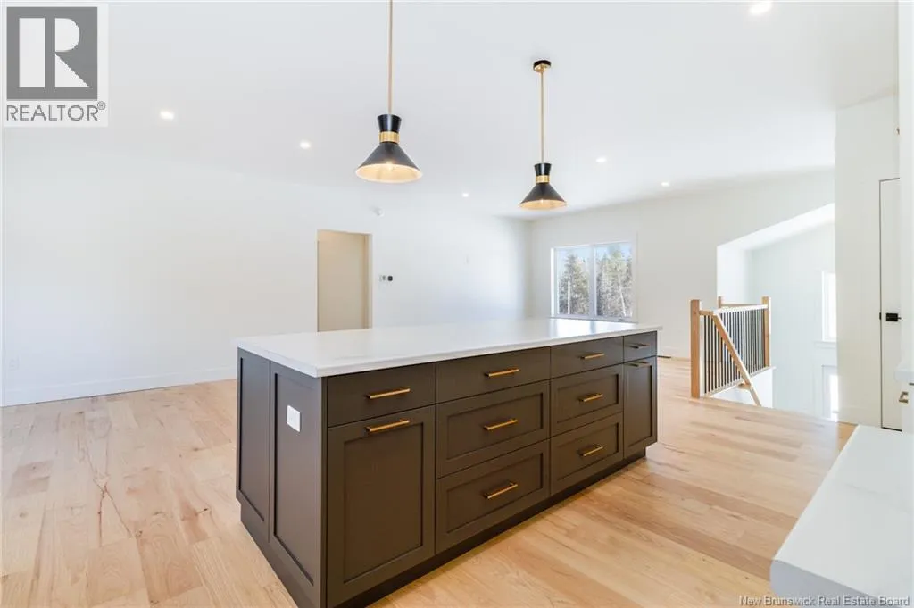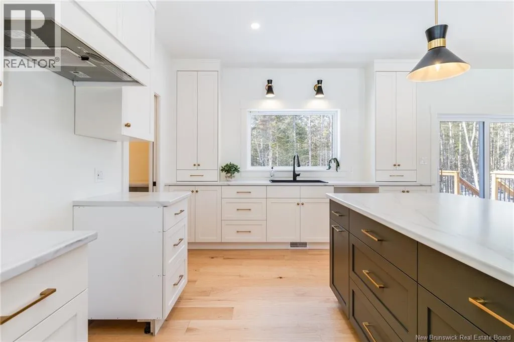 From Route 655, Turn onto Sagewood Boulevard, then turn left onto Woodrush Lane, Right on Honeywood Drive, Right onto Andelyse Drive, house is on the left. Welcome to 30 Andelyse Drive, a thoughtfully designed new construction split-entry home on grade offering a bright, open-concept living in a central location between Fredericton and Oromocto. The spacious foyer with cathedral ceilings leads to a main level finished with beautiful hardwood floors and an open kitchen, dining, and living area featuring custom cabinetry, a large pantry, and patio doors that open to a 14x14 deck overlooking a private, treed backyard. The upper level is well laid out with the primary bedroom located on one side of the home, completed with a walk-in closet and an ensuite featuring a double vanity and tiled walk-in shower. The opposite side of the home offers two spacious bedrooms separated by a full bathroom, ideal for privacy and functionality. Large windows flood the home with natural light. The lower level includes an additional bedroom, a full bath, and a family room with walk-out access, along with entry to the oversized attached double car garage. Built for comfort and efficiency in mind, this home features a ducted heat pump, underground wiring, and extra insulation along the footings, 2 inch ridge foam under the entire concrete floor of the home portion and on all exterior walls - making this home rated at a Tier 2 for energy efficiency. Come view this stunning home in the popular Wood Valley Estates while you can! (id:27476)