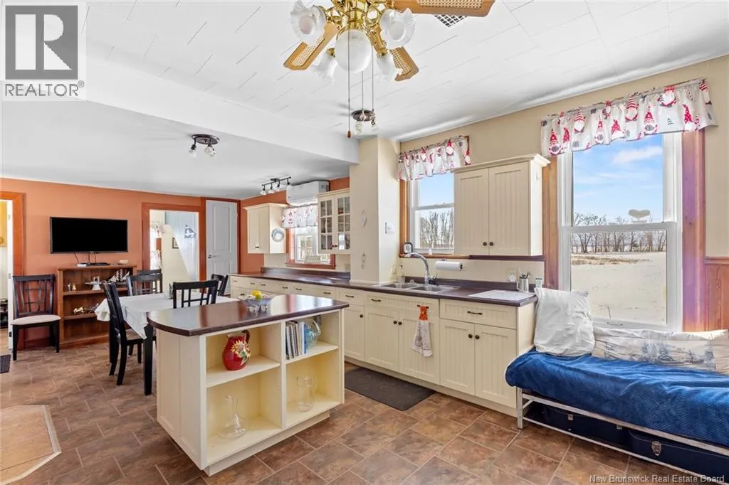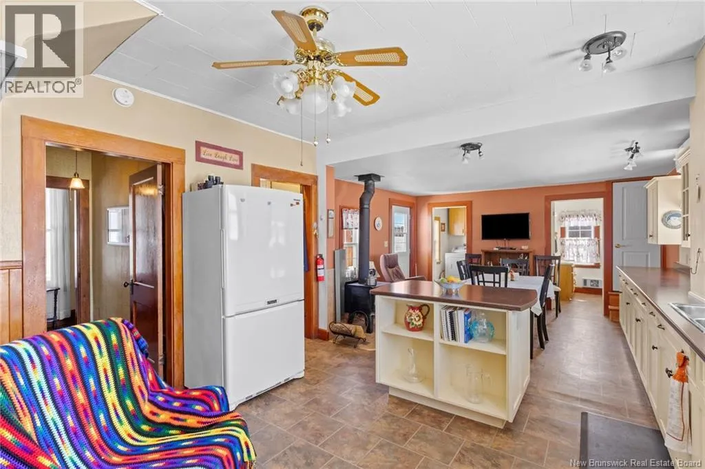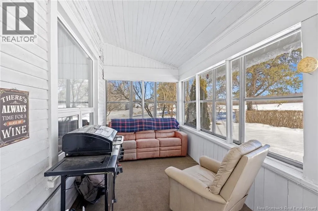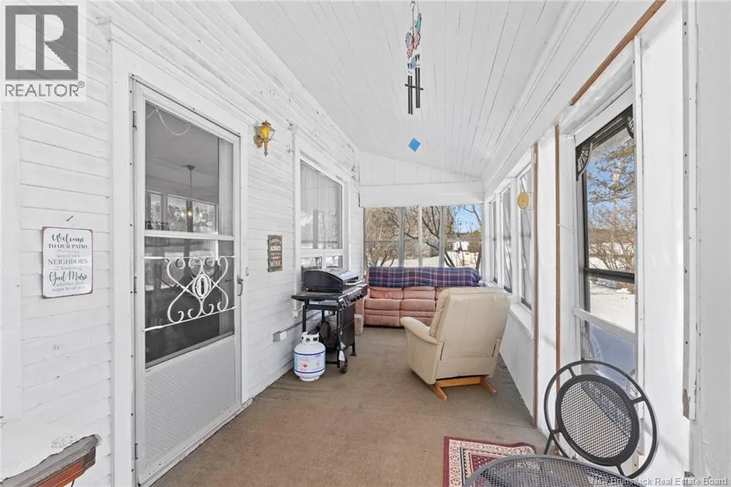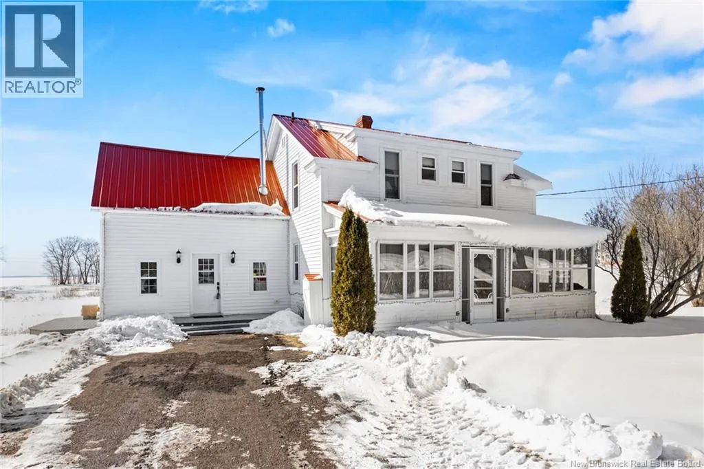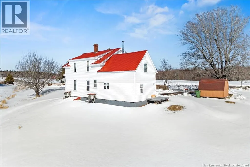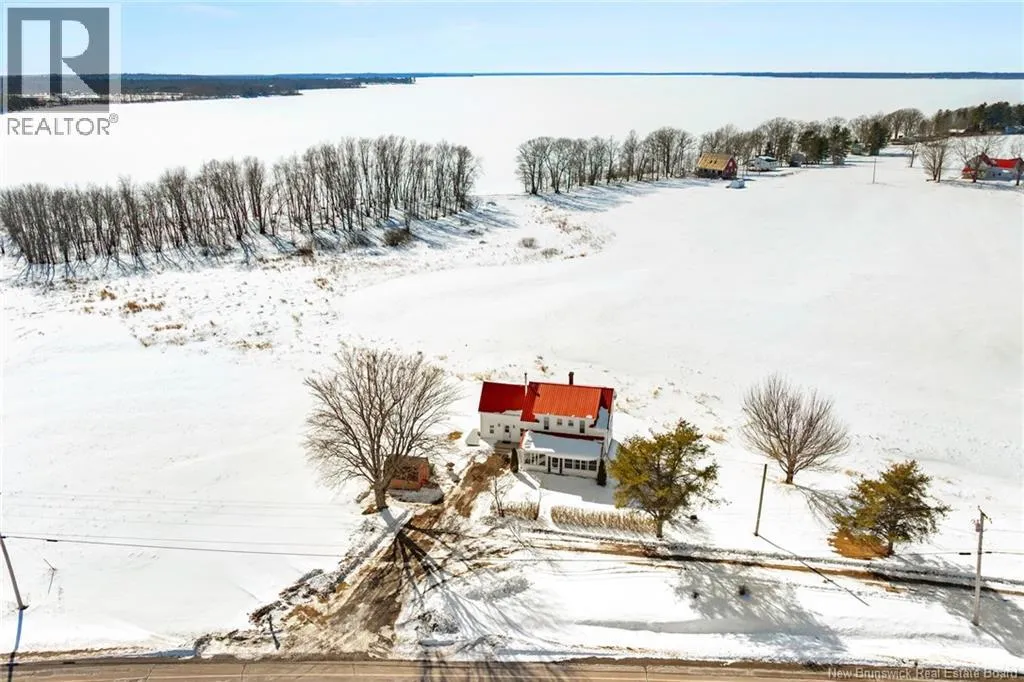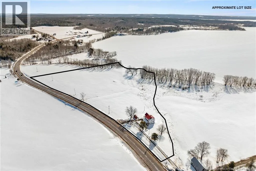 Stay on Route 105 Toward Waterborough until you've reached 6383. Welcome to your year round waterfront retreat on Grand Lake,with over 200 km of navigable waters for boating, swimming and fishing right from your own shoreline.This 4 bedroom farmhouse sits on almost 10 acres with more than 200 feet of beach frontage,open meadow and even a 1.5 acre duck pond.The spacious deck overlooking the water creates a seamless extension of the living space.Inside,the home radiates warmth and timeless farmhouse charm,blending character with thoughtful updates including a renovated kitchen and pantry anchored by a wett certified wood stove,an updated laundry room and half bath,and new basement walls.High density insulation and final siding on three quarters of the exterior walls and a steel roof adds long term durability.The walk out basement provides excellent storage and easy access for bringing in firewood,adding everyday convenience.In the past eight years additional upgrades include a 200 amp power panel and mast,auxiliary panel with generator wiring,a 9,000 watt generator,2 heat pumps sized at 12,000 BTU and 18,000 BTU for year round comfort,a 40 gallon water heater, Culligan water purification system and a new Cleveland pellet stove and 10 x 12 shed with water and electricity.Centrally located just 30 minutes to Oromocto,40 minutes to Fredericton,40 minutes to Sussex and 1 hour to Moncton,this exceptional property offers the perfect blend of privacy,convenience and year round waterfront living on one of New Brunswicks premier lakes. (id:27476)