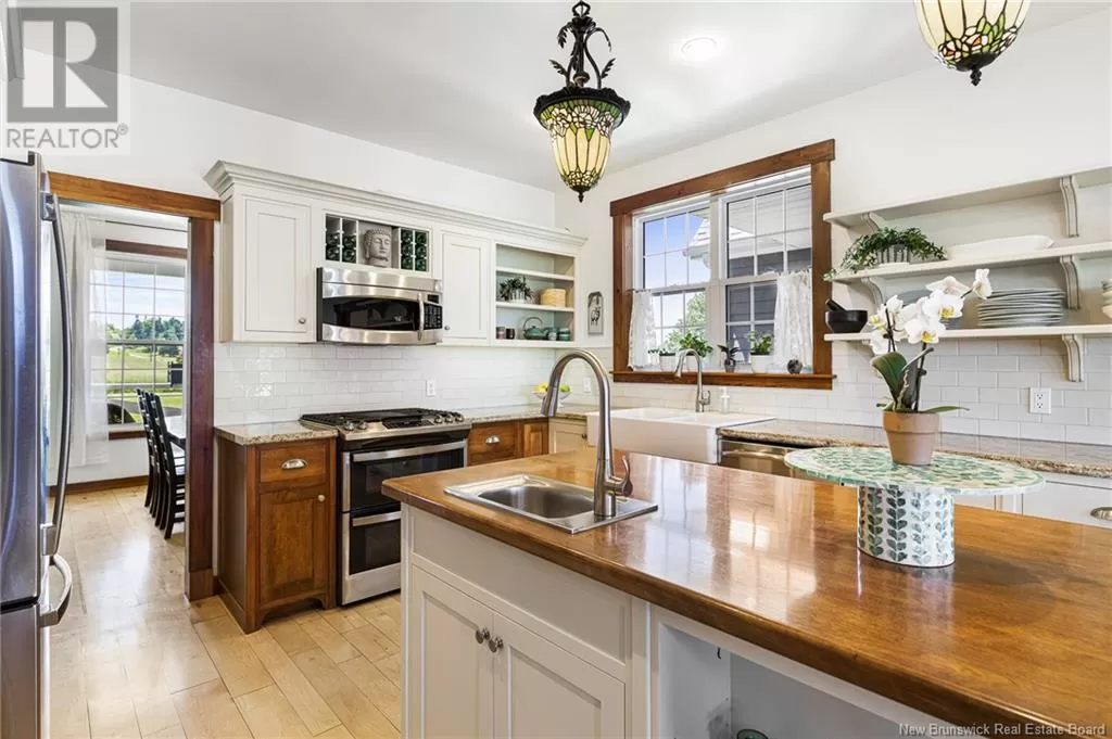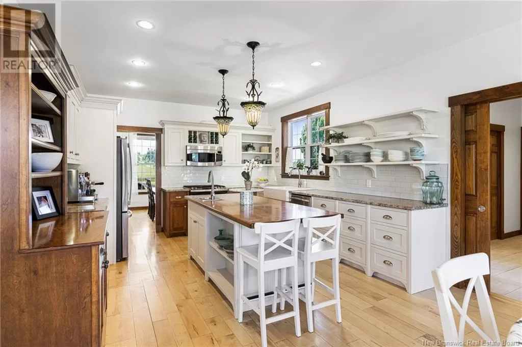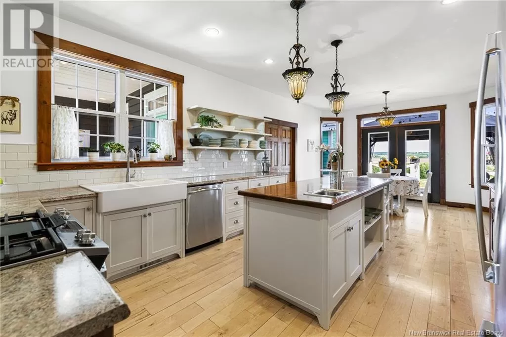 From Riverview, Head south on Route 114 towards Fundy National Park, Home will be on the left. * Drone video in virtual tour link. CUSTOM BUILT DREAM HOME // 5000+ SQ FT OF LIVING SPACE // 67+ ACRES OVERLOOKING THE RIVER // This dreamy custom-built home is ready for a new family to appreciate all it has to offer. Watch the tidal bore, wildlife, and thousands of fireflies at night from your backyard oasis on the river. Located only 20 minutes from Moncton, this location is ideal if youre seeking privacy along with the ability to live off of your land. The main floor offers a stunning grand entrance leading to the living room w/ fireplace, eat-in kitchen w/ gas stove, formal dining room, half bathroom, laundry/mudroom, 4 season sunroom, master suite w/ walk-in closet & ensuite bath. The majority of these rooms offer an incredible river view and access to the cedar decks. Head upstairs to find 3 large bedrooms, 2 full baths & a family room which could be used as another bedroom. The lower level is a walk-out w/a massive workshop that could be modified to meet your needs, an office, full bathroom, storage & cold room. Many extras include a central air heat pump, outdoor shower, gazebo, pergola, double attached garage with finished heated loft, barns, outbuildings, paved private driveway, profitable hay fields, electric fencing, and spring-fed pond. The owners previously operated an Airbnb bringing in $450 per night for 3 of the bedrooms, which can be closed off to the main part of the home. This property is one of a kind and sure to impress. Contact your REALTOR® today. (id:27476)