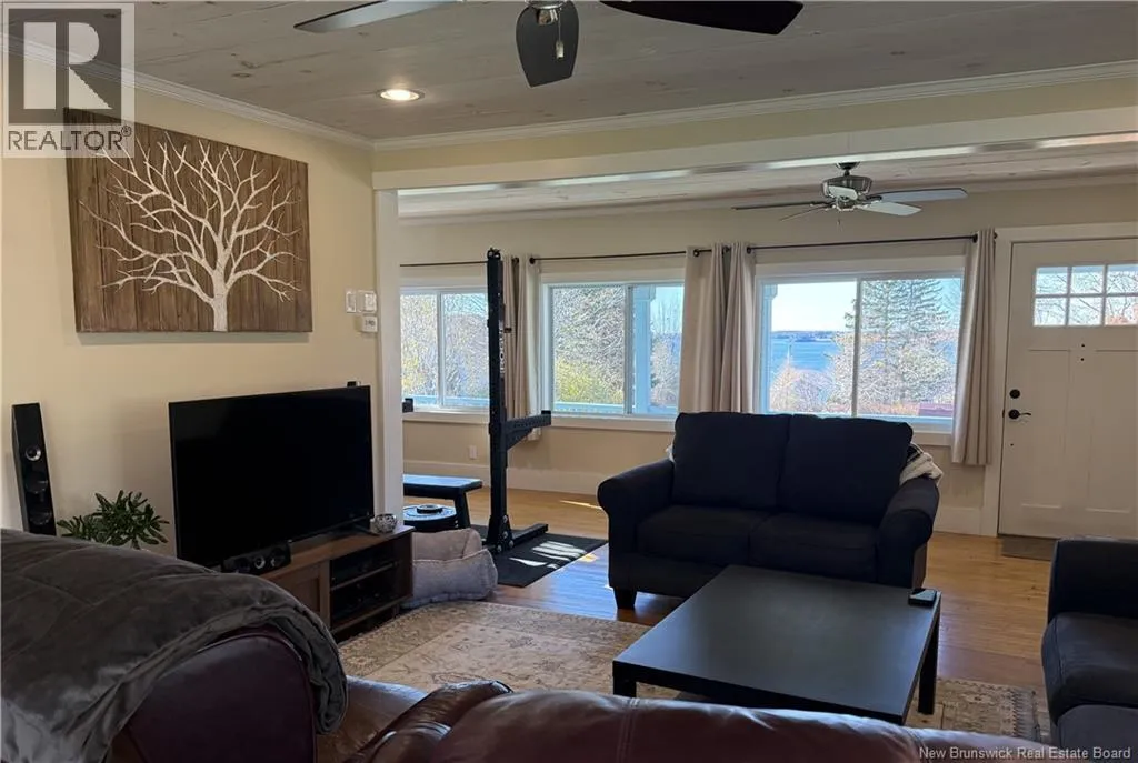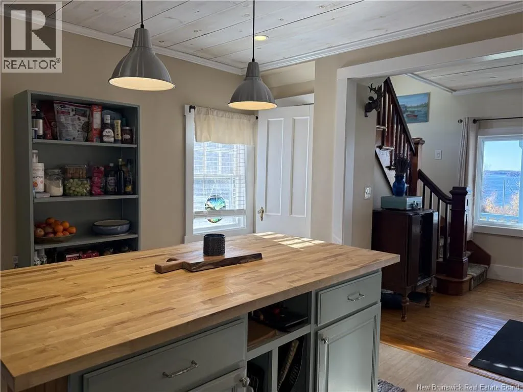 This home is located on Welshpool Back Road in Welshpool, NB....close to the ferry landing. From the international bridge, take Route 774 to Welshpool, then proceed on North Road. Pass the ferry landing and turn right onto the Welshpool Back Road. Home is on the right #96. This charming three bedroom Cape Cod style home is located on a quiet property, offering ocean scenery from its location on the Welshpool Back Road. Relax on the front covered veranda, which bids a warm welcome to all who enter. Open the decorative yellow door to find a bright and spacious foyer & living room. Front windows spanning the width of the home allow for an abundance of light as well as comforting views of the sea. Pellet stove provides additional warmth & ambiance to the home. Patio door provides access to the deck overlooking the yard. Kitchen is inviting with a dining island that serves as the focal point of the room, as well as attractive cupboards, modern lighting & stainless steel appliances. Laundry, storage and a half bath are conveniently located in an addition off the kitchen. L shaped original staircase leads to the second level of living space. Fully renovated bathroom boasts a custom sit down shower and a beautiful vanity. Two of the three bedrooms offer water views from the upper level of the home. Lots of room in the treed yard for children & pets to play, safely contained by a perimeter fence. Raised building provides storage for outside items. Recent home energy evaluation resulted in the basement and attic being fully insulated, as well as the installation of a new heat pump furnace, with both heat & air ducted throughout the home for comfort during all seasons. New well pump, cap & well plumbing too! This impressive home awaits your visit! (id:27476)