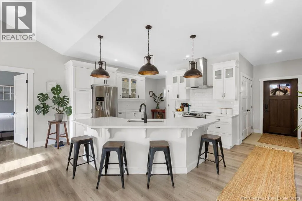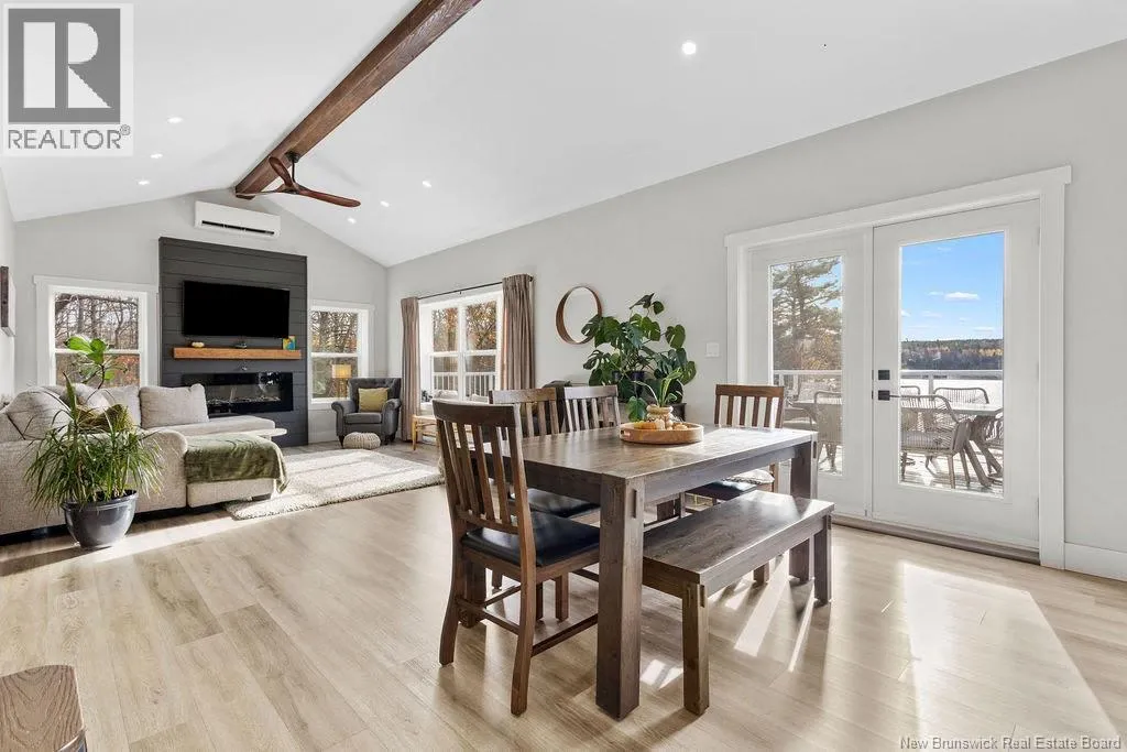 TAKE HWY 425 Built in 2022, this stunning waterfront home blends modern design, quality craftsmanship, and peaceful riverfront living. Constructed with a full ICF foundation (right up to the rafters) for exceptional efficiency, durability, and year-round comfort, this home offers five spacious bedrooms and 2½ baths between the two levels. The main floor features an open-concept layout with abundant natural light, two bedrooms, including a beautiful primary suite with a private en suite, and a separate pantry room just off the well-designed kitchen. Step onto the large front deck and take in the incredible river views, perfect for morning coffee or evening sunsets. The propertys thoughtful placement and mature surroundings provide a wonderful sense of privacy and seclusion, allowing you to fully enjoy the serene waterfront setting. The fully finished walk-out basement provides excellent income potential, featuring three additional bedrooms, its own kitchenette, and a separate entranceideal for a rental suite, extended family, or guests. With a single attached garage and located in a wonderful, family-friendly neighbourhood just 15 minutes from Miramichi, this property offers the best of both convenience and tranquility. (id:27476)
