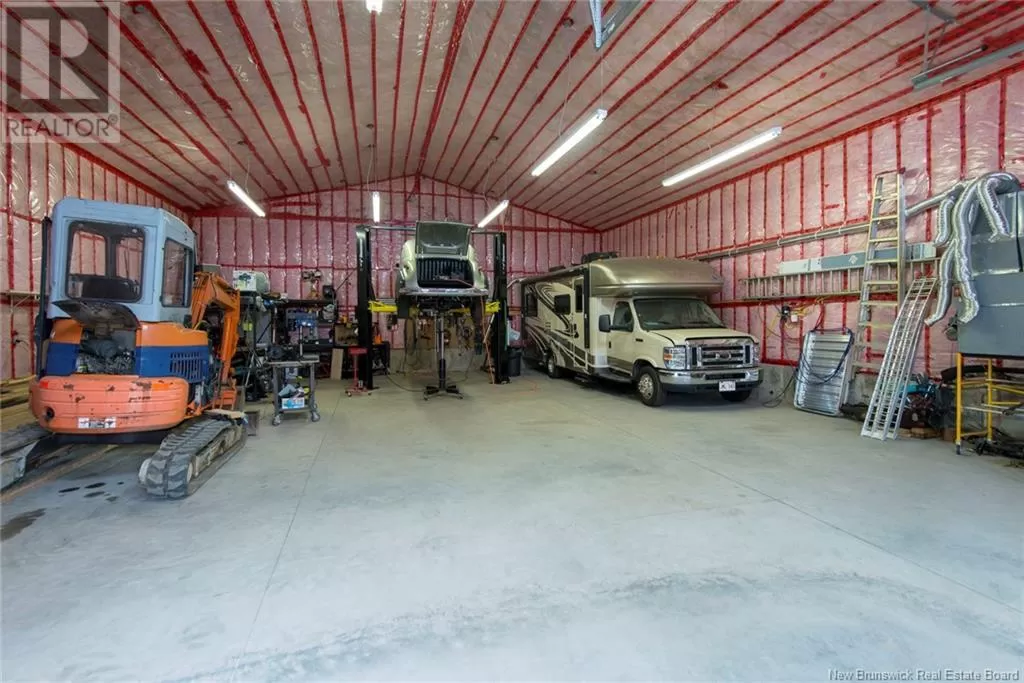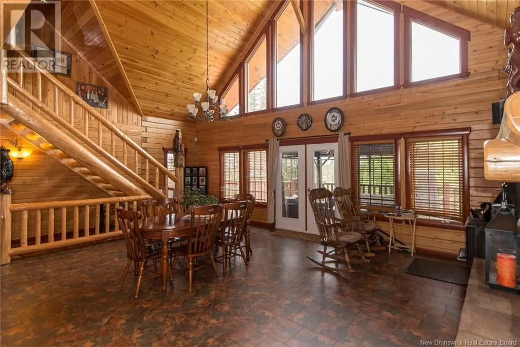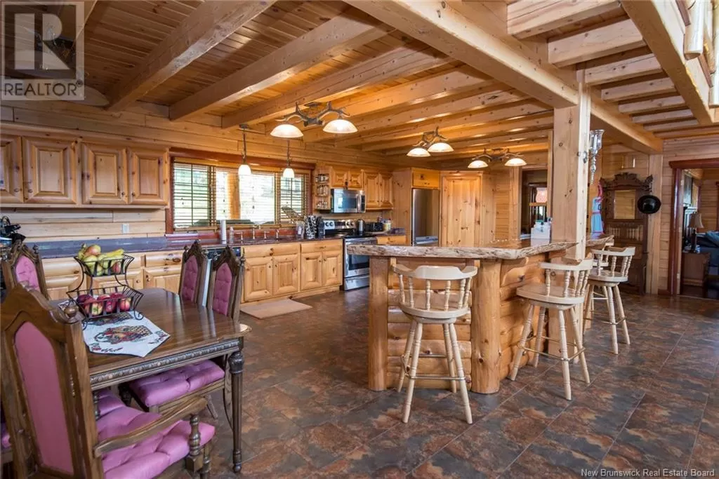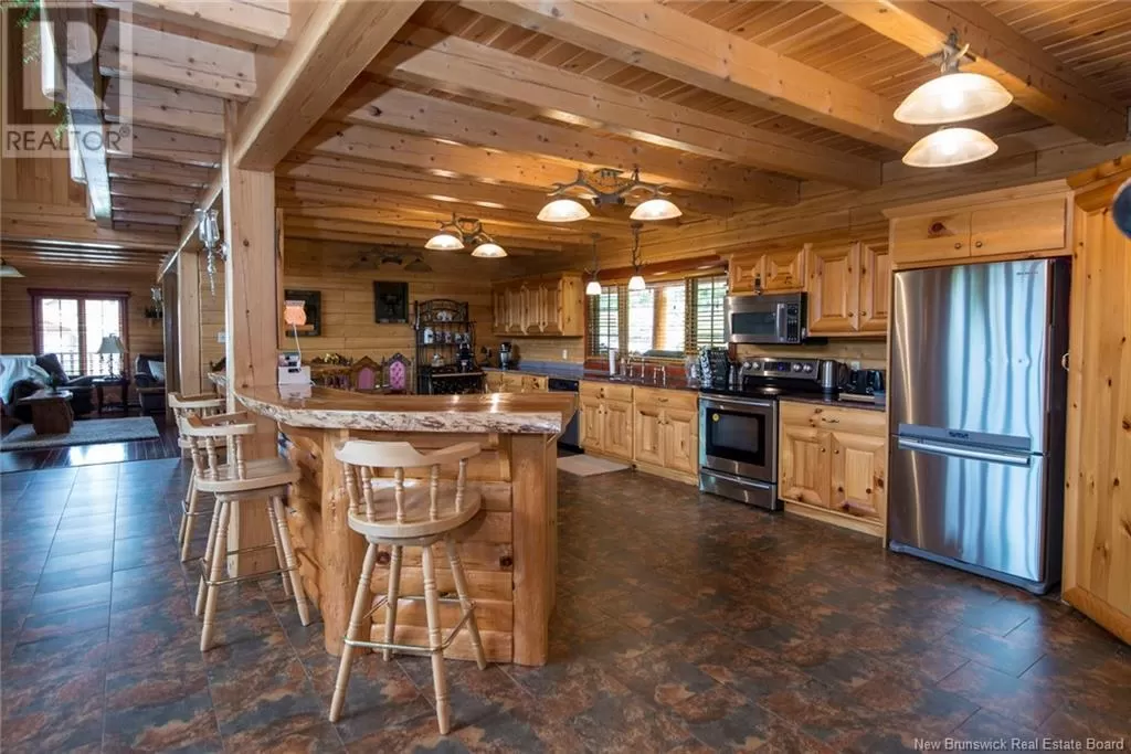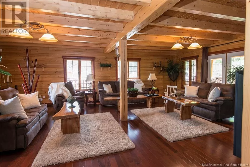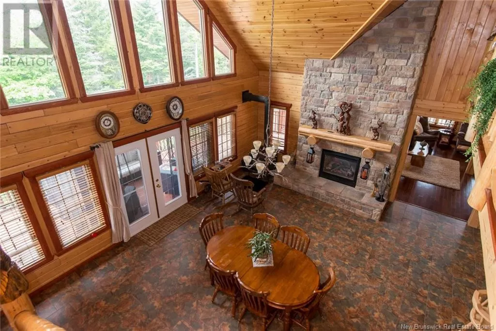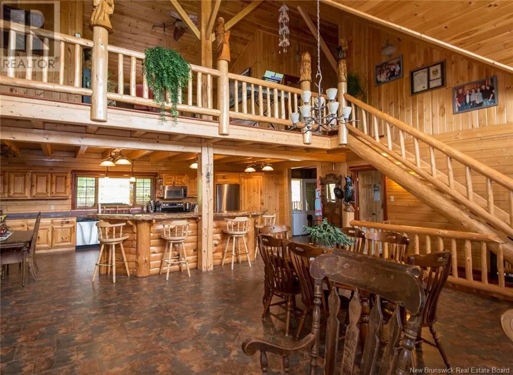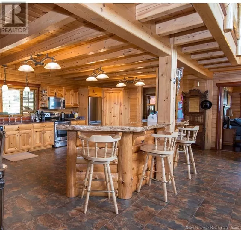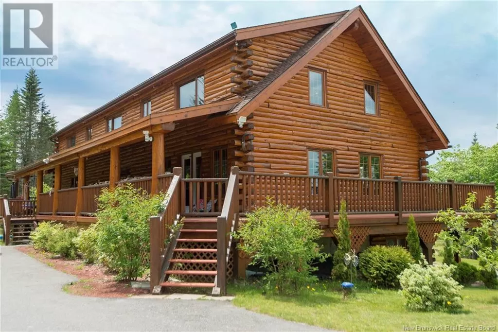 Route 111 past the airport. Left onto Taylor Lake Road. 6 Minutes from the airport. Total privacy on 35+ acres, quality built 3500sq' log home (5500sq' total). 3 Huge heated/AC garages perfect for car collection, boats, tractor, motor home+. Highest quality, 8"" cedar insulated D-shaped logs! No load bearing walls means easy changes. Features include open concept, 4 propane fireplaces, custom light fixtures, huge wrap-around deck, 2-story great room w/ 16' ceiling, full-height stone fireplace, cozy woodstove, concave solid wood trim & hot water in-floor heating throughout. Large custom eat-in kitchen w/thick slab granite countertop, pantry & huge central island/breakfast bar (appliances incl). Many intricate details. Main floor also boasts sunny family room w/3 sides of windows & stone fireplace, bedroom w/double closet, mud room & laundry, full bathroom. Up the turned D-log staircase w/ carved newel posts (from NC) to the sitting area & 3 additional bedrooms incl the spacious master suite w/3 sides of windows, walk-in & ensuite bath. 5500 sq' w/Daylight walkout basement. Rec room & large gym both w/fireplaces, tiled floor, work shop, & 1/2 bath. 2 Heated/AC 3-car garages 30'x30', plus a 40'x50' garage w/18' ceiling, 12' door & asymmetric 2-post vehicle lift & Brigadier 10 ACX wide, 10,000 lb. hydraulic hoist incl. Numerous fruit trees plus 300' spring-fed trout pond. Miles of groomed trails for hiking, biking & 4-wheeling, all the way to Fundy Nat'l Park. Generator hookup & diesel generator plus numerous inclusions. 6 Minutes from the SJ airport, YSJ (id:27476)