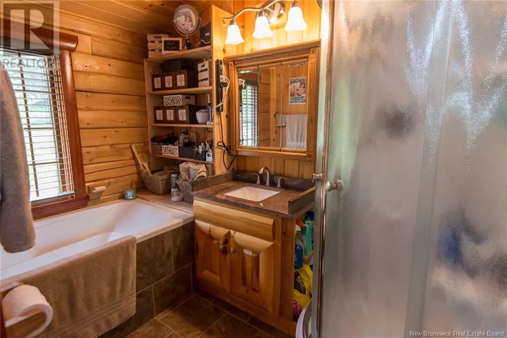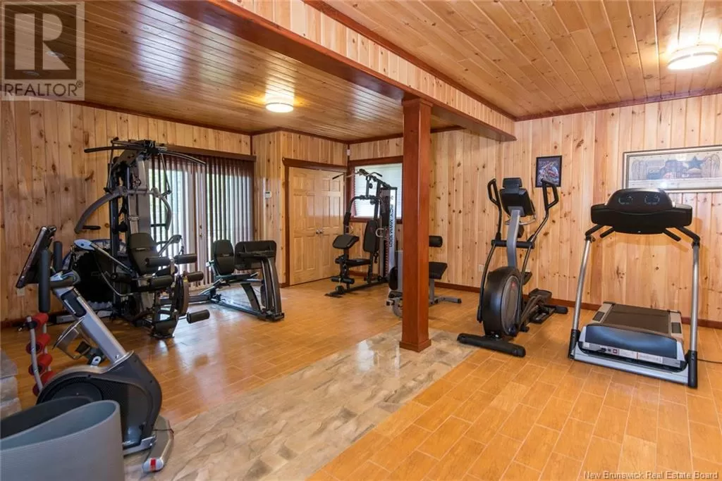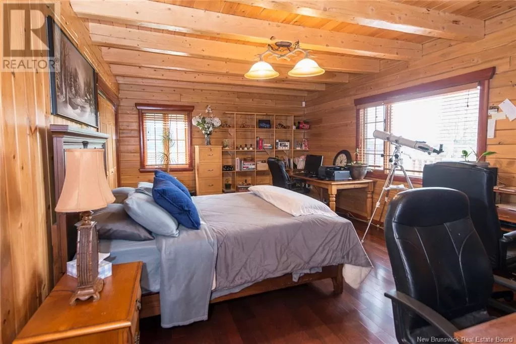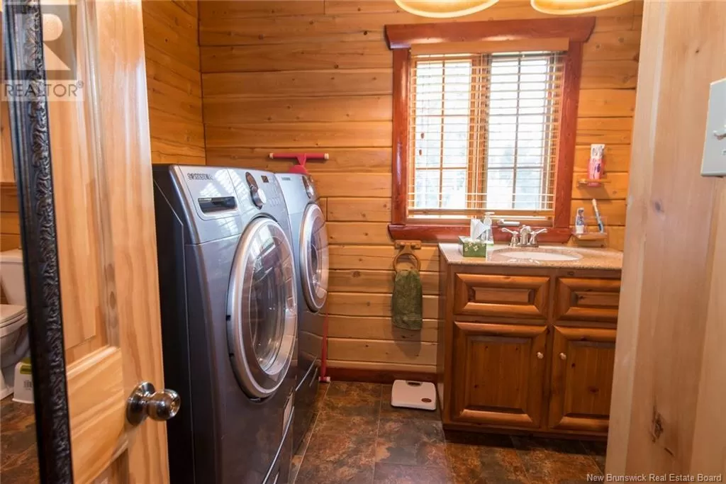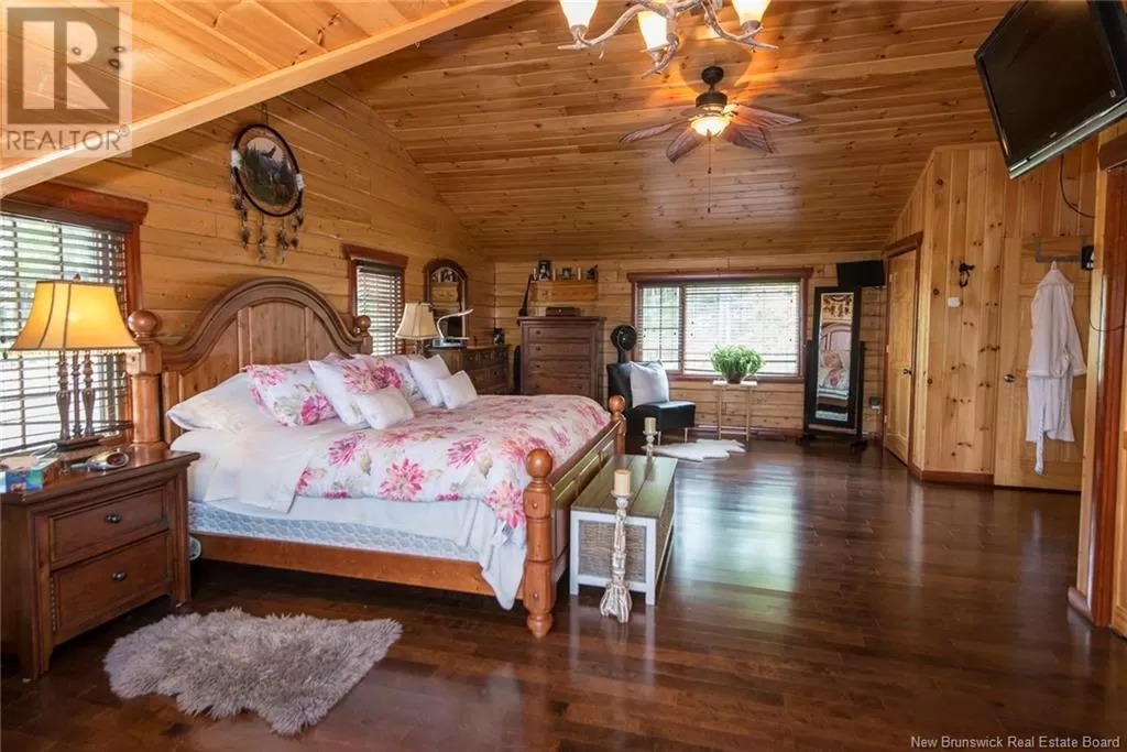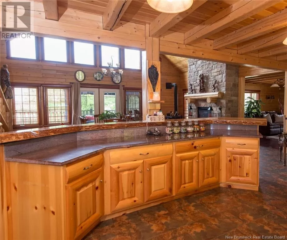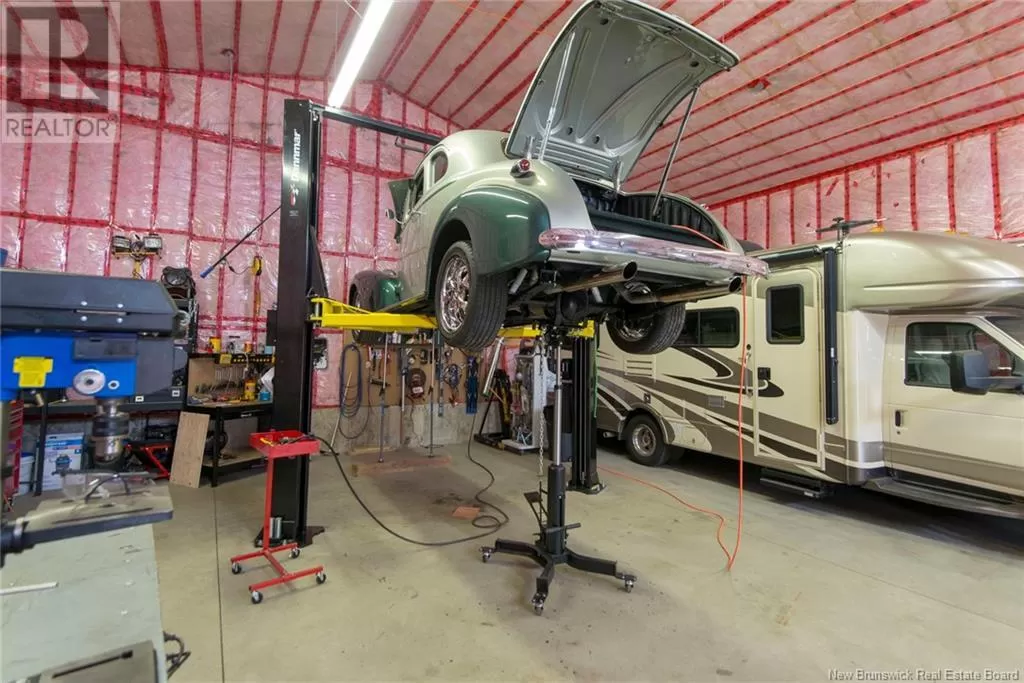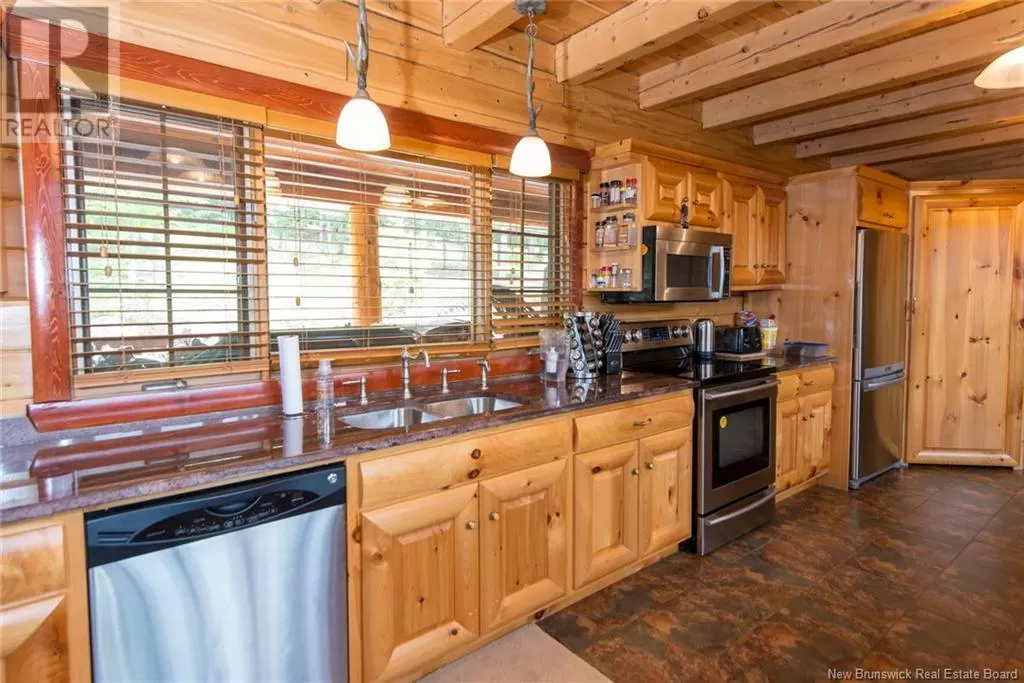 Route 111 past the airport. Left onto Taylor Lake Road. 6 Minutes from the airport. Total privacy on 35+ acres, quality built 3500sq' log home (5500sq' total). 3 Huge heated/AC garages perfect for car collection, boats, tractor, motor home+. Highest quality, 8"" cedar insulated D-shaped logs! No load bearing walls means easy changes. Features include open concept, 4 propane fireplaces, custom light fixtures, huge wrap-around deck, 2-story great room w/ 16' ceiling, full-height stone fireplace, cozy woodstove, concave solid wood trim & hot water in-floor heating throughout. Large custom eat-in kitchen w/thick slab granite countertop, pantry & huge central island/breakfast bar (appliances incl). Many intricate details. Main floor also boasts sunny family room w/3 sides of windows & stone fireplace, bedroom w/double closet, mud room & laundry, full bathroom. Up the turned D-log staircase w/ carved newel posts (from NC) to the sitting area & 3 additional bedrooms incl the spacious master suite w/3 sides of windows, walk-in & ensuite bath. 5500 sq' w/Daylight walkout basement. Rec room & large gym both w/fireplaces, tiled floor, work shop, & 1/2 bath. 2 Heated/AC 3-car garages 30'x30', plus a 40'x50' garage w/18' ceiling, 12' door & asymmetric 2-post vehicle lift & Brigadier 10 ACX wide, 10,000 lb. hydraulic hoist incl. Numerous fruit trees plus 300' spring-fed trout pond. Miles of groomed trails for hiking, biking & 4-wheeling, all the way to Fundy Nat'l Park. Generator hookup & diesel generator plus numerous inclusions. 6 Minutes from the SJ airport, YSJ (id:27476)