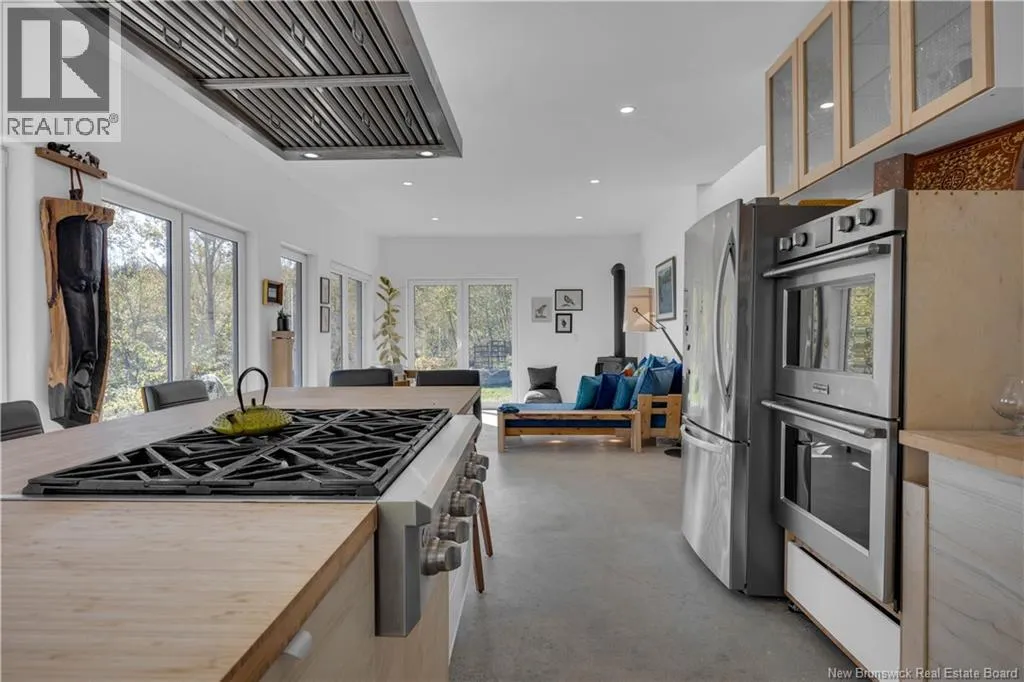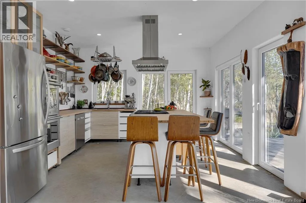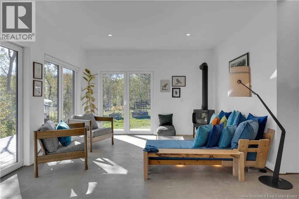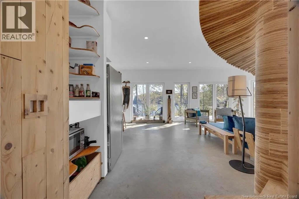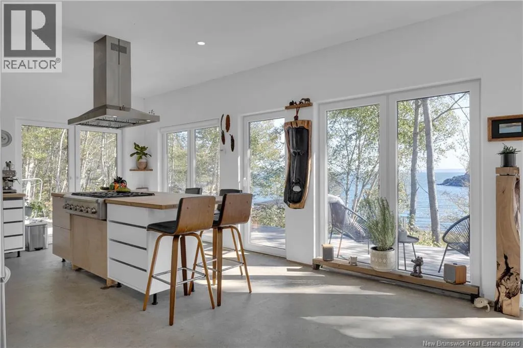 From Route 774, take a left onto Fundy Drive. Set on 4.72 private acres with over 300 feet of oceanfront, this passive solar home looks out toward Grand Manan and the open horizon, where sky and sea merge in ever changing light. Eagles soar overhead, whales pass offshore, and seals visit the cove, this is everyday life in this rare coastal sanctuary. Sheltered by granite cliffs, the home combines warmth and simplicity with modern design. It features Legalett radiant concrete floors, south facing windows, an on demand hot water system, and a Jotul gas fireplace. Lime wash walls and minimalist lines create a calm, natural atmosphere. The exterior, finished in Yakisugi (charred cedar using the Japanese Shou Sugi Ban method), blends seamlessly into the forest and stone. A concrete pool and sauna foundation are already in place, ready to become your private ocean view spa. A pine workshop and cedar shed, both protected with traditional natural tar, complete the property. The workshop can easily be converted into a guesthouse or artists studio. A unique home where nature, architecture, and light exist in perfect balance built not to stand out, but to belong. (id:27476)