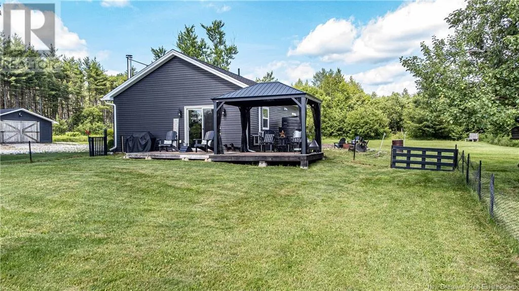 Welcome to Your Private Country Retreat! Nestled on 10 picturesque acres, this beautiful 2019-built bungalow offers the perfect blend of modern comfort and serene country living. Featuring 2 spacious bedrooms, a large double car garage, and a stunning century barn, this property is ideal for those seeking peace, privacy, and endless possibilities. Step inside to an inviting open-concept layout, complete with a cozy woodstove for those chilly evenings. The home comes fully furnished and includes all appliances, making your move-in seamless and stress-free. Enjoy the outdoors with nearly 1 kilometre of private scenic trails winding throughout the property, perfect for hiking, riding, or simply soaking in the natural beauty. The parcel-fenced yard is ideal for pets or hobby farming, and the expansive grounds provide ample space for gardening, recreation and relaxation. Property is located walking distance to ATV and snowmobile trails as well as two famous New Brunswick waterfalls and winding brook. The property includes a secluded additional lot for future expansion or a revenue generating hideaway. Located in a beautiful, tranquil setting, this property is a rare find for those who value privacy and a connection to natureall while enjoying the comforts of a modern home. Dont miss your chance to have this as your own escape. $3k Incentive. (id:27476)