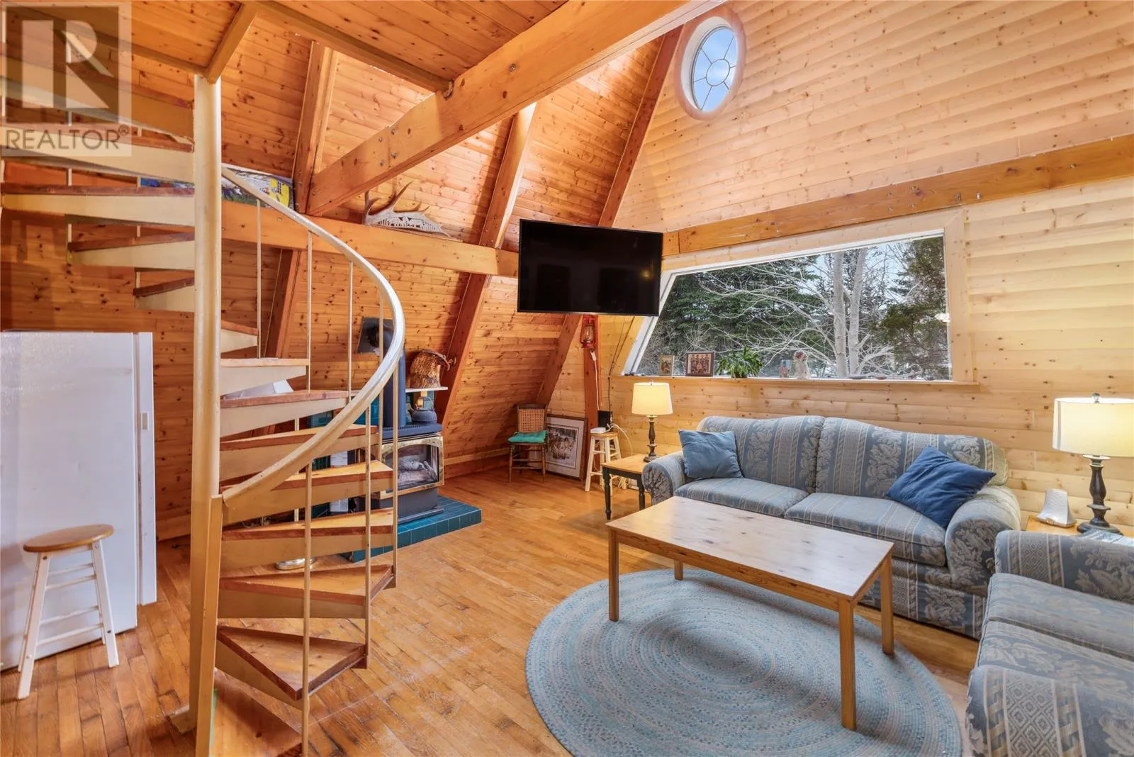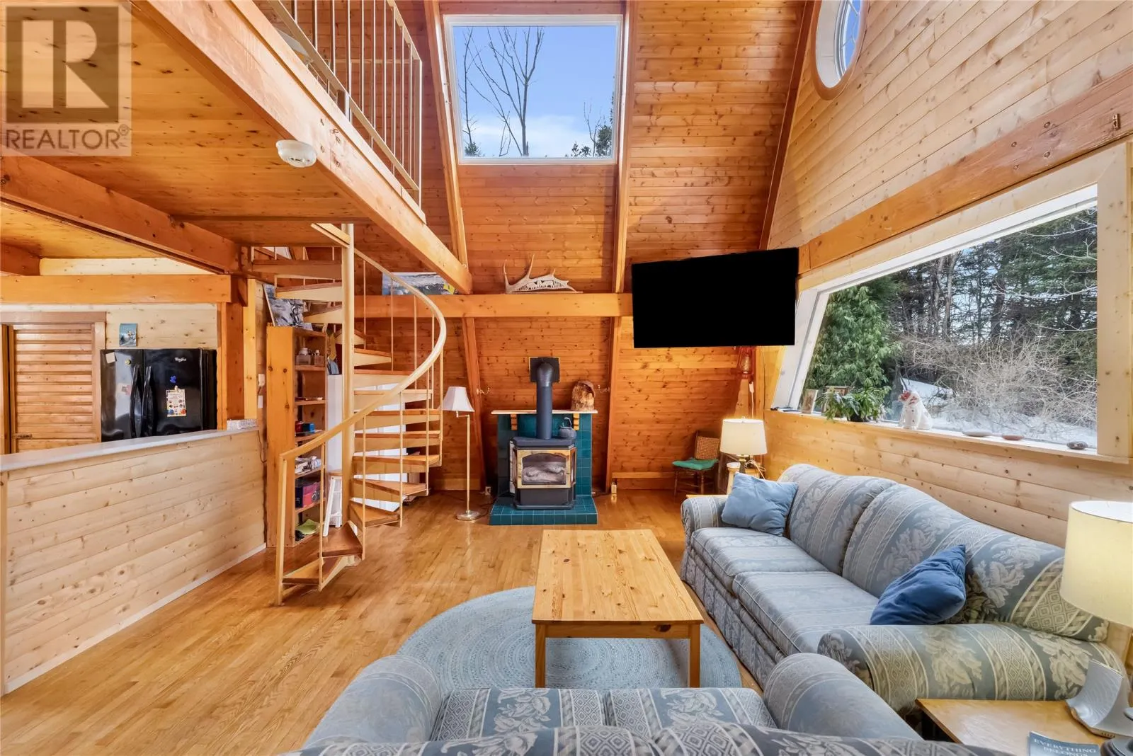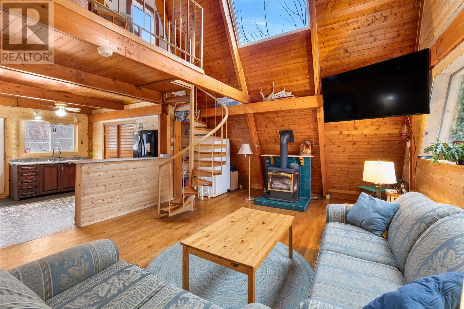 House is located behind the church on Station Road. Nestled in a quiet, peaceful area on a mature lot, this charming two-bedroom log-siding cottage offers a cozy retreat surrounded by nature, including established apple trees. The home features a welcoming, warm interior with propane fireplace and thoughtful details with beautiful wood finishes and skylights throughout. Significant upgrades completed in 2025 include new shingles, a new exterior door, new windows, new exterior and interior wood siding, and a newly installed jacuzzi tubâproviding both modern comfort and long-term value. Step outside to enjoy the expansive 40â x 13â deck, perfect for entertaining or relaxing in the tranquil surroundings. A 14â x 9â storage shed offers additional space for tools, hobbies, or outdoor equipment. This well-maintained property blends rustic charm with recent updates, making it an ideal choice for those seeking a peaceful lifestyle. (id:27476)