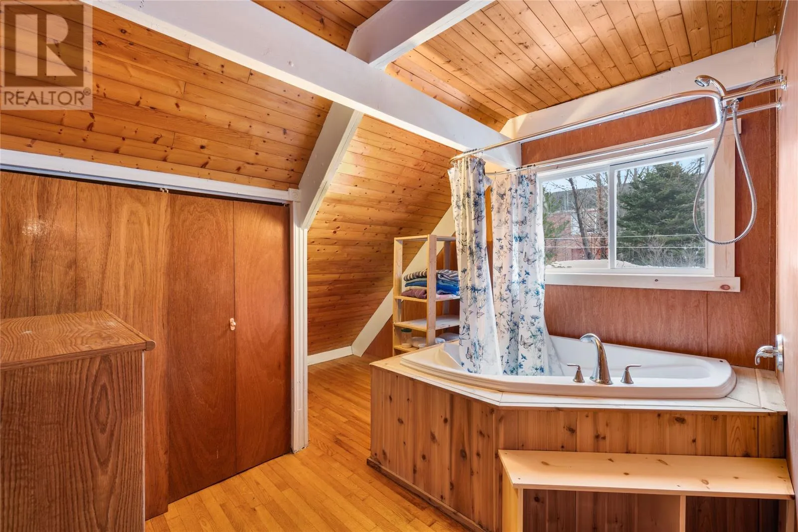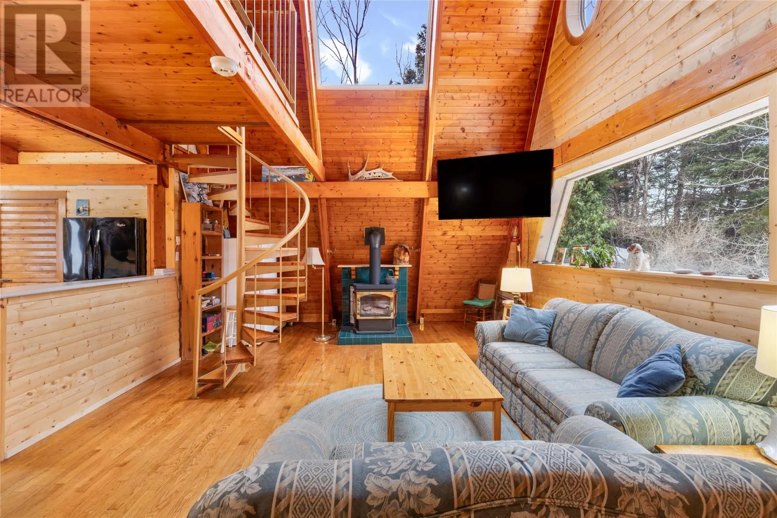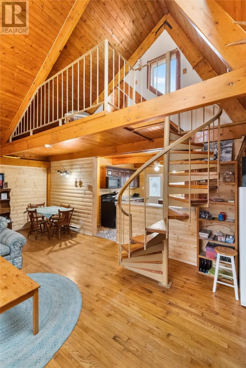 House is located behind the church on Station Road. Nestled in a quiet, peaceful area on a mature lot, this charming two-bedroom log-siding cottage offers a cozy retreat surrounded by nature, including established apple trees. The home features a welcoming, warm interior with propane fireplace and thoughtful details with beautiful wood finishes and skylights throughout. Significant upgrades completed in 2025 include new shingles, a new exterior door, new windows, new exterior and interior wood siding, and a newly installed jacuzzi tubâproviding both modern comfort and long-term value. Step outside to enjoy the expansive 40â x 13â deck, perfect for entertaining or relaxing in the tranquil surroundings. A 14â x 9â storage shed offers additional space for tools, hobbies, or outdoor equipment. This well-maintained property blends rustic charm with recent updates, making it an ideal choice for those seeking a peaceful lifestyle. (id:27476)